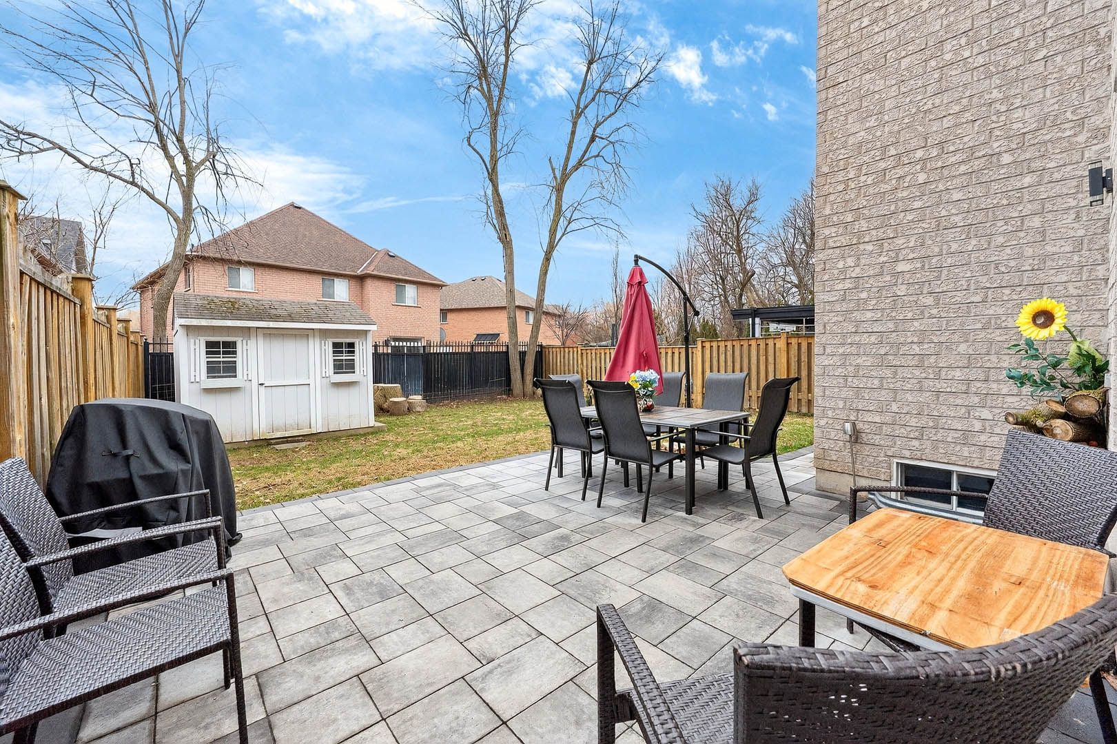 • Private backyard with patio and garden, great for gatherings.