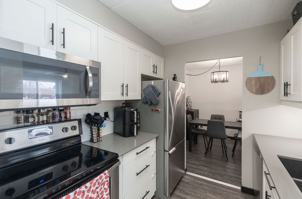 Affordable & convenient condo living! This move in ready unit is on the main level and offers a spacious terrace with bbq- updated kitchen- stainless steel appliances- undermount sink- quartz counters- carpet free with spacious living room that opens up to the outdoor space- large dining area- primary bedroom with walk in closet and in suite laundry (can be converted back to a 2 piece powder room) updated main bathroom- well maintained complex where condo fees include heat, hydro, water, exterior maintenance, building insurance & management fees- close to all highways- hwy 7-hwy8 & the 401, the lrt, transit stop right across the street- 5 minutes from fairview park mall- 15 mins from university of waterloo and walking distance to parks and schools