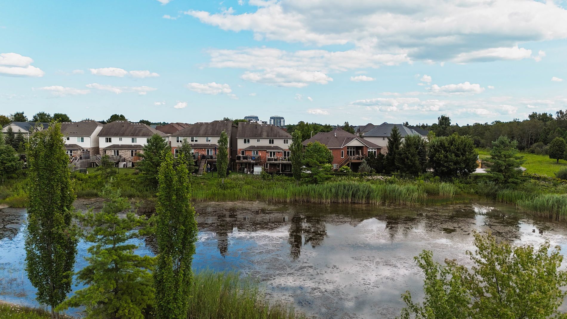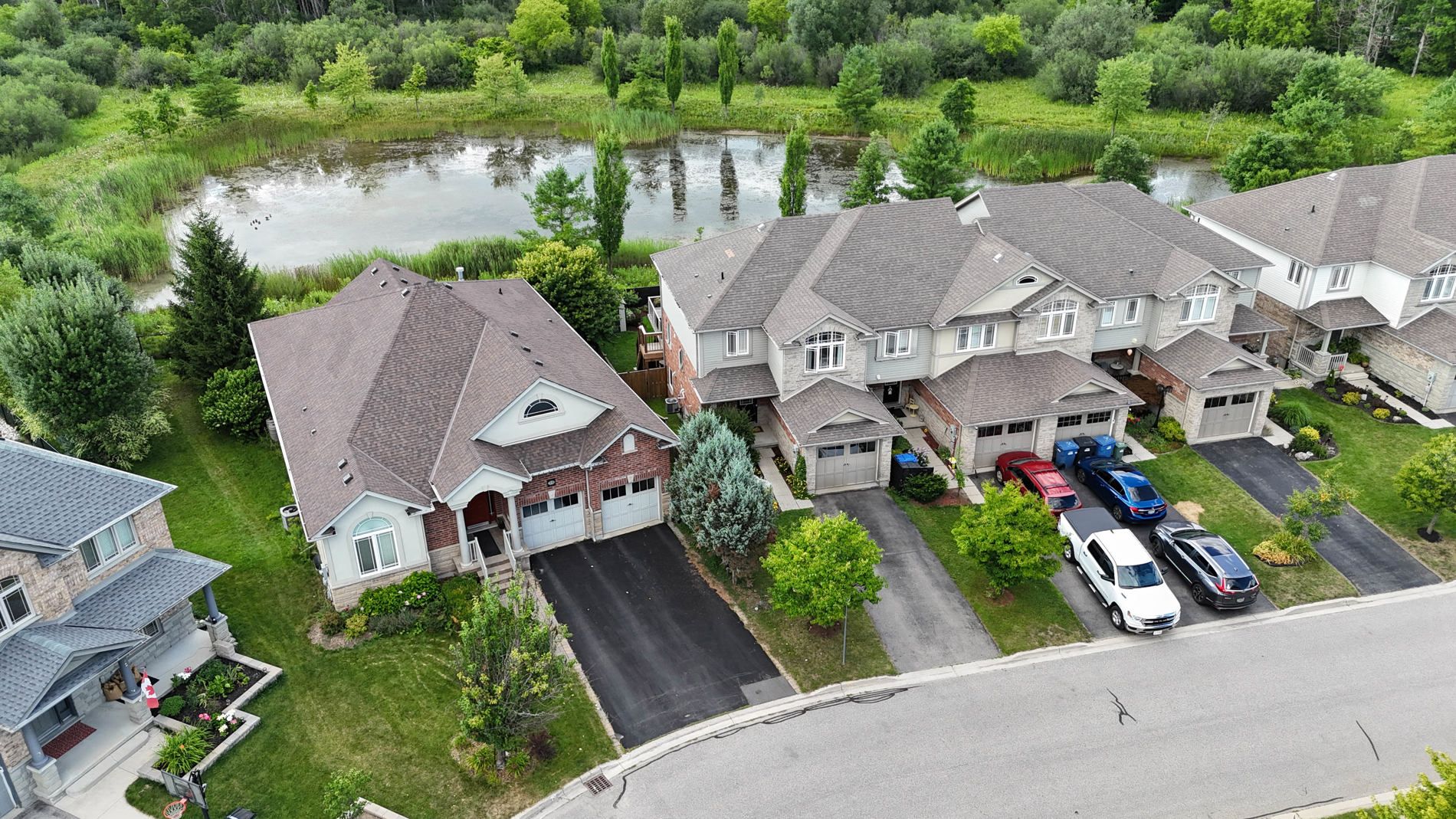 Backing onto conservation, this reid's heritage executive freehold townhouse offers something genuinely rare - unobstructed views of a protected pond, morning deer at the water's edge and serenity within city limits. The 1,540 sq ft above grade has been well upgraded. Custom kitchen cabinetry by b&d woodworking. New ac, new patio sliding door, and an oversized deck with glass railing, retractable awning, and gas bbq connection. The finished walk-out basement adds a family room with gas fireplace and patio sliders - the conservation view follows you downstairs. 3 bedrooms upstairs including a primary with ensuite and walk-in closet. Walkable to coffee, trails, restaurants, and shops. Close to the new south end community centre and incoming south end high school. Easy 401 access. Welcome to 71 vaughan st, guelph - serenity within the city.