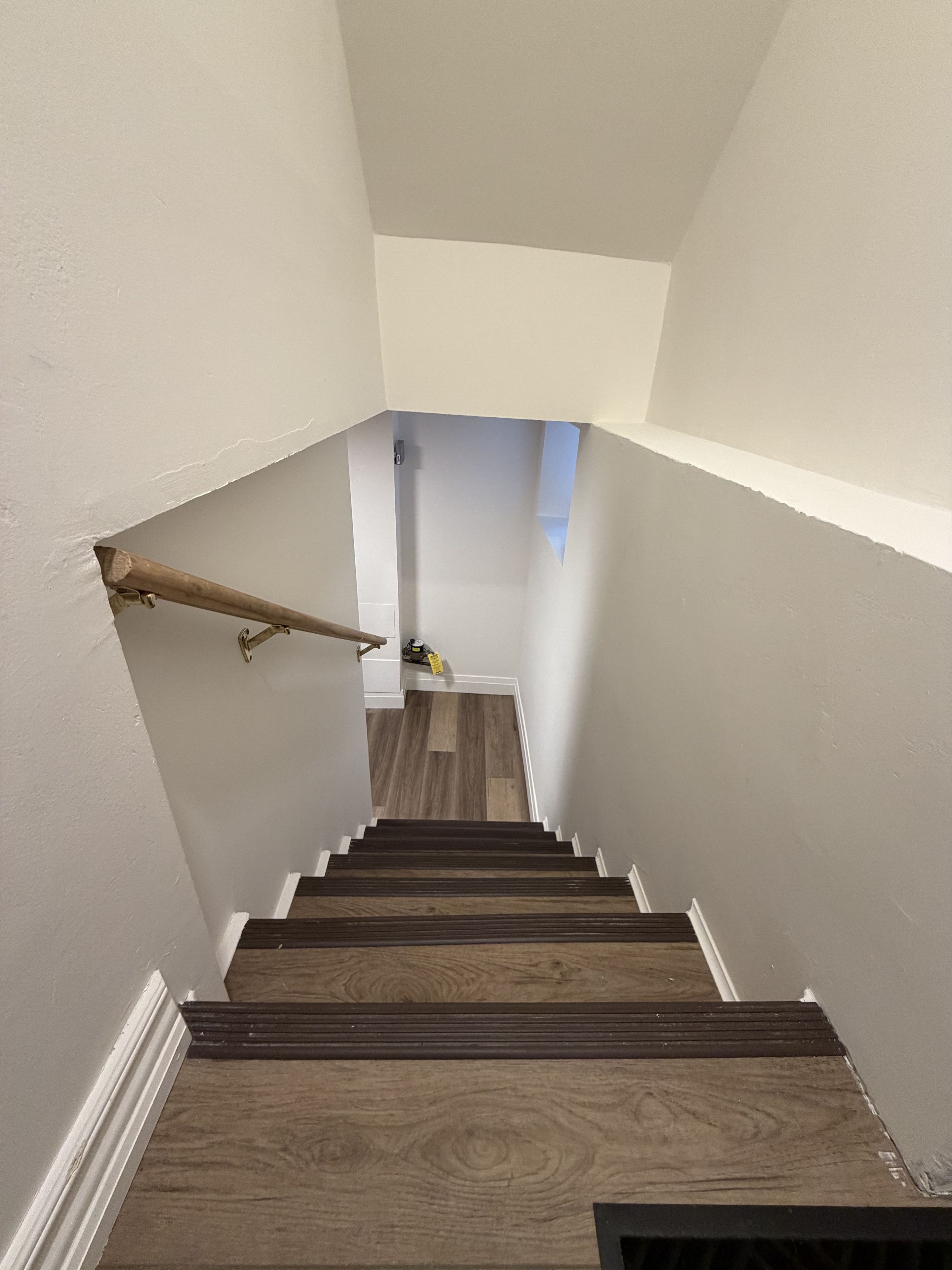• Updated bachelor apartment with new flooring, fresh paint, and renovated bathroom.