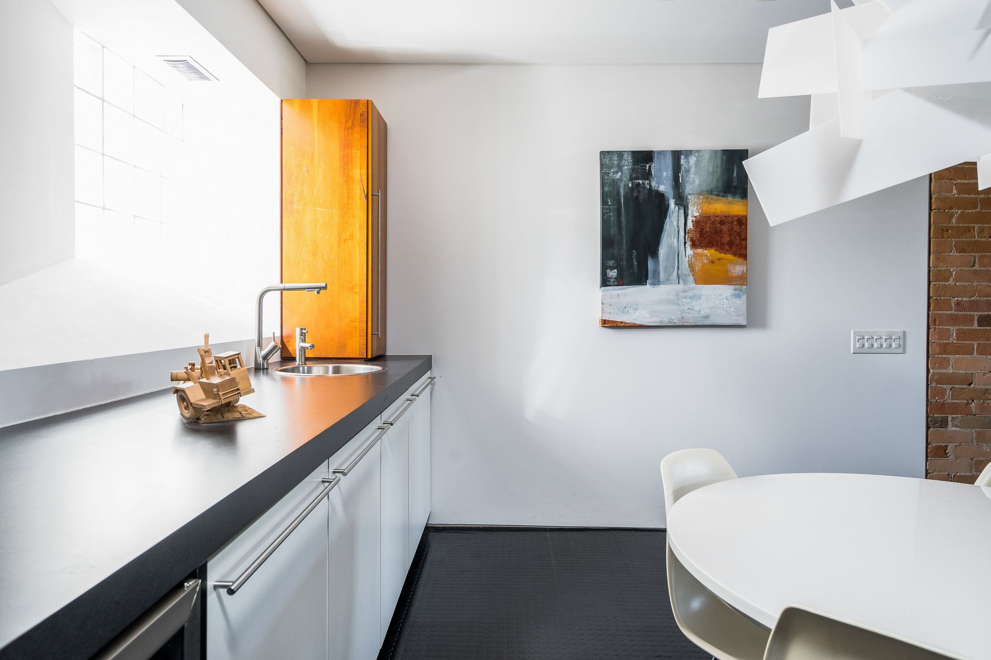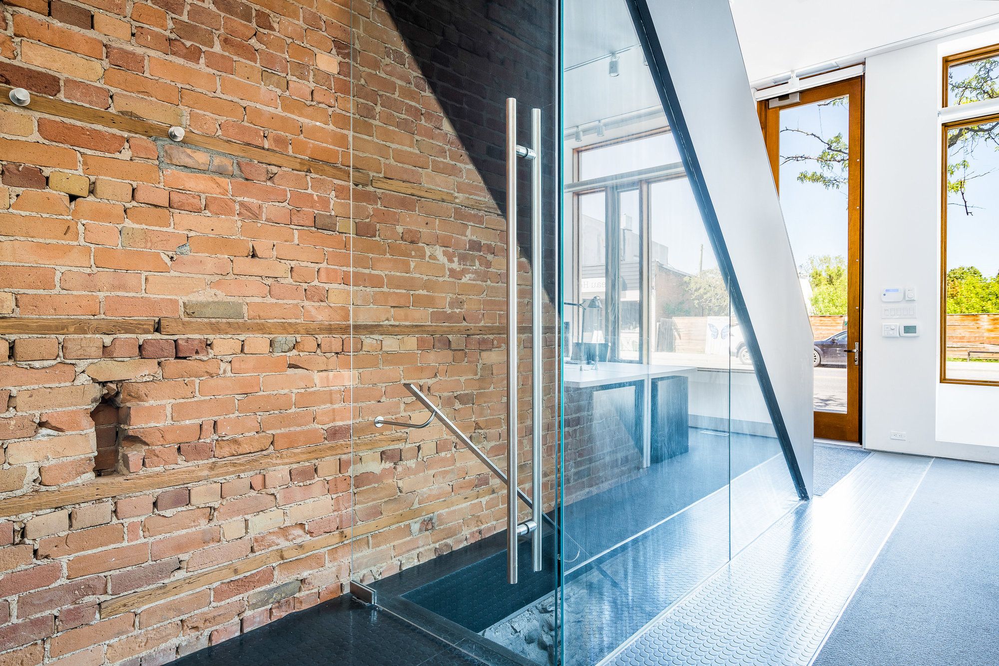 • Character of original structure preserved with exposed stone and brick.