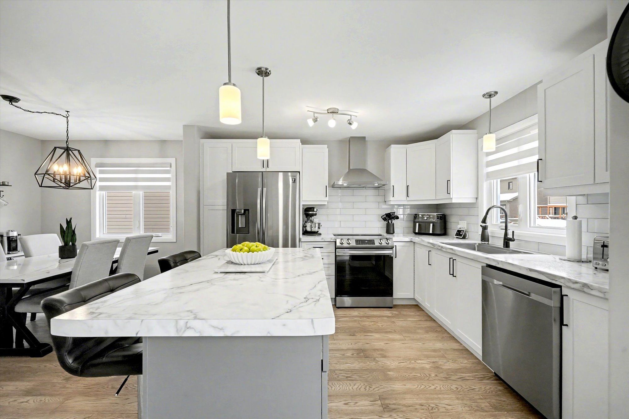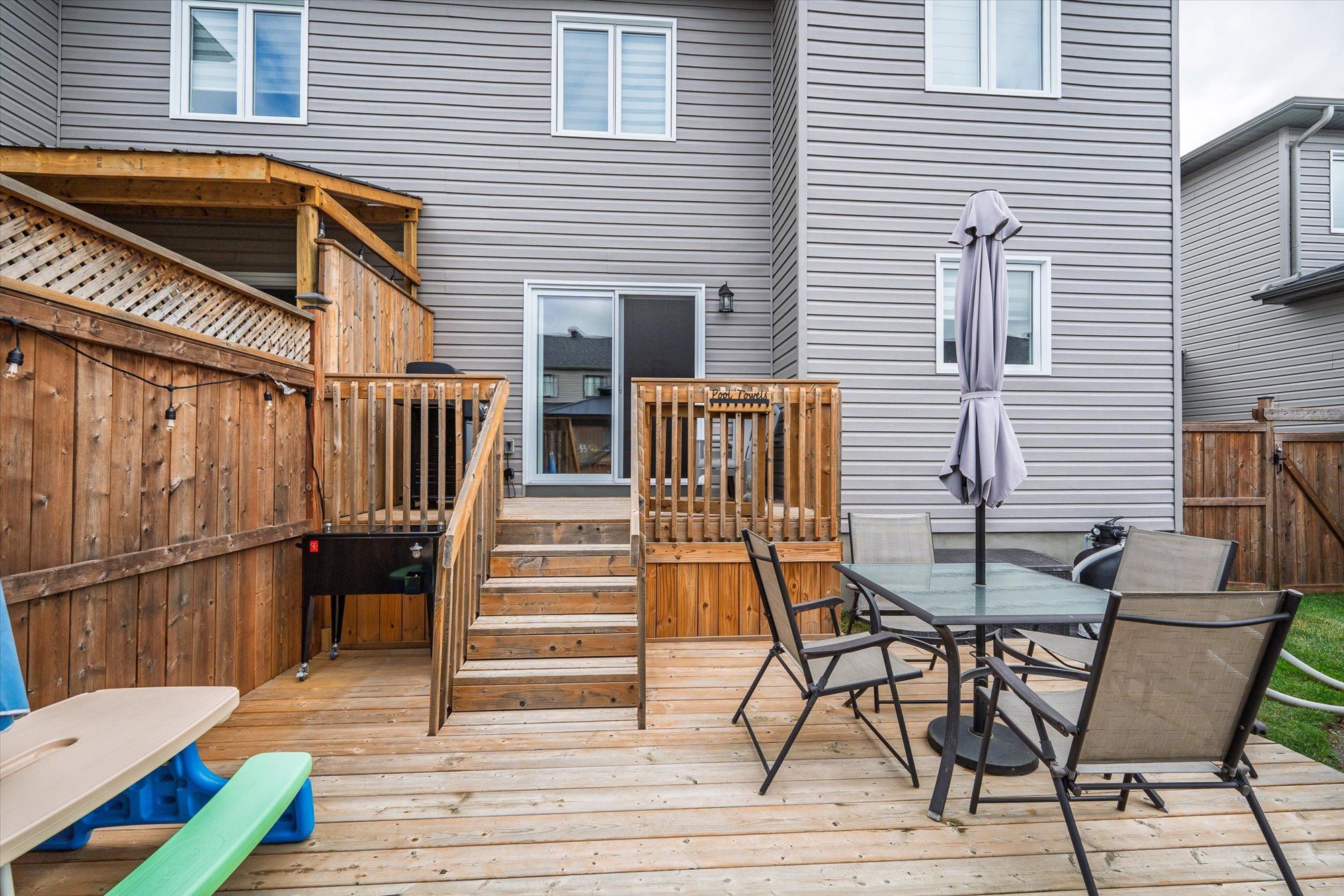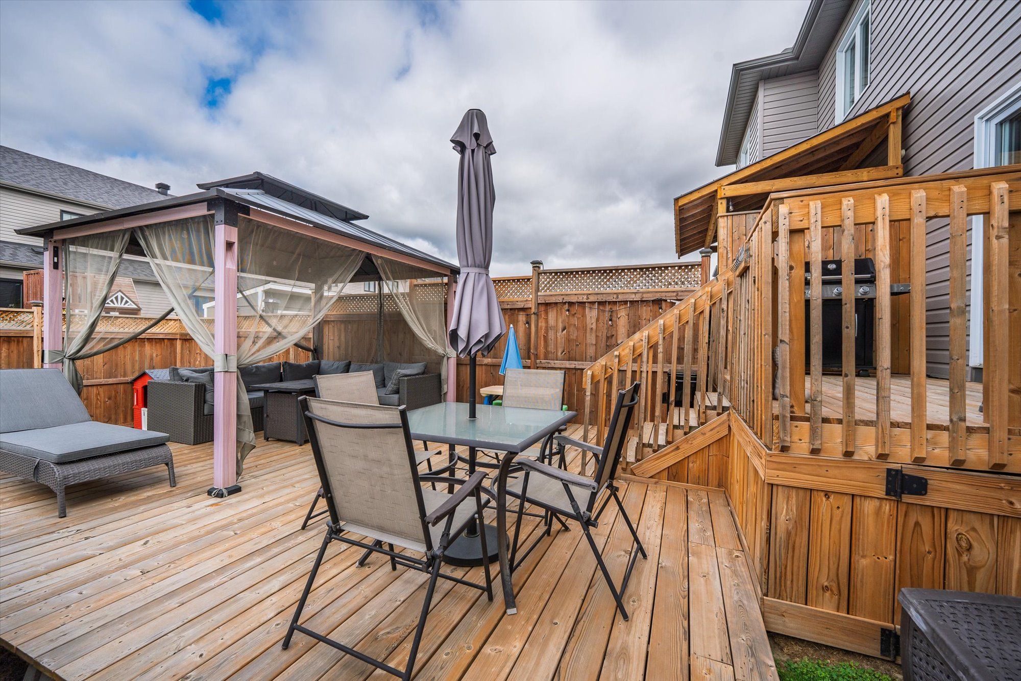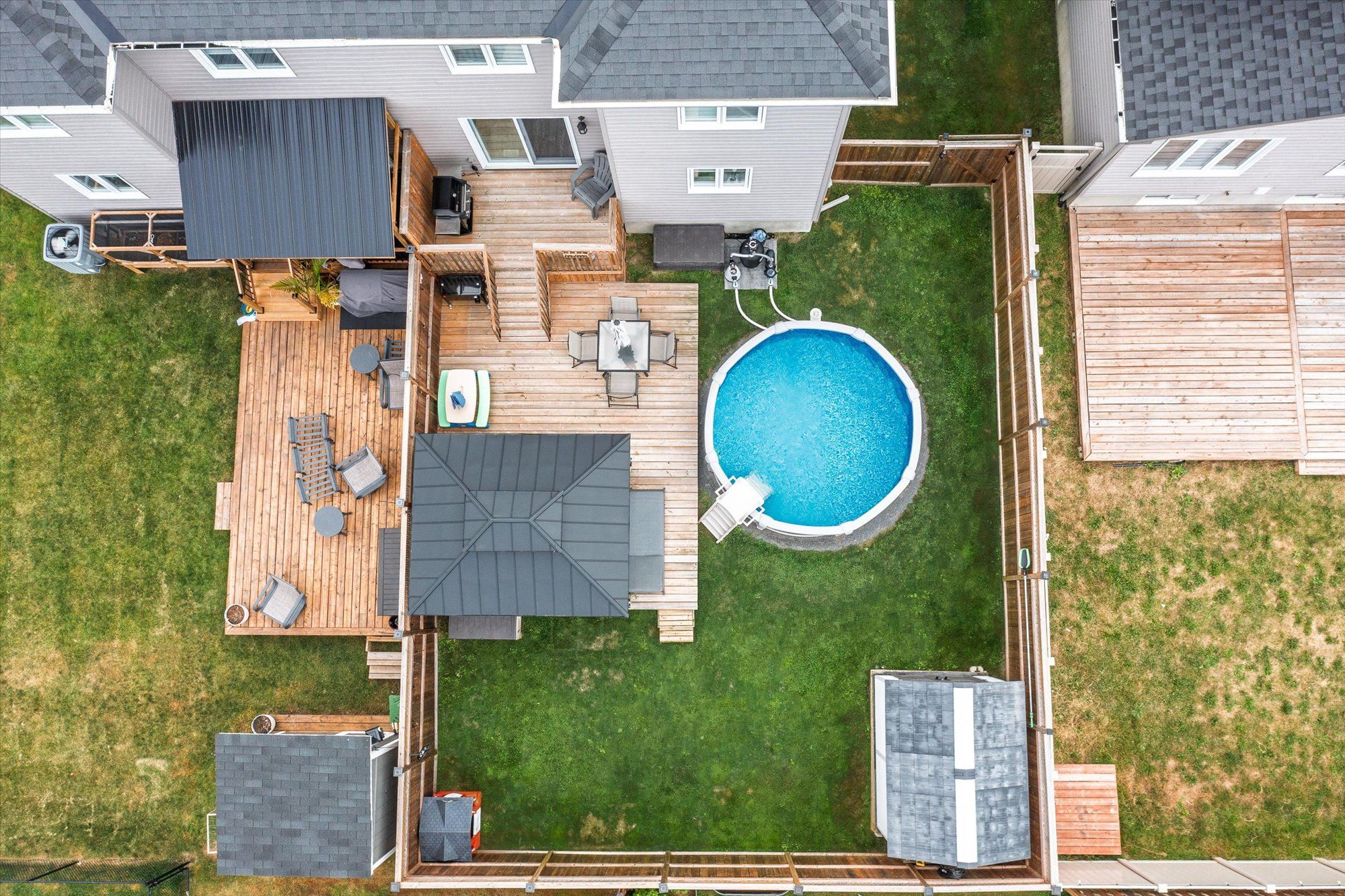 Welcome to 710 azure st, where thoughtful upgrades and inviting spaces come together in the desirable russell community. This beautifully finished residence features an inviting layout with abundant natural light and designer touches throughout. Step into the heart of the home - a stunning kitchen with a chimney-style hood range as the focal point, complemented by rich cabinetry, expanded pantry space and ample room for meal prep and casual dining. The seamless flow from kitchen to dining and living spaces is highlighted by elegant engineered hardwood floors. Patio doors off the living room lead you to the deck overlooking a fully fenced, landscaped yard featuring a gazebo and newly installed above-ground pool (2024) - perfect for summer gatherings. A powder room completes the main level. The luxurious primary suite is a true retreat, complete with an upgraded walk-in closet and spa-inspired ensuite boasting custom glass shower doors and a deep soaker tub, ideal for unwinding after a long day. Thoughtful design continues with two additional bedrooms and a main bathroom, completing the second level. The fully finished lower level includes a rec room and flex space ideal for an office, play area or home gym. The property includes a double-wide laneway and shed (2022). Located in a desirable neighbourhood steps to the 10 km paved new york central recreational trail, russell fair grounds, arena, schools, library, conservation area, sports dome, restaurant, cafe and more. New amenities coming soon include the russell recreation complex with 3 ice rinks, a 25-meter indoor pool, plus the russell station trail / eadie park incl. A tennis and pickleball courts, splash pad and play structure (fall 2026). Discover next-level comfort and timeless style at 710 azure st - a home you'll be proud to own.