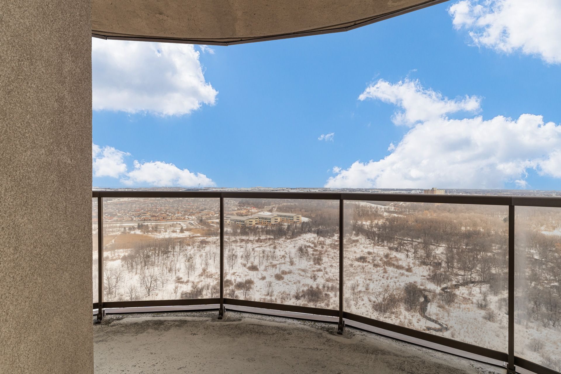 • Open-concept living area with floor-to-ceiling windows and private balcony.