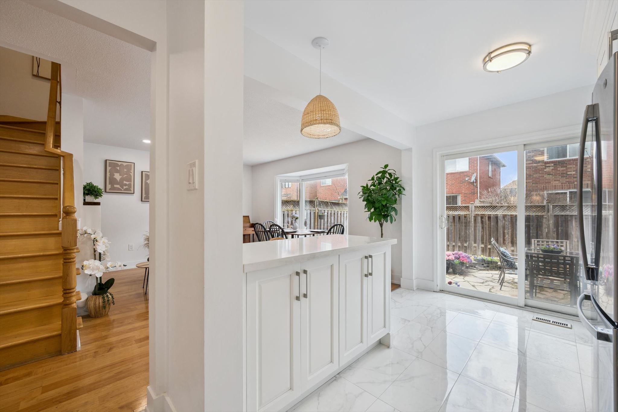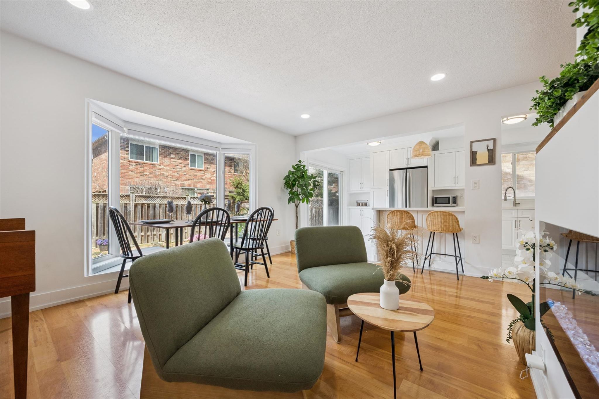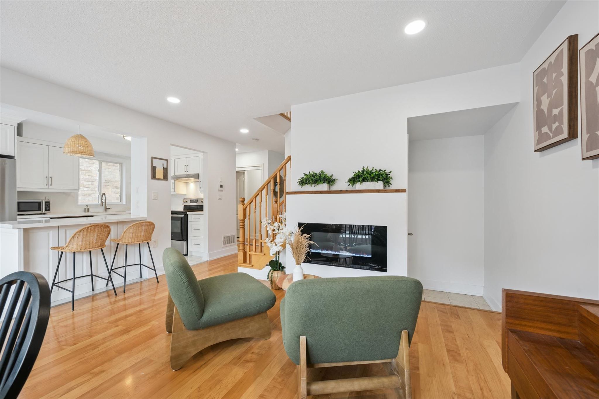 • Renovated open-concept kitchen with stylish quartz counters and modern appliances.