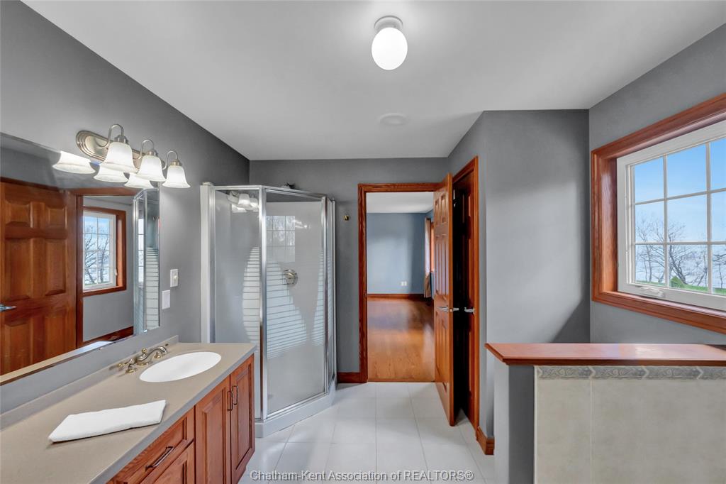 Build your family legacy with this outstanding lake front property. This sprawling custom-built home (2002) has room to grow with over 2800 sf of finished living space. The well thought out layout starts with a 2pc bathroom and mudroom/laundry off of side entrance with it's own back entrance to the covered rear porch and patio area. The large kitchen with breakfast nook has patio door to the rear covered patio with a formal dining room and den/office across the hall. A large living room with gas fireplace wraps around to the 2 storey open foyer, with access to basement, second level stairs, front door and formal dining room. Upstairs has 3 large bedrooms that share a 4pc bathroom with linen closet and the primary bedroom with stunning lake vistas, large 5 pc ensuite and walk-in closet with front and side yard views. The unfinished full concrete basement has an additional 1400 sf of potential living space. Front and rear covered porches with stamped concrete and oversized rear patio with bubbling rock and landscaping. Mature tree lines and excellent views of the everchanging lake erie. The 2. 14 acre property has a detached 2 car garage with storage area and second level loft. The home features forced air heating and cooling with additional boiler fed hot water in-floor heating on the second level with individual zone controls in each room. Be sure to explore the full interactive iguide virtual tour by clicking the "video" button on realtor. Ca.