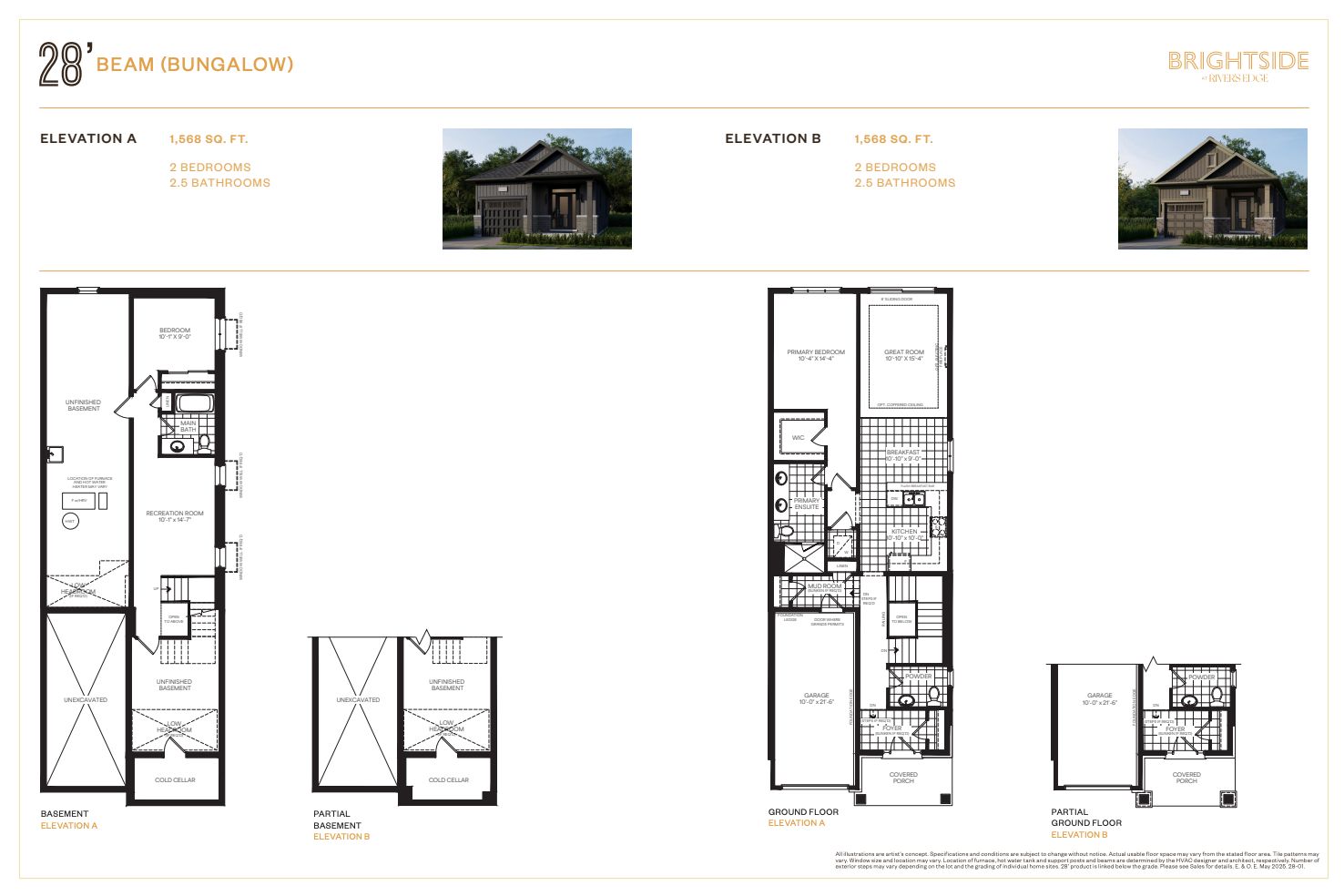 To be built (2027) - welcome to bungalow living in the beautiful brightside by river's edge community. Walking distance to wasaga beach public school and future high school. The 'beam' floor plan offers a 10'x14' primary bedroom on the main floor with a 4pc ensuite and a walk-in closet. Laundry is also conveniently located on the main floor of the home. The living area has an open concept kitchen with a breakfast bar, space for a dining table and living room with sliding doors to the backyard. Downstairs in the basement, you'll find a finished recreation room, 4pc bathroom and a 10'x9' bedroom. Sod and a paved driveway is included.