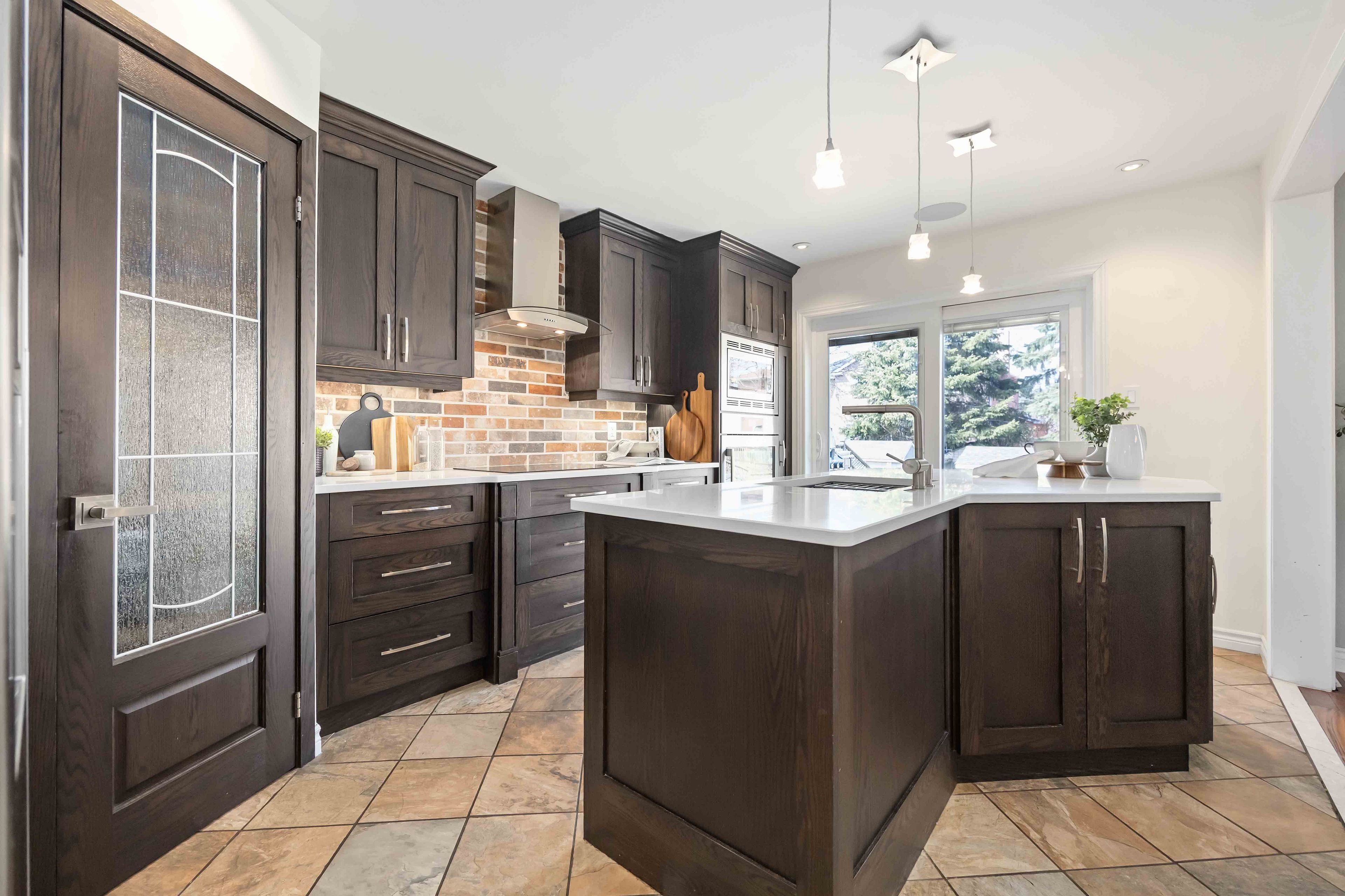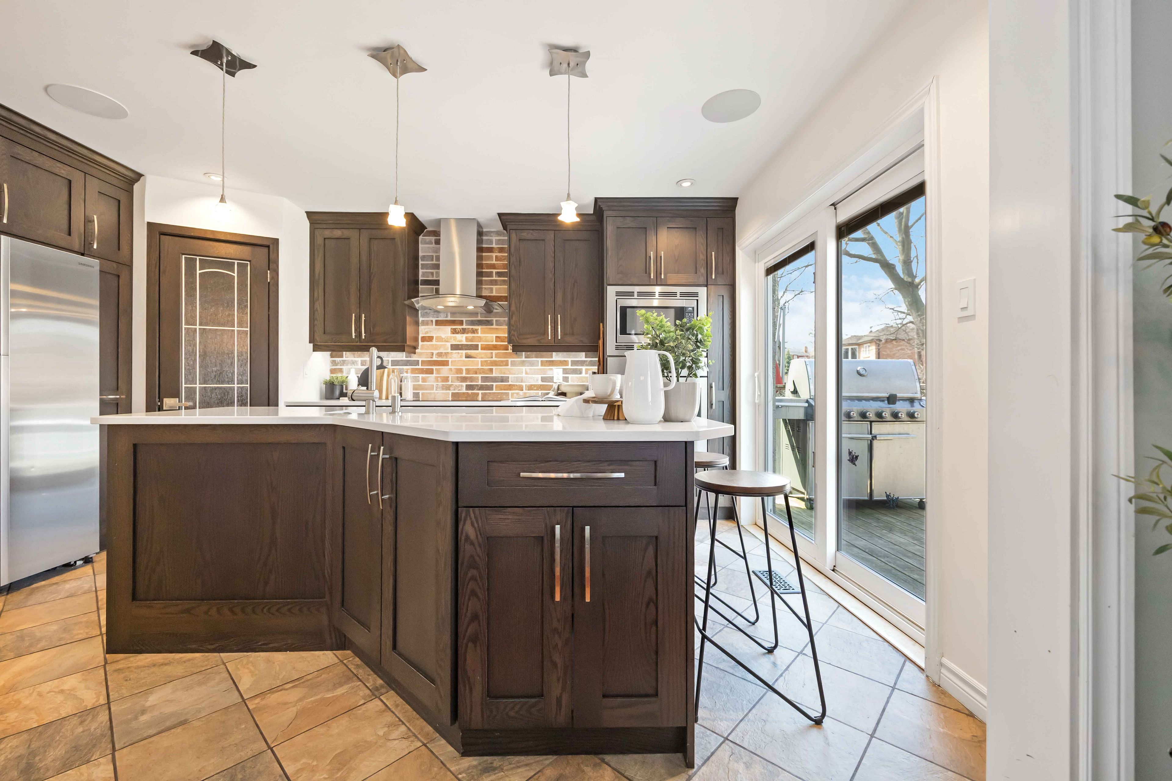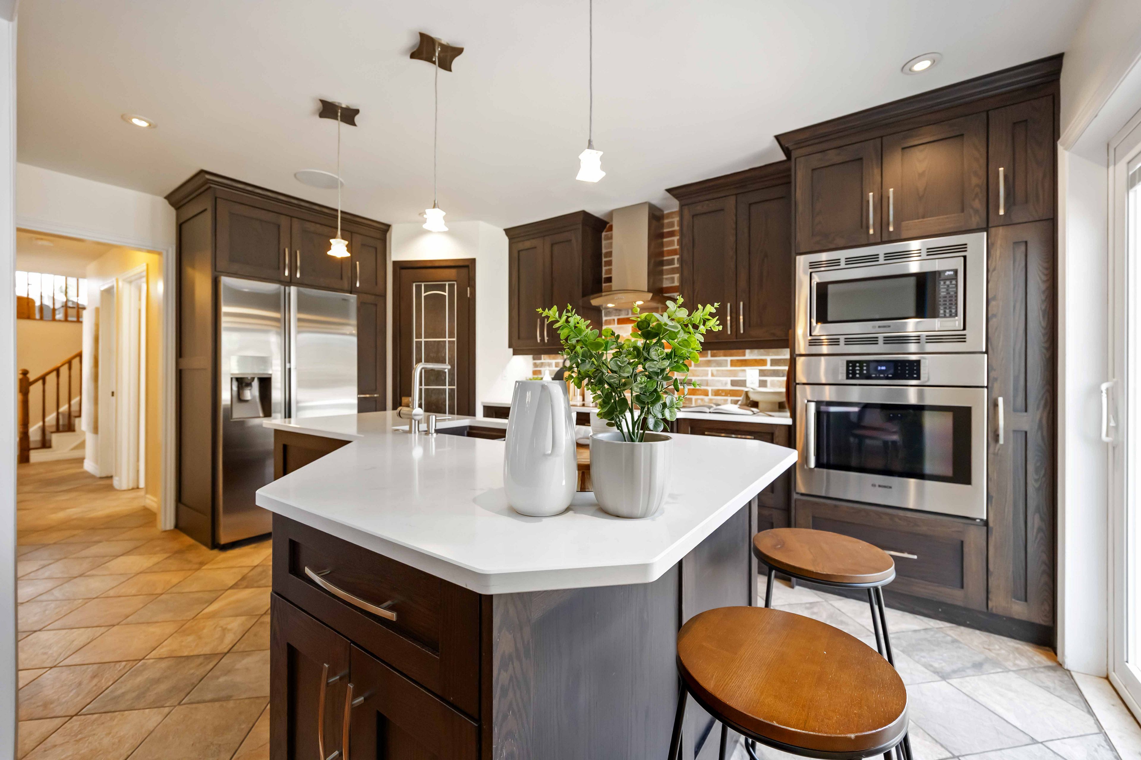 • Renovated kitchen features quartz countertops and convenient pantry with coffee hookup.
