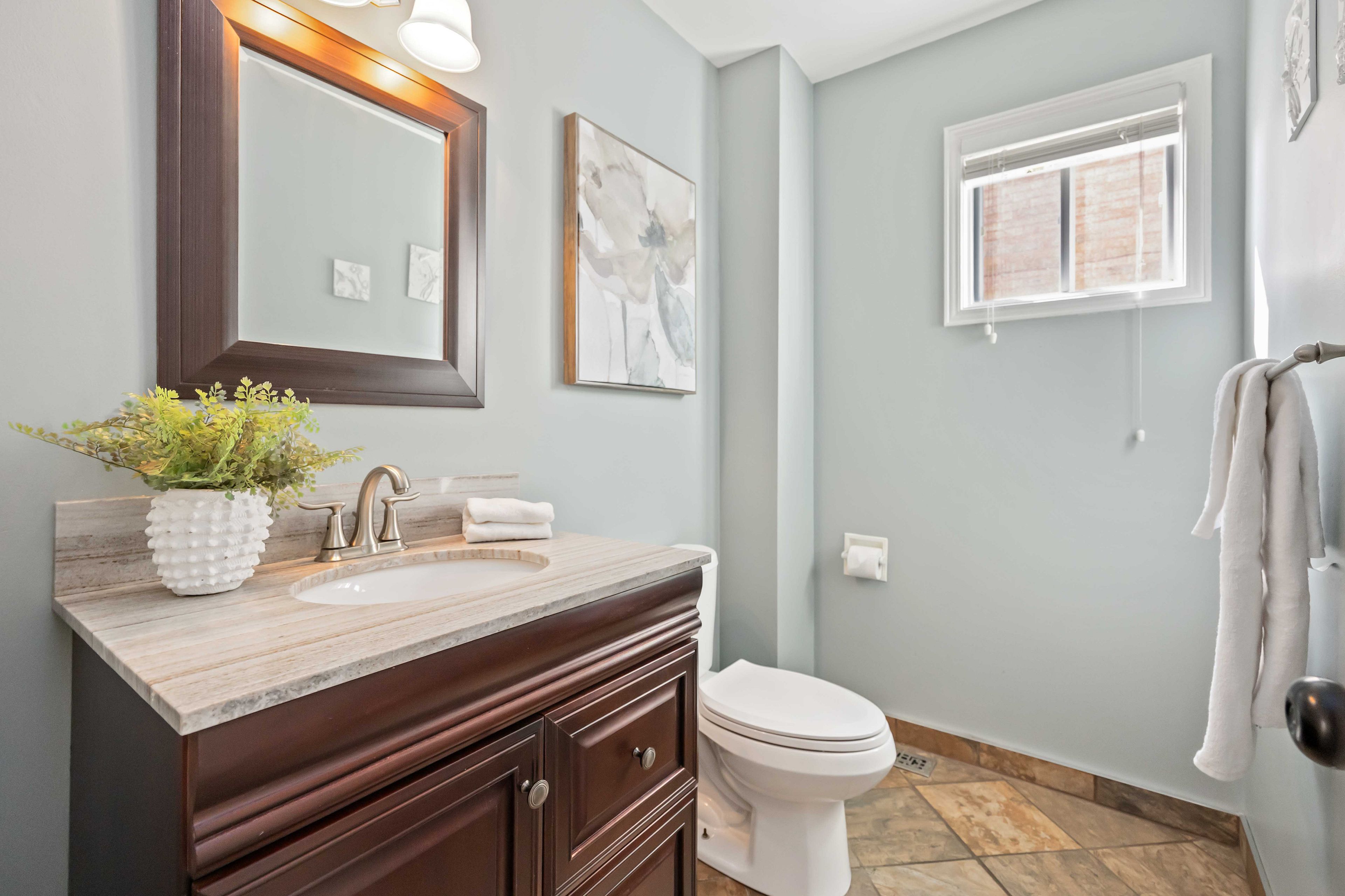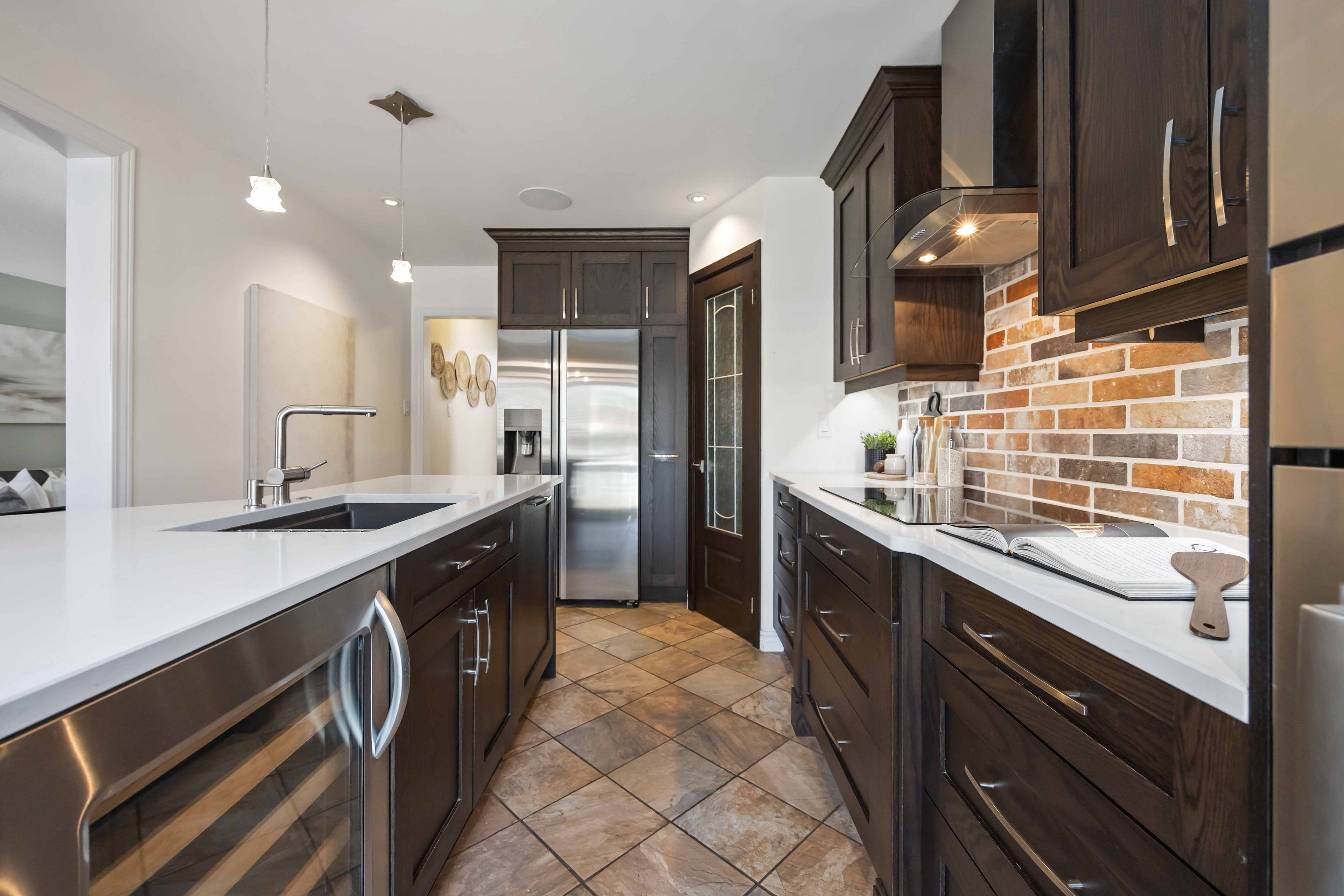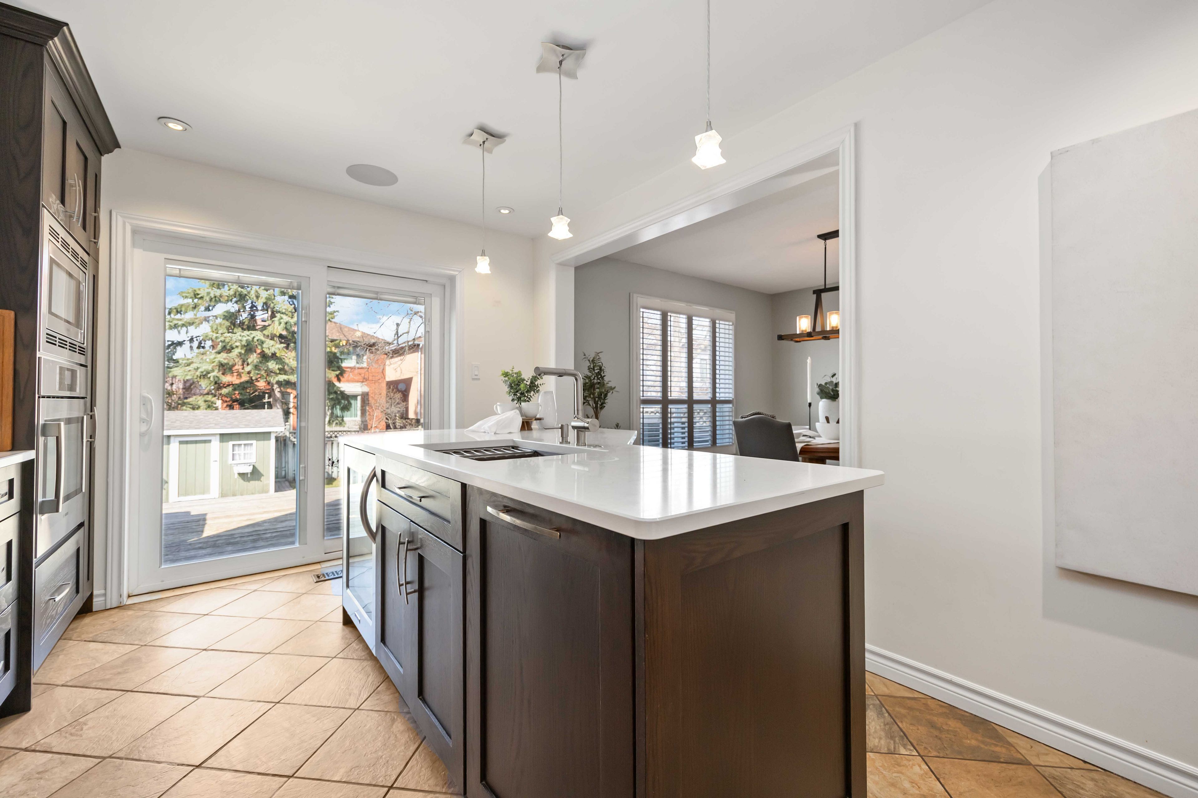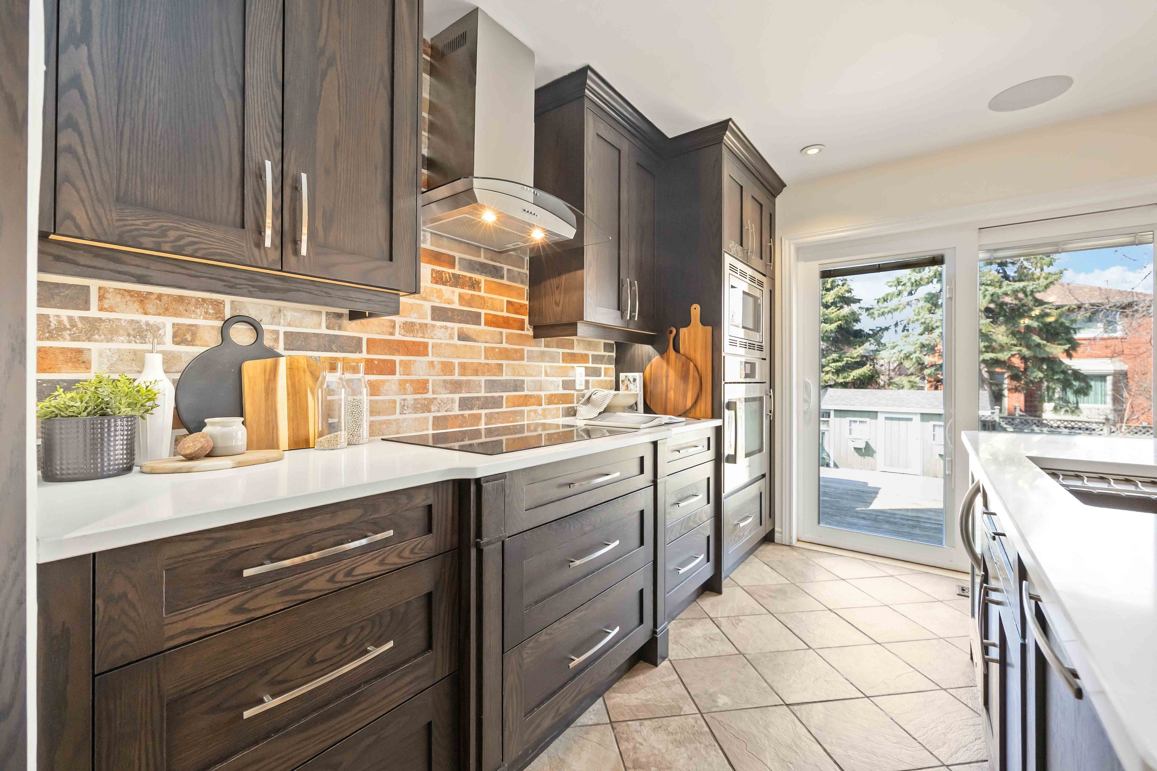 • Renovated kitchen features quartz countertops and convenient pantry with coffee hookup.