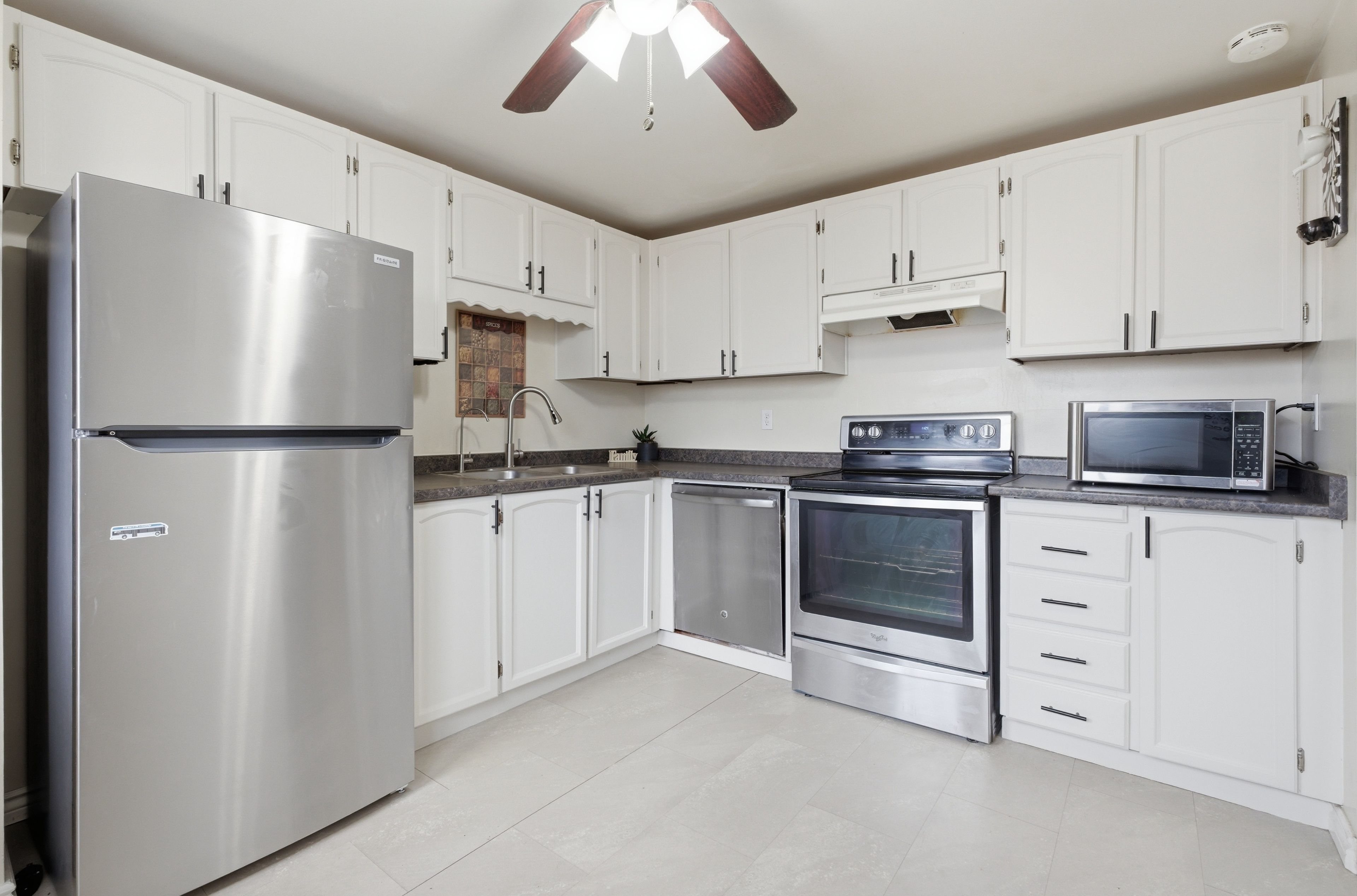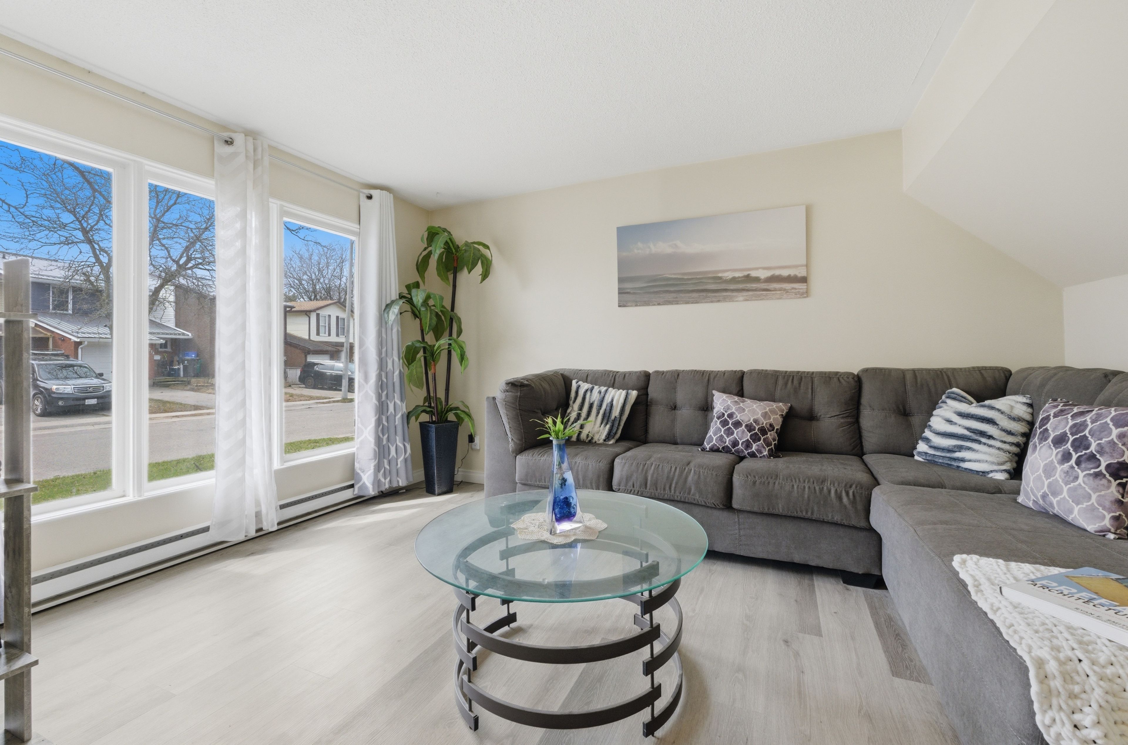Fully maintained and well kept freehold townhouse in cambridge! No potl or condo fees. Ideal for first-time buyers, downsizers or investors. This beautiful townhouse in the heart of preston heights offers a spacious, functional layout with character and charm. The main level features a big and bright living room and lower ground floor offers separate family room space along with dining area, and kitchen -- perfect for everyday living and entertaining. Upstairs features a 4-piece bath and three well-sized bedrooms, including a cozy primary retreat. The finished basement adds a large rec room and utility space, offering storage. Enjoy a beautiful deck in the backyard. New metal roof, gutters, soffit and downspout(july 2025). New flooring for entire house (june 2025). Full bathroom renovation (sept. 2024). New kitchen appliances (december 2025) . New water heater owned (feb 2025) and 2 new a/c (cooling and heating) (aug. 2024). New water softener owned (dec. 2023). All sides new fence (july 2021). New garage door ( feb 2021). Located just minutes from costco, highways 8 & 401, and walking distance to conestoga college, schools, transit, and the new outdoor soccer complex. Book your private showing today!