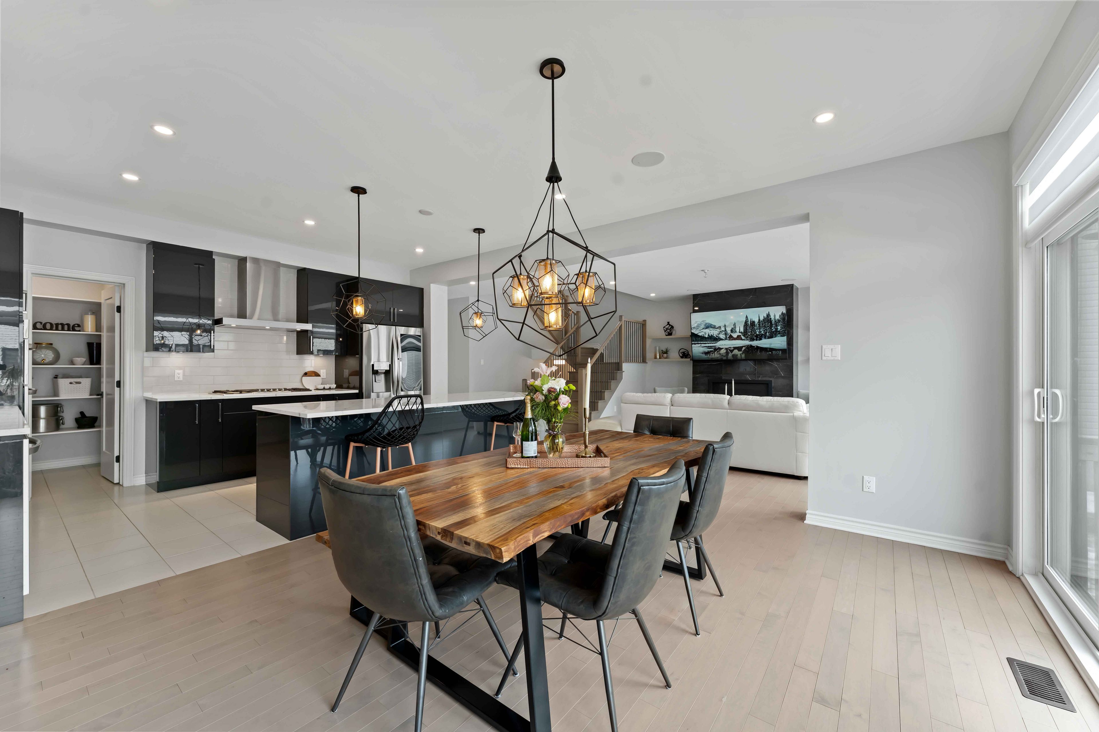 Welcome home! Located in the sought-after findlay creek community & situated on a premium east-facing lot directly facing a park with unobstructed views, this beautifully appointed tamarack granger model showcases an abundance of upgrades throughout and offers a rare 4+1 bedroom layout with 5 bathrooms across three fully finished levels-perfectly suited for modern family living. The bright and welcoming main level features 9-foot ceilings, elegant hardwood flooring, spacious open-concept living and dining areas -ideal for entertaining and everyday comfort. The chef-inspired kitchen is a true highlight, complete with quartz countertops, a striking waterfall island, high-end stainless steel appliances, and an oversized walk-in pantry. The large living room with a gas fireplace and built-in ceiling speakers creates a warm yet refined gathering space. A versatile main-floor office/den adds flexibility for guests or remote work. A set of hardwood stairs leads to the second level, where you'll find hardwood flooring throughout and a thoughtfully designed layout. The spacious primary retreat features a large walk-in closet and a beautifully finished 5-piece ensuite bathroom, while three additional bedrooms are complemented by two full bathrooms. A convenient second-floor laundry room enhances everyday functionality. The builder-finished lower level continues the home's impressive feel with 9-foot ceilings, a generous family room area with a gas fireplace, an additional bedroom with two closets, and a stylish 3-piece bathroom-ideal for entertaining or extended family accommodations. Parking for six vehicles (2 in the garage, 4 in the driveway) adds convenience, and the prime location completes this exceptional offering. With the balance of the tarion warranty remaining, this move-in-ready home offers the feel of new construction, extensive upgrades throughout, and the rare advantage of direct park-facing views in a highly desirable setting.