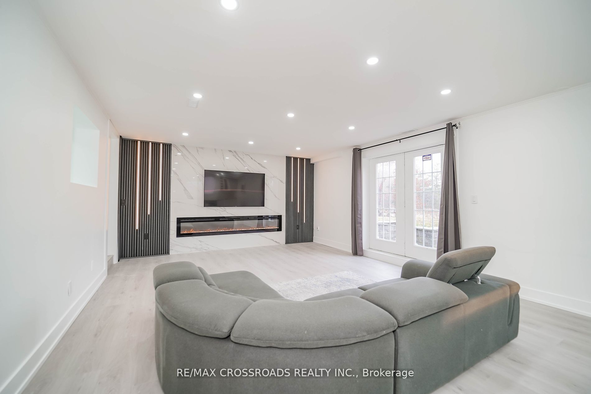 Fully renovated 2025 with new windows, doors, and contemporary finishes. Set on 3. 1 acres backing onto woodland, this open-concept home features high ceilings, modern neutral tones, and a chef's kitchen with premium appliances and a 9. 5' quartz waterfall island. Main level offers 3 bedrooms, including a luxe primary suite with heated floors, stepless glass shower, freestanding tub & bidet. Living room showcases a cathedral-style oak feature wall, 72" fireplace & 3 skylights. Lower level adds 2 bedrooms, a modern bath, and a theatre room with 98" fireplace + bar-ideal for guests or multigenerational living. Exterior includes an interlocked patio with fireplace and built-in seating. Located steps to ymca, city hall, private school, police station, future rvh south campus, and minutes to future orbit city. Bonus: rough-in for additional 3-pc bath. (one of gtas biggest developers owns significant lands around this area perfect for land banking) work or live from home