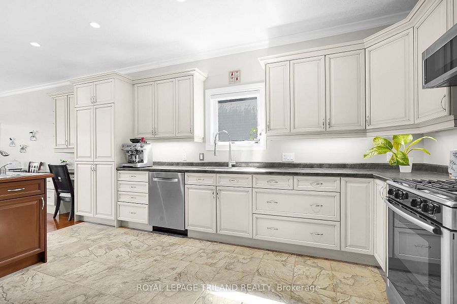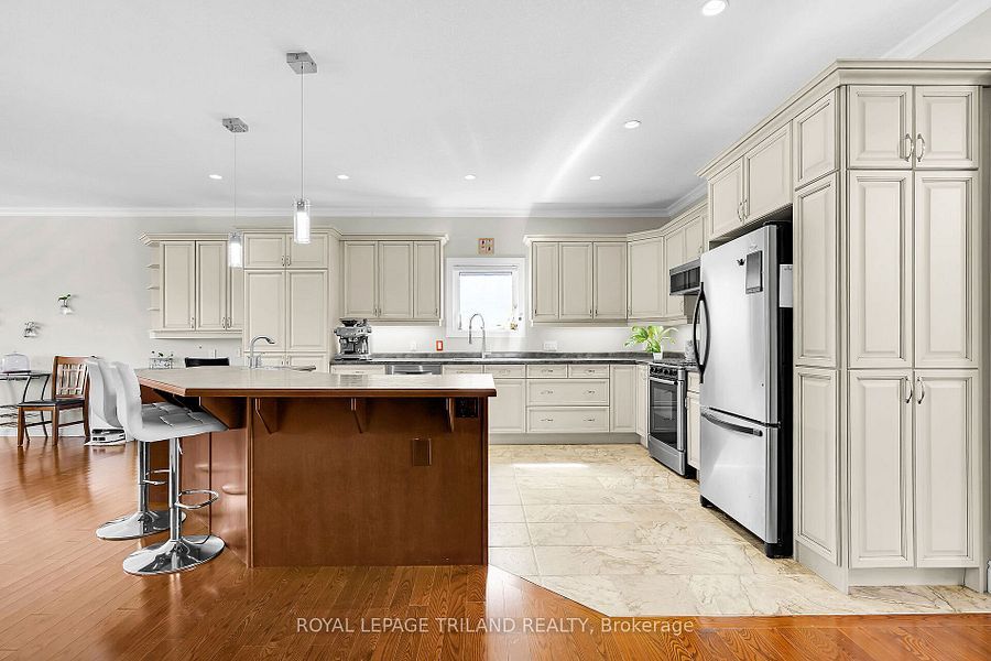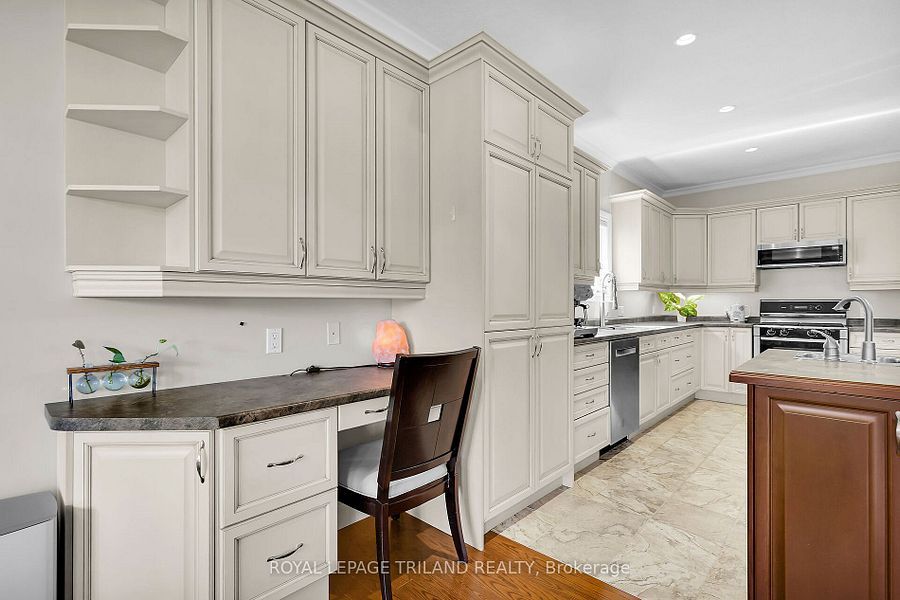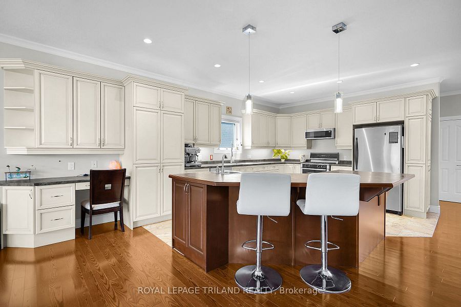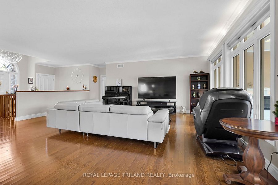 This executive custom built ranch located in a desirable south london neighbourhood comes with 5 bedrooms, 3 bathrooms. This home is spacious enough for most families and yet still retains that cozy feel. Located on a premium walk out lot backing on to a green belt, with mature trees which can be enjoyed from its patio. The open concept main floor along with a finished walk out lower level will provide ample living space. Primary bedroom has an oversized customized walk in closet.