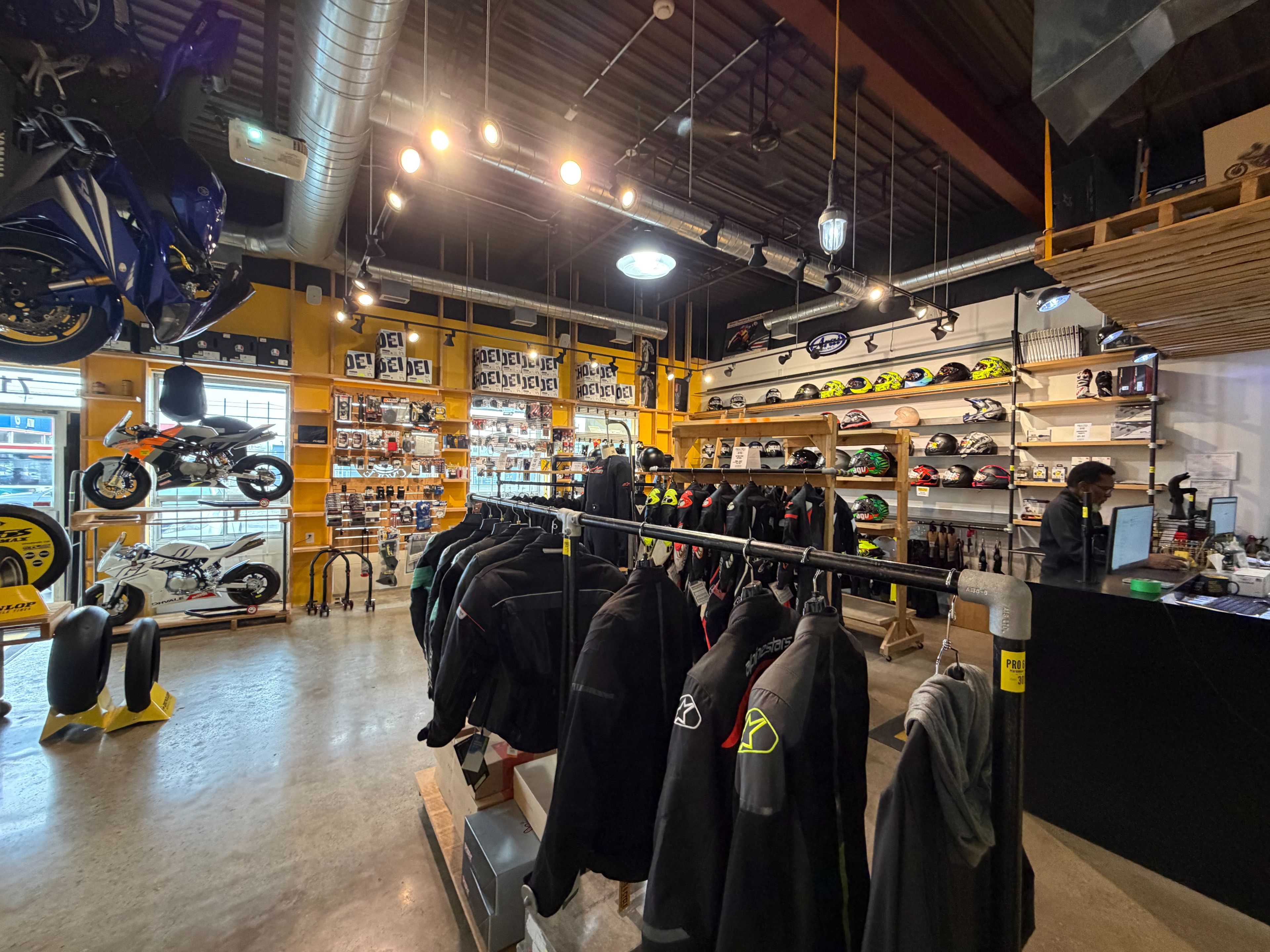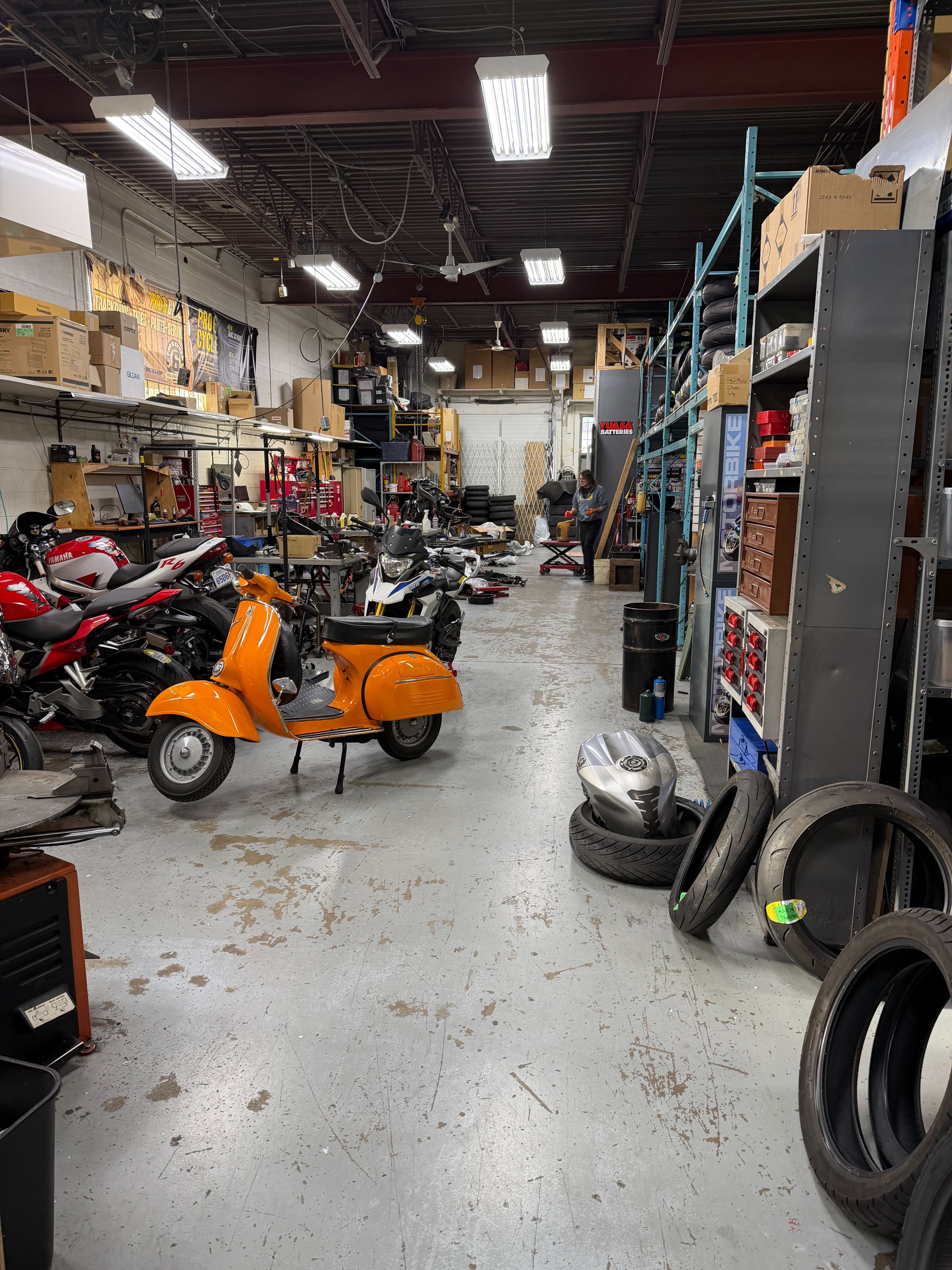 • Currently set up as a motorcycle repair and showroom.