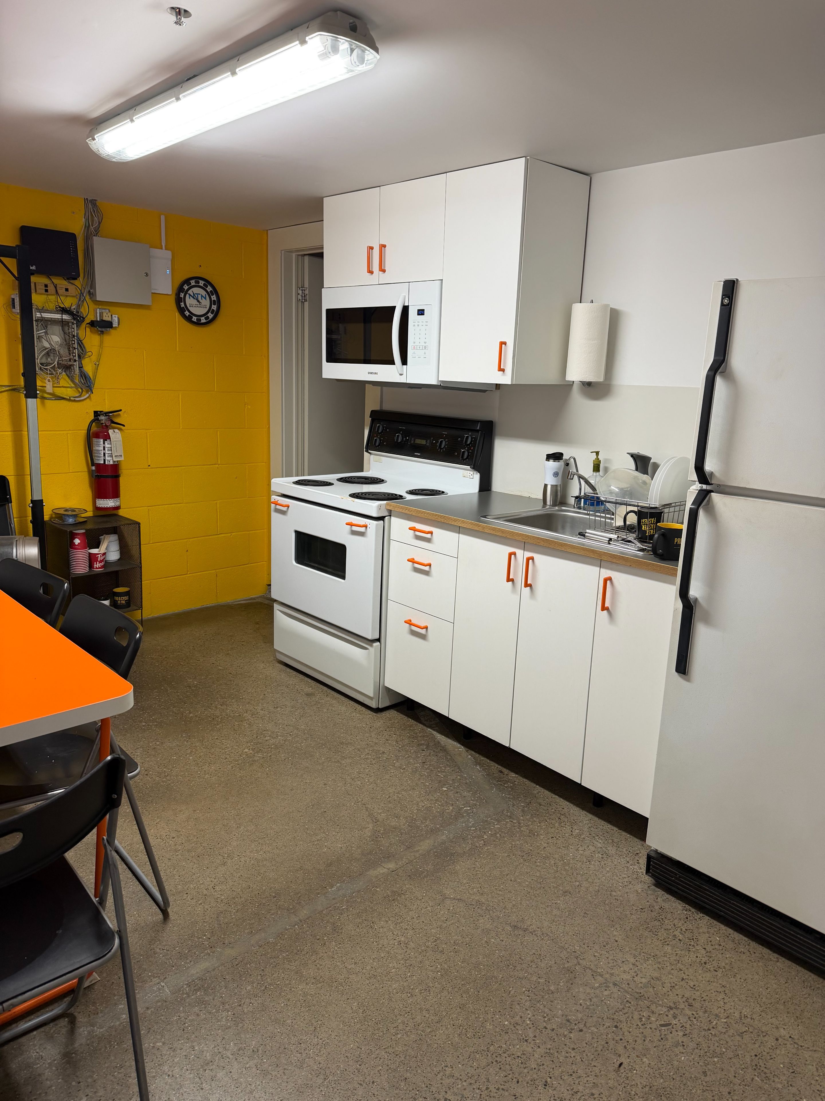• Bright open concept front office and showroom with LED lighting.