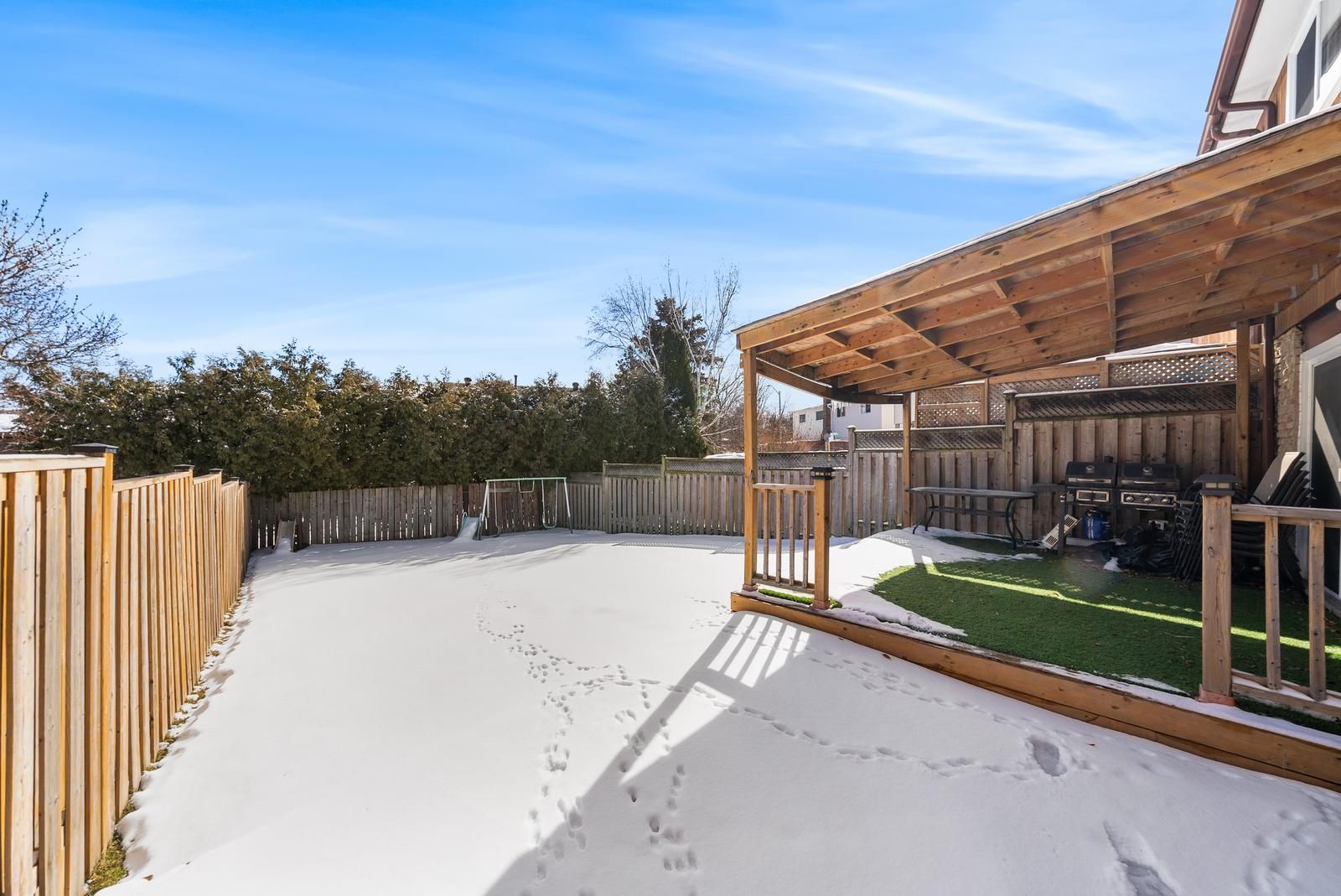 • Large private backyard with a deck, ideal for summer gatherings and relaxation.