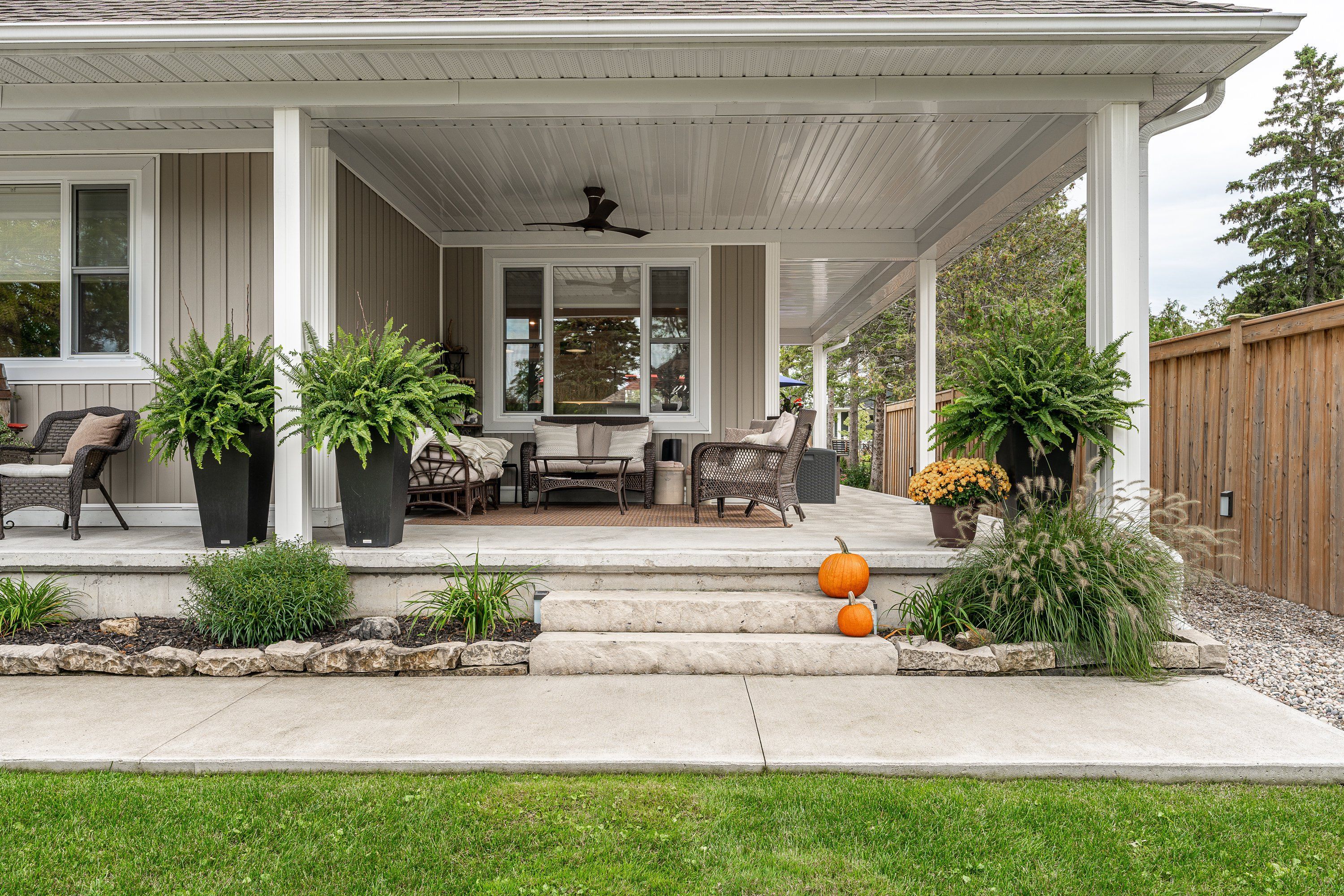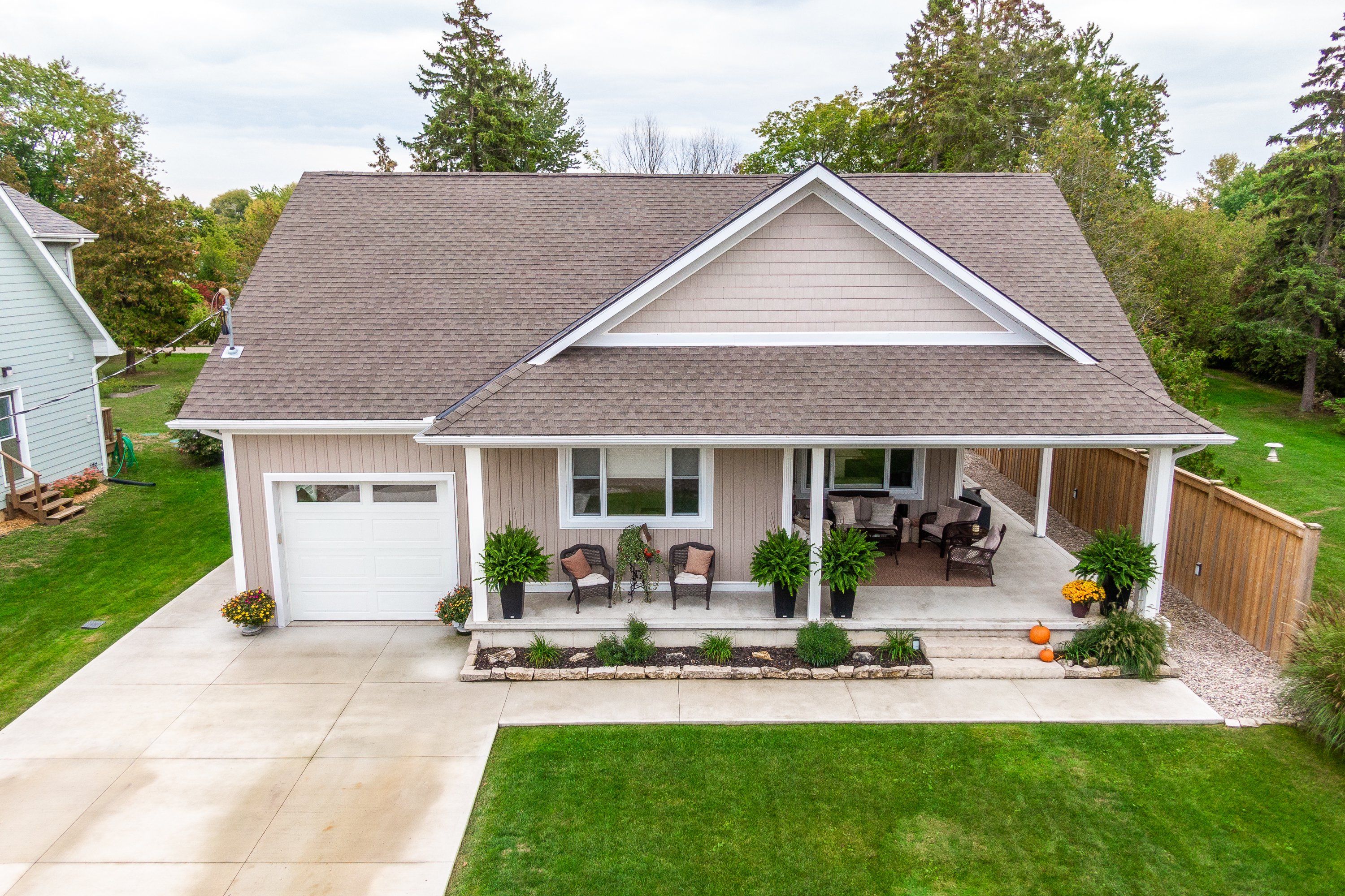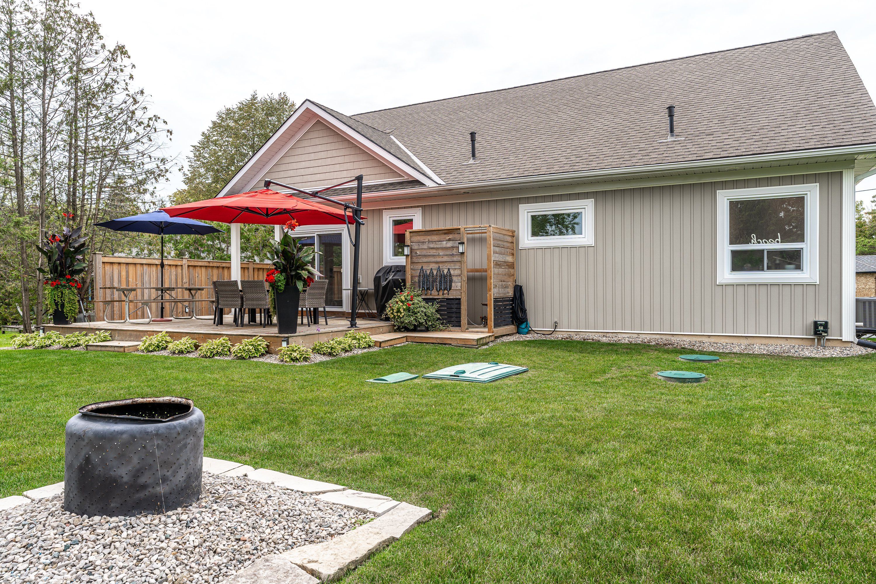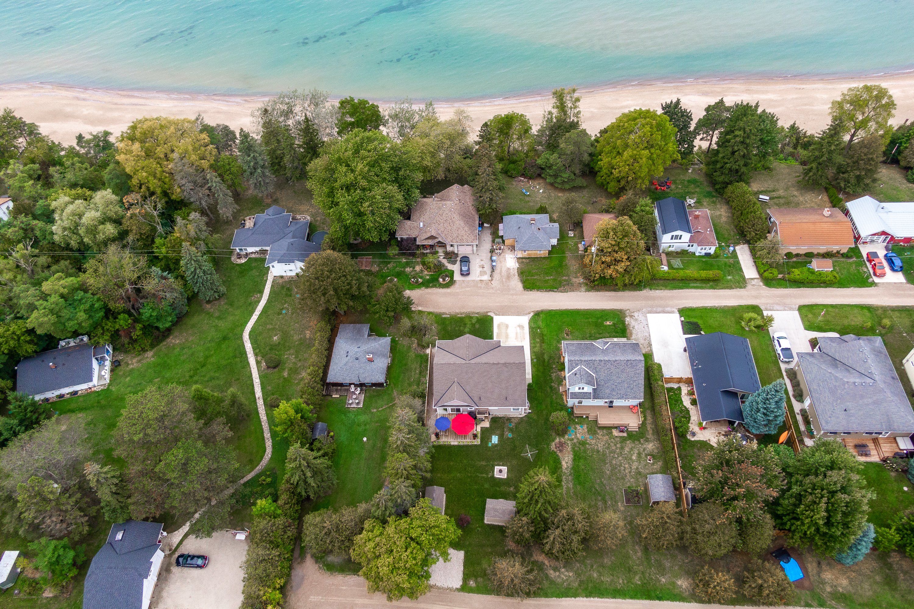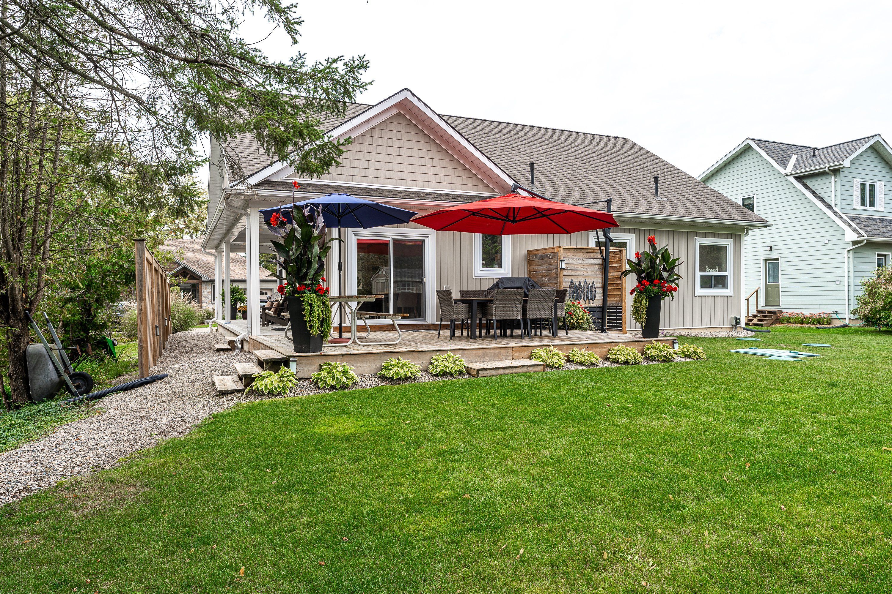 Discover tranquility in this charming lakeside community. Just steps away from lake huron's shores, this lake house offers private beach access for sun-soaked days and stunning sunsets. Minutes north of grand bend, built in 2018, this 1500sq ft 2-bedroom 2-bath property offers high end finishes and meticulously kept grounds. The interior of this home boasts an open concept living area & quartz kitchen w/ soaring cathedral ceilings, ample cabinet space and massive 2 tier island for family and guests to gather around. Main floor bedroom & gorgeous 4 pc bath w/ walk in shower & soaker tub. The upper level features a primary bedroom w/ 4 pc washroom. Insulated & heated garage has been converted to a 3rd bedroom/games room/media room and is used year-round by the current owner. Main floor laundry w/ custom cabinetry. On demand water heater, furnace, air exchanger and central air, gas generator. The exterior of this home features an expansive beautiful fully covered front porch and side entrance, double concrete driveway, outdoor shower, ample deck with built-in cantilevered umbrella, 2 storage sheds and accessory parking in rear. All located on a private street with no through traffic a few steps from the private beaches. Call for more information or to schedule a private showing.