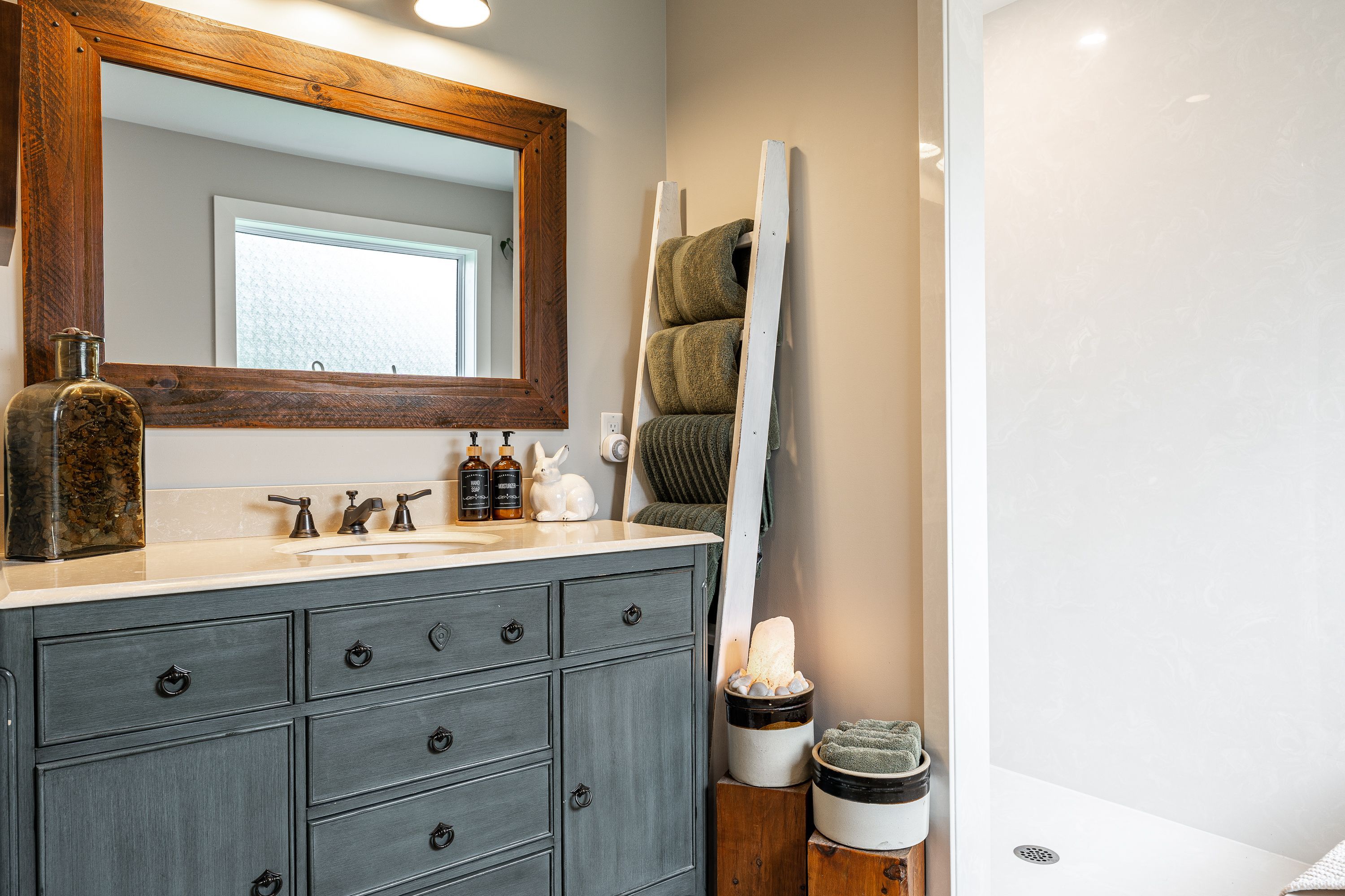• Expansive covered porch, outdoor shower, and double driveway complete the exterior.