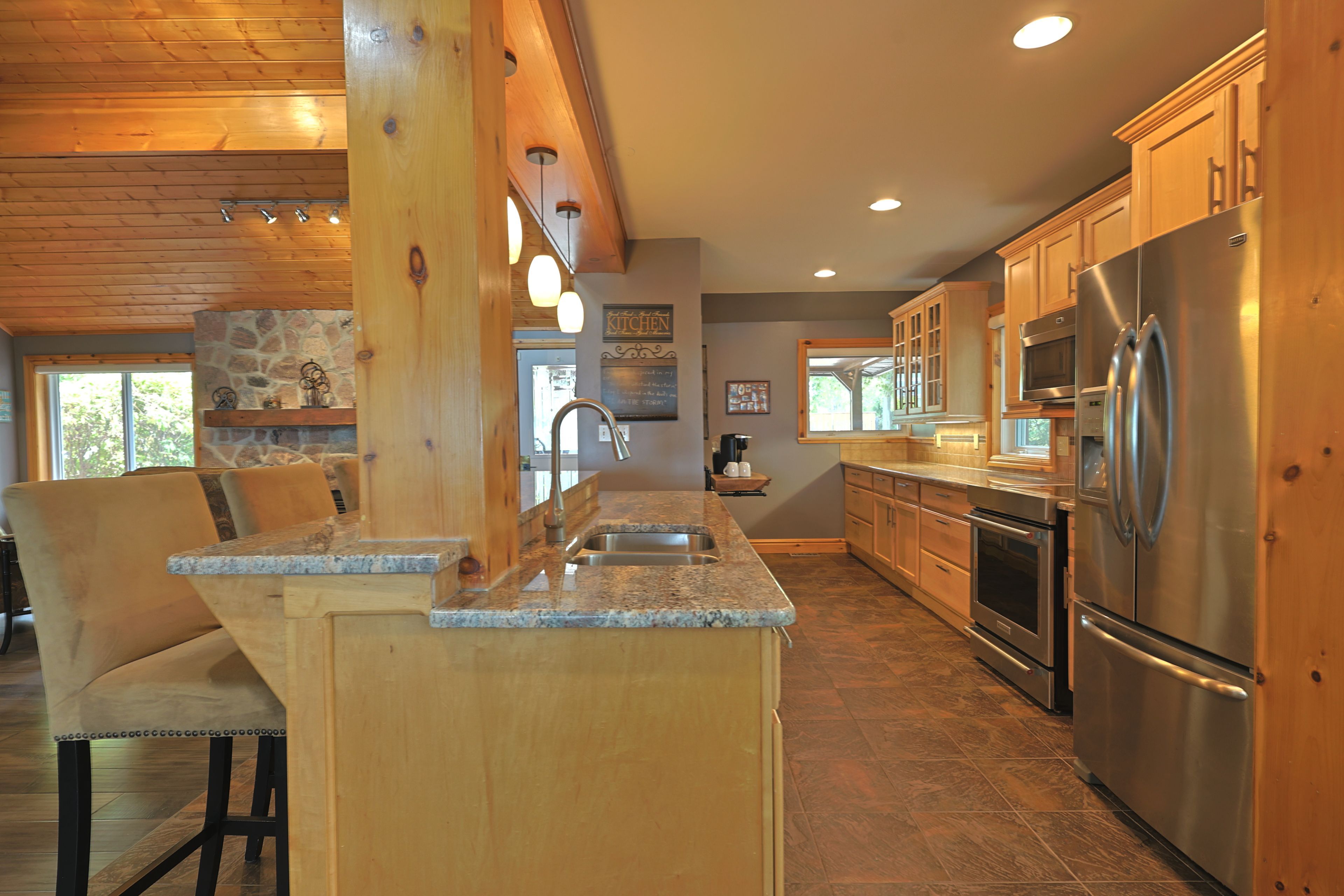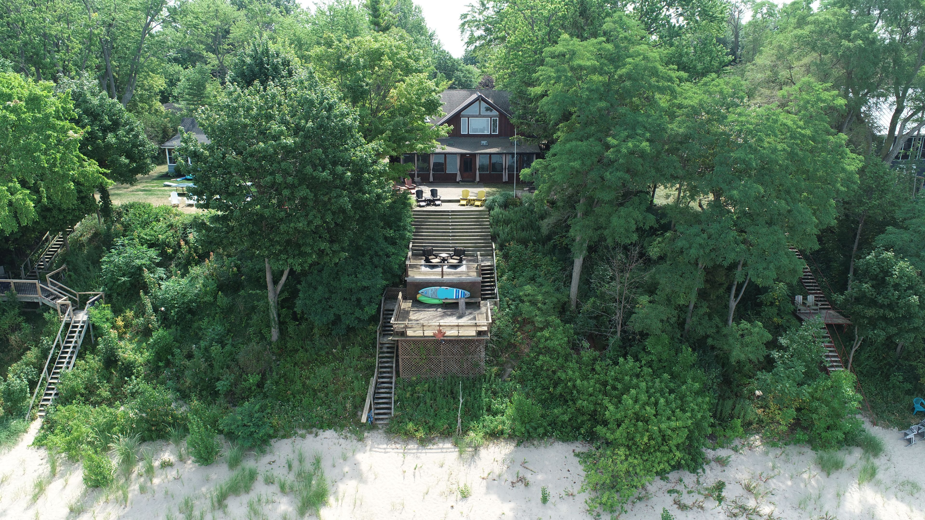 The picture-perfect lakefront retreat just north of grand bend! Start checking the boxes off for sandy beaches, panoramic lake views, private setting, spacious updated living space and turnkey with furniture included. Situated in the highlands iii neighborhood this year-round home catches your eye. With the charming log home wood siding finish complimented by the covered front entrance, landscaped gardens, second floor transom windows and stone chimney. On the lakeside its your private oasis with a 400 sqft three season sunroom that transitions you from the inside living space to your back yard. The sunroom is a great screened in space during the day with lexan coverings for colder nights. Large patio space leads to a three-tiered deck down to the sandy beaches of lake huron. Inside you have an updated open concept design with engineered hardwood flooring, vaulted knotty pine ceilings and a living space flowing with natural light. Enjoy the panoramic lake views found throughout the home. The kitchen includes stainless steel appliances, wood cabinetry, pantry for storage and granite countertops with eat up island. Living room with large lakeview windows and patio doors leading to the lakeside sunroom. A large eating area is great for entertaining family and the reading space at the front of the home is the perfect spot to get cozy by the gas fireplace. Main floor primary bedroom suite with double closets, full ensuite and lake views. The main floor also includes a second bedroom and additional full bathroom with laundry. Upstairs you have an open loft area that leads to the perfect office space with a large panoramic window overlooking the lake no need for a screen saver with this view. The second floor also includes a third bedroom and space for guests in the guest room. Come enjoy the relaxing days on the beach, the long walks along the sandy shores of lake huron, the nightly sunsets over the water and the calming lifestyle of living on the lake.