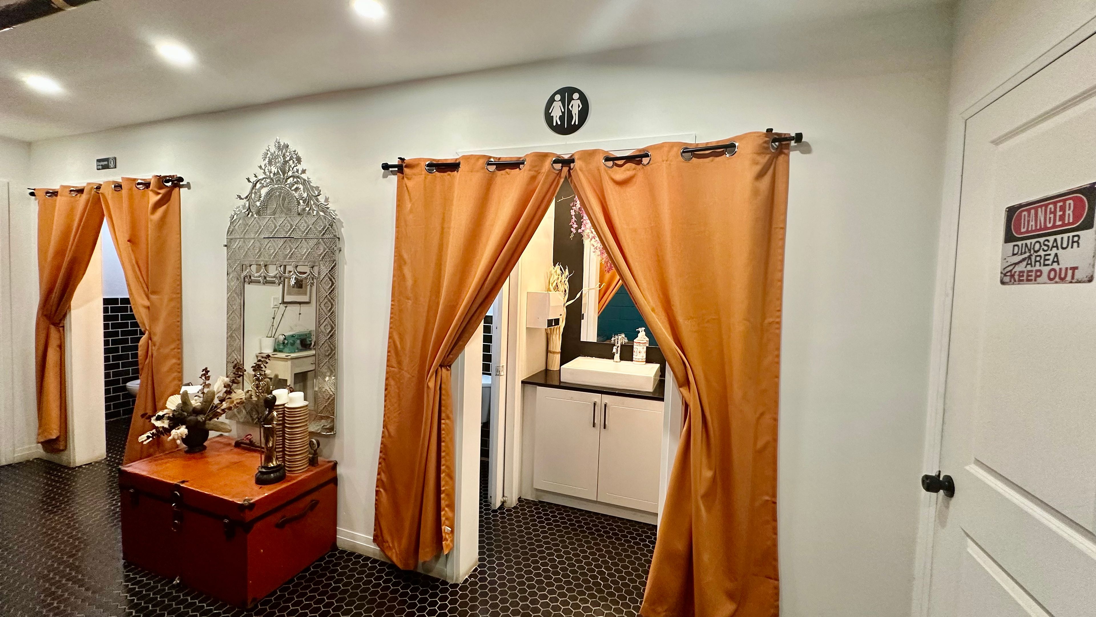 • Well-maintained customer bathrooms and ample storage in the basement.