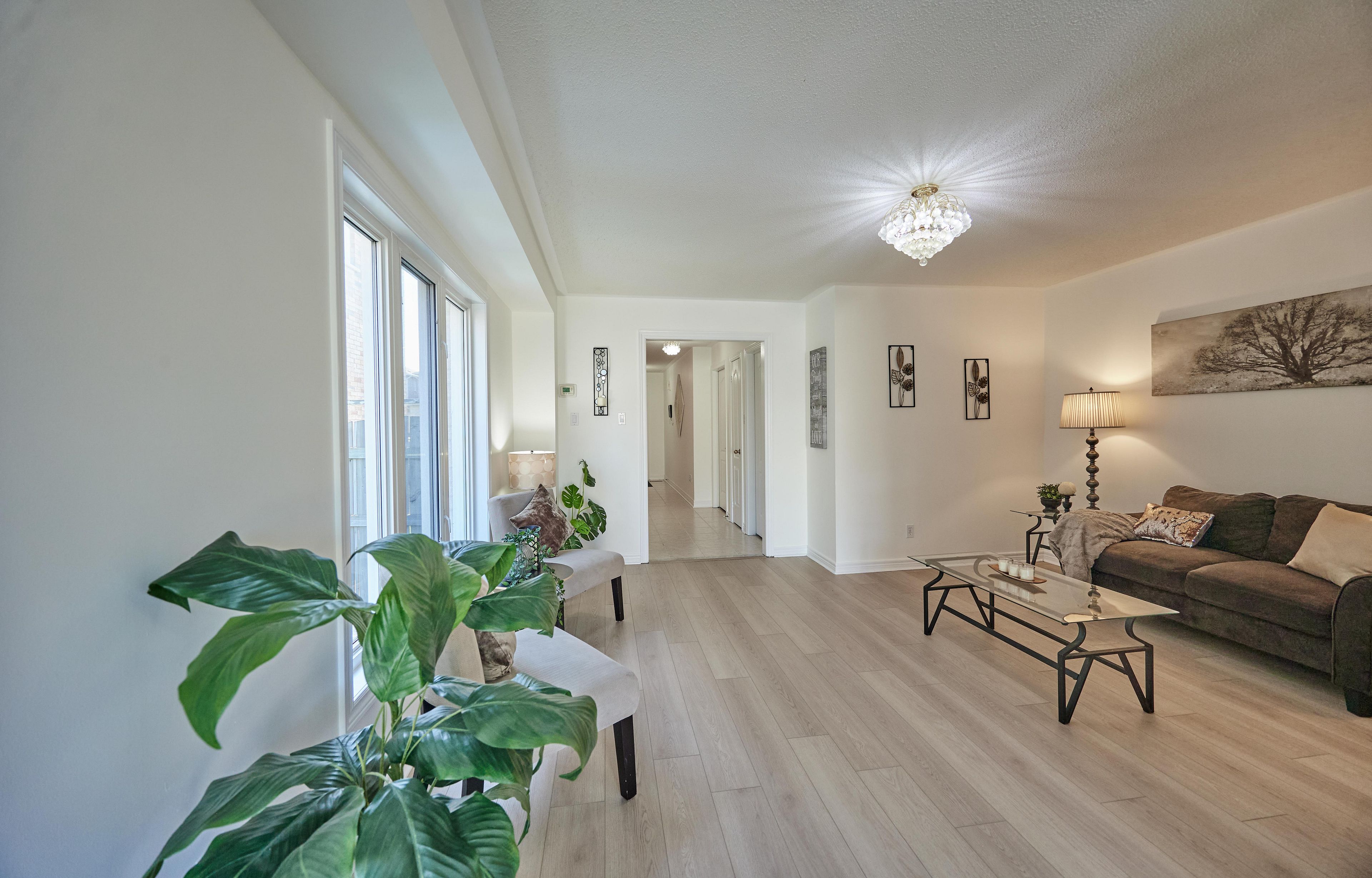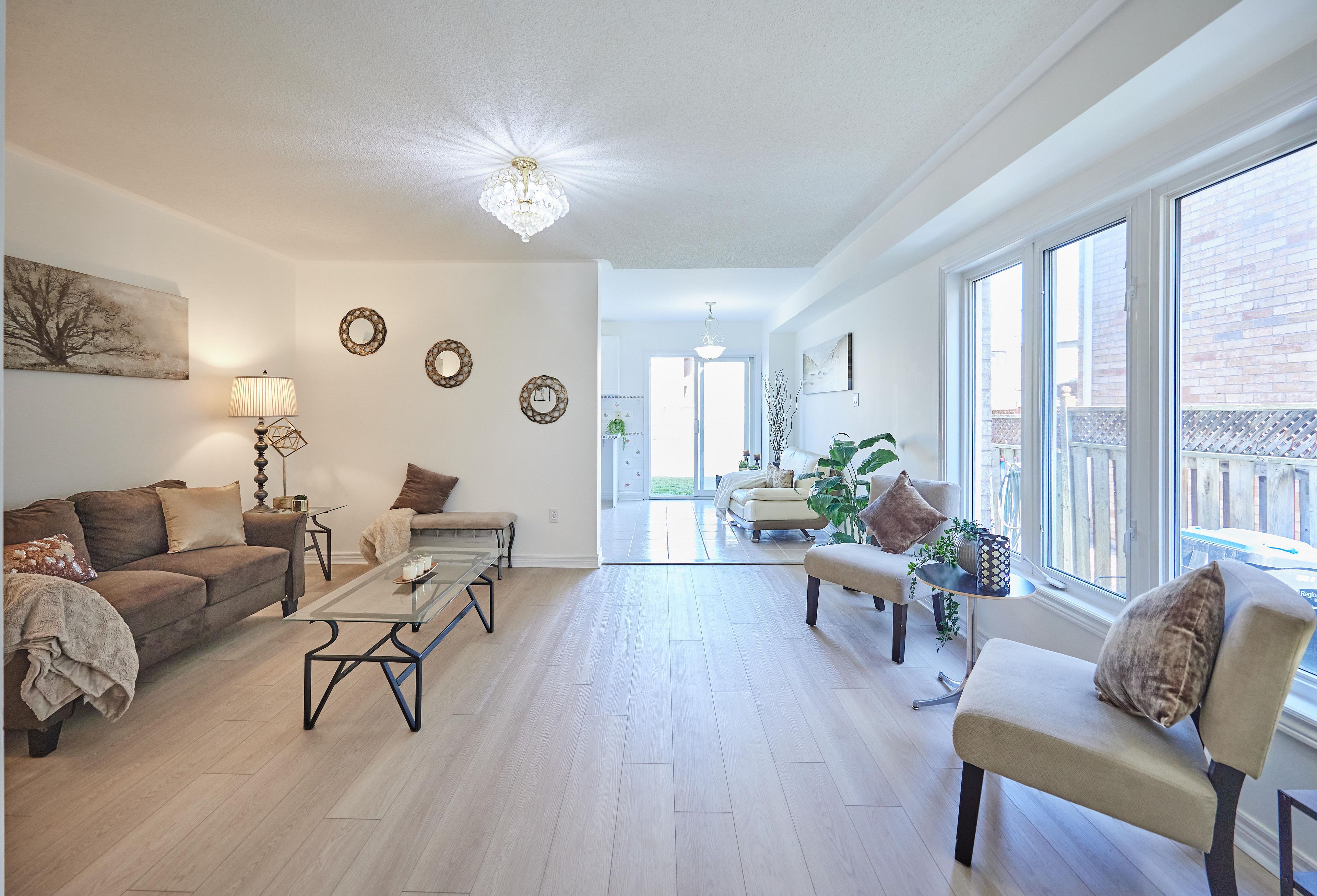 Absolutely amazing 3-bedroom, 3-washroom semi-detached home, perfect for first-time home buyers or investors. Features an open-concept layout with approximately 1,760 sqft. Of living space. Spacious bedrooms with hardwood flooring throughout. Freshly painted and well-maintained property. Step outside to a private, fully fenced backyard with a walkout to a stylish interlocking patio-ideal for relaxing or hosting guests. Situated in a friendly, family-oriented neighbourhood with top-rated schools nearby. Conveniently located just minutes from highways 407 and 401, offering easy commuting. Close to all amenities including shopping, parks, transit, and more. [ continued legal description ] s/t ease in favour of pt lot 4, 43m1433, des pts 13 & 14, 43r25503 onto pt lot 4, des pt 15, 43r25503, as in pr124117.