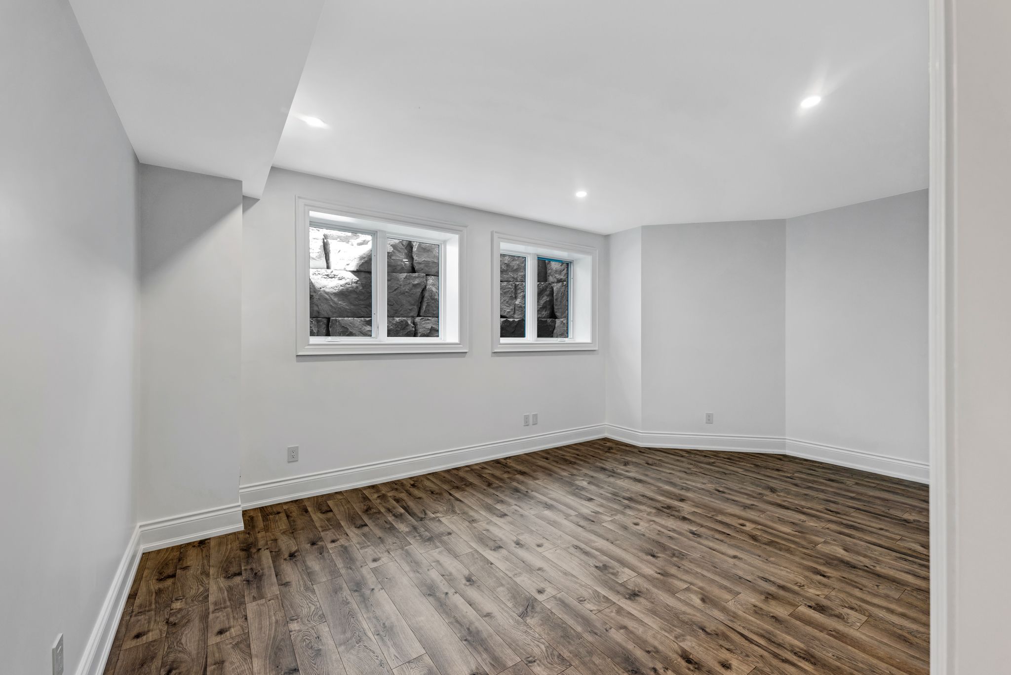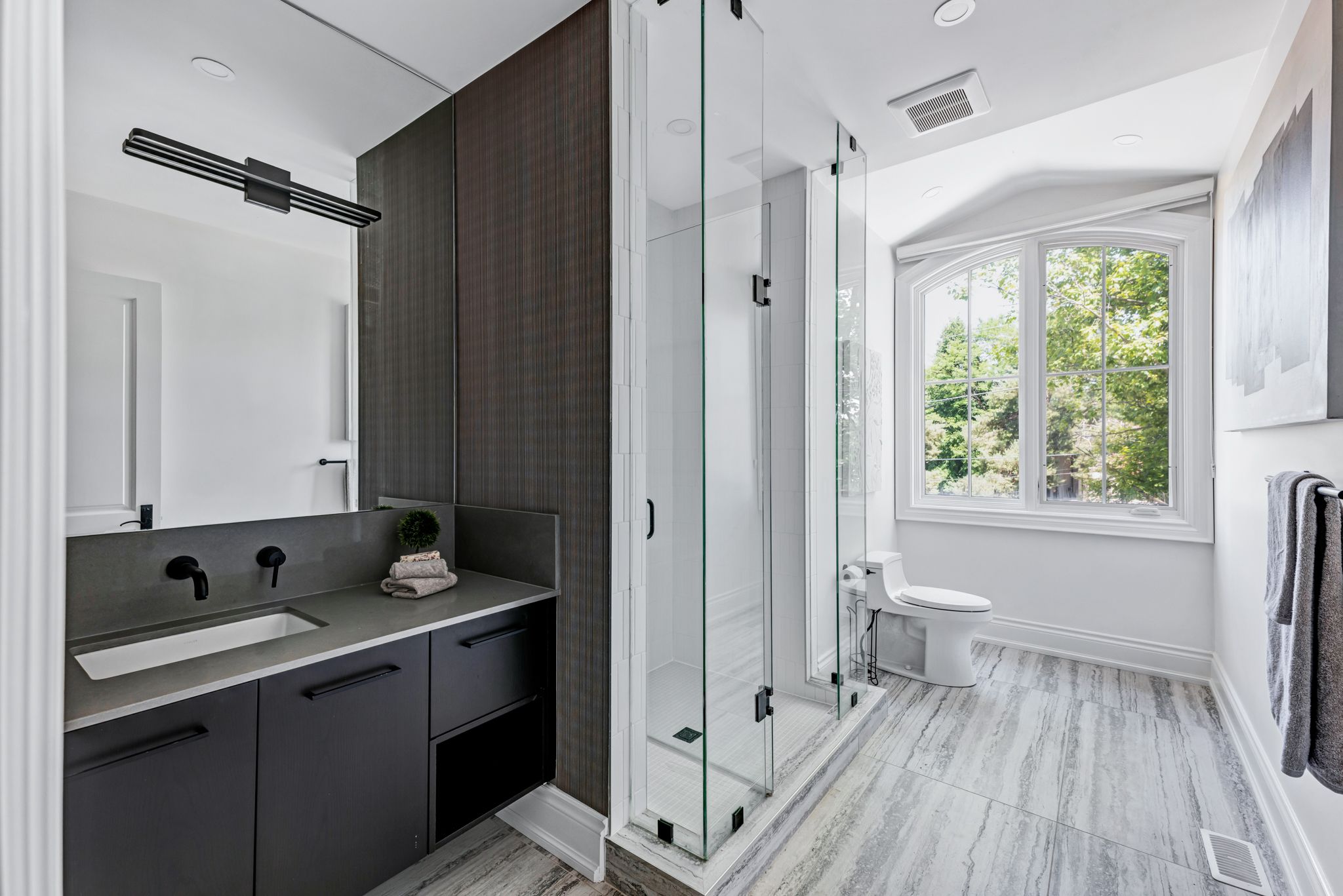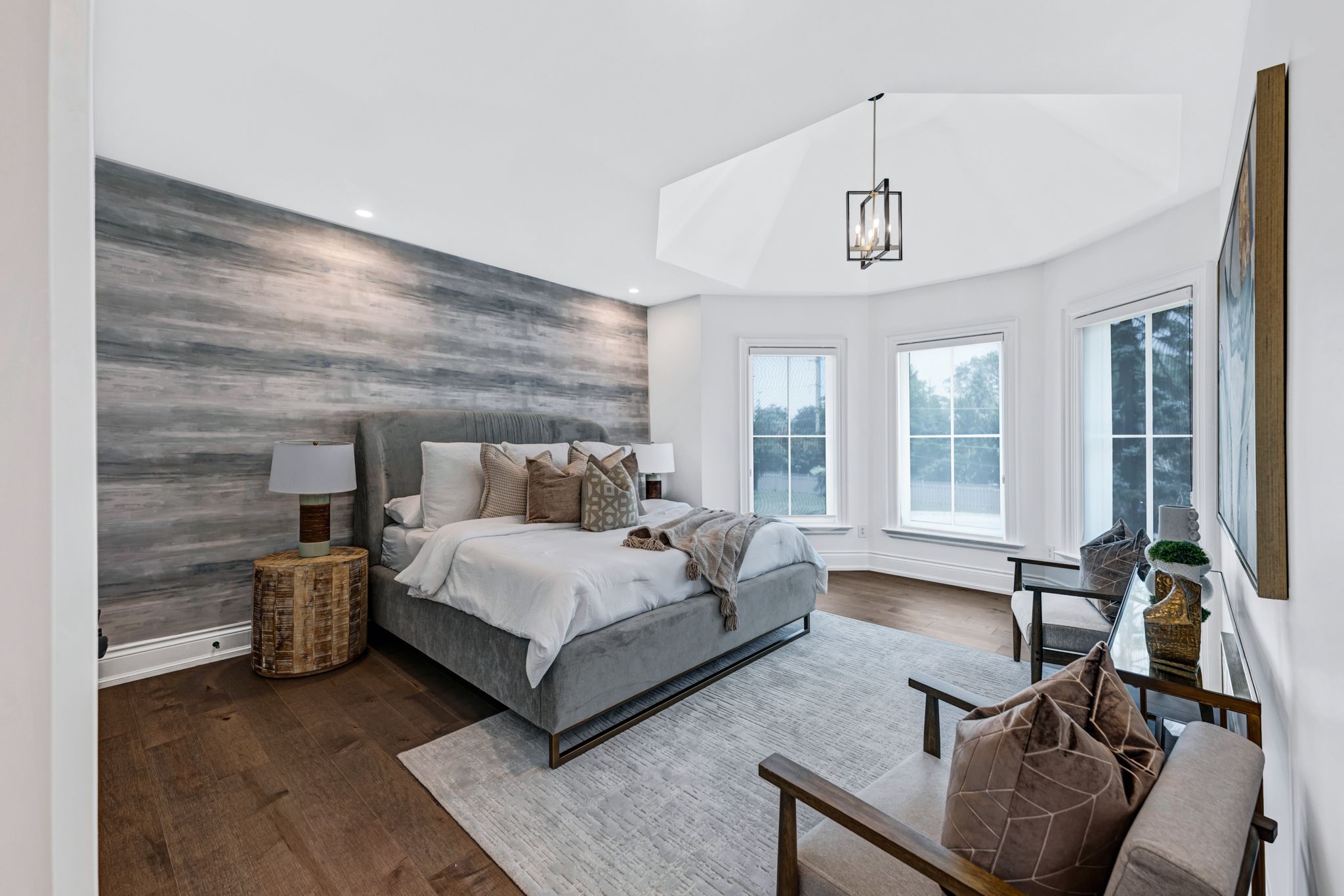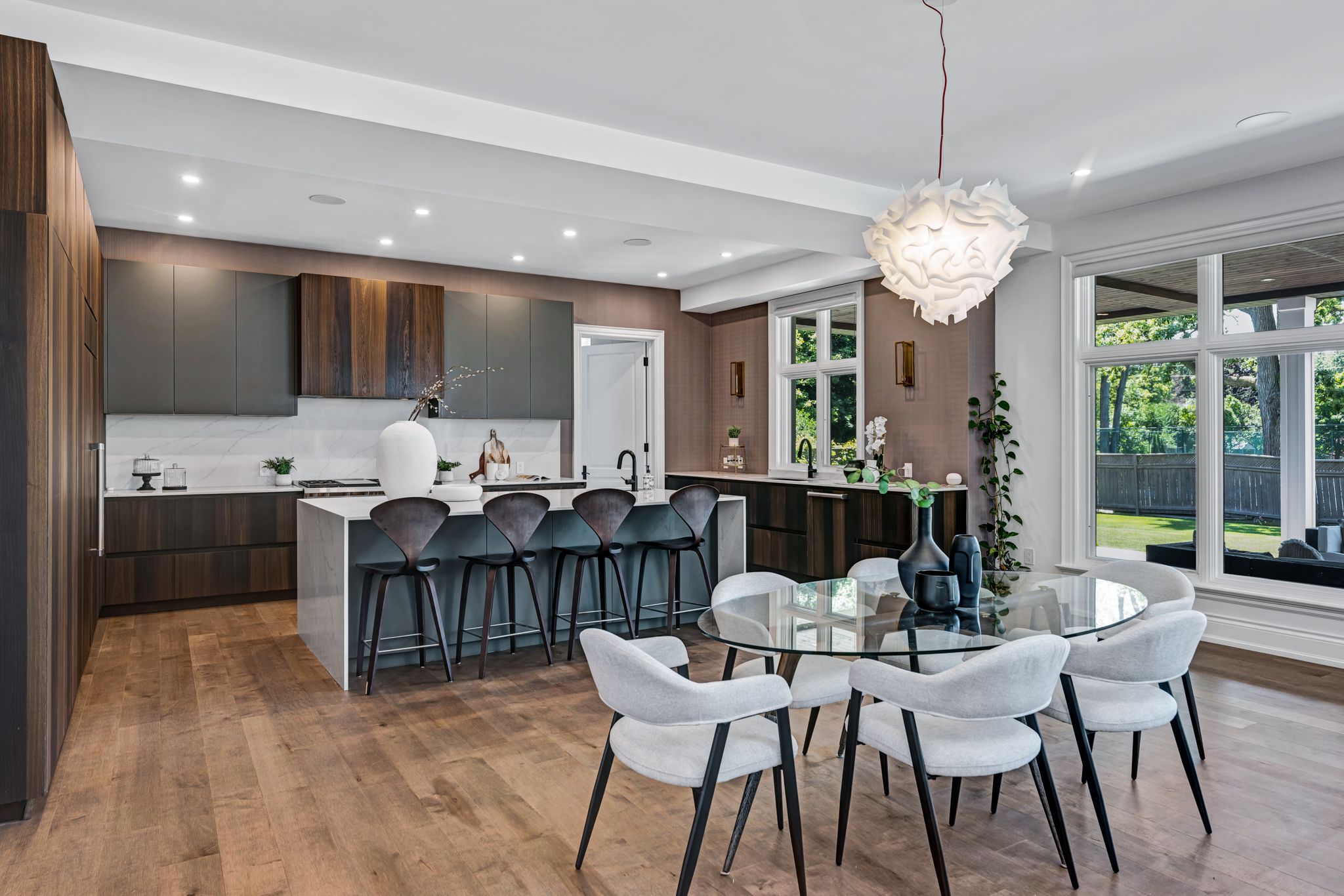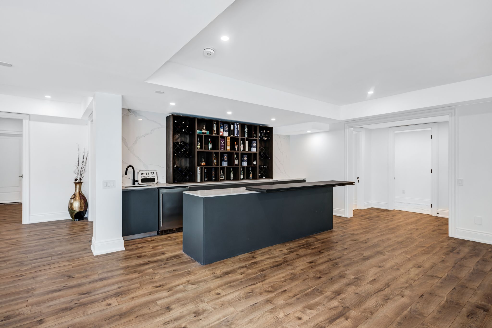 Set on a rare 172 ft wide pie-shaped lot, this magnificent custom-built french transitional château estate offers an extraordinary sense of space, privacy, and presence, expanding into a breathtaking backyard setting seldom found. A striking limestone facade, steep rooflines, and refined architectural detailing create a timeless, estate-like impression, surrounded by mature trees and landscaped grounds that enhance both privacy and curb appeal. Inside, the home is defined by grand scale and thoughtful design, beginning with a dramatic two-storey foyer and continuing into a breathtaking great room with soaring 24 ft ceilings and expansive windows that flood the space with natural light. At the heart of the home, the designer muti kitchen is crafted for both performance and style, featuring sleek european-inspired cabinetry, quartz surfaces, and a full-height backsplash. An oversized waterfall island anchors the space with generous seating and prep area, complemented by integrated panelled appliances, a dedicated coffee and bar station, and a walk-in pantry, all seamlessly connected to the surrounding living and dining areas for effortless entertaining. The upper level offers a luxurious primary retreat with vaulted ceilings, a custom walk-in closet, and a spa-inspired ensuite, alongside generously sized bedrooms, each complete with hardwood flooring, custom closets, and private ensuites. The lower level extends the home's lifestyle offering with a dedicated home theatre, custom bar and lounge, private bedroom, and a fully equipped fitness room, delivering a complete luxury living experience designed for comfort, flexibility, and elevated everyday living.