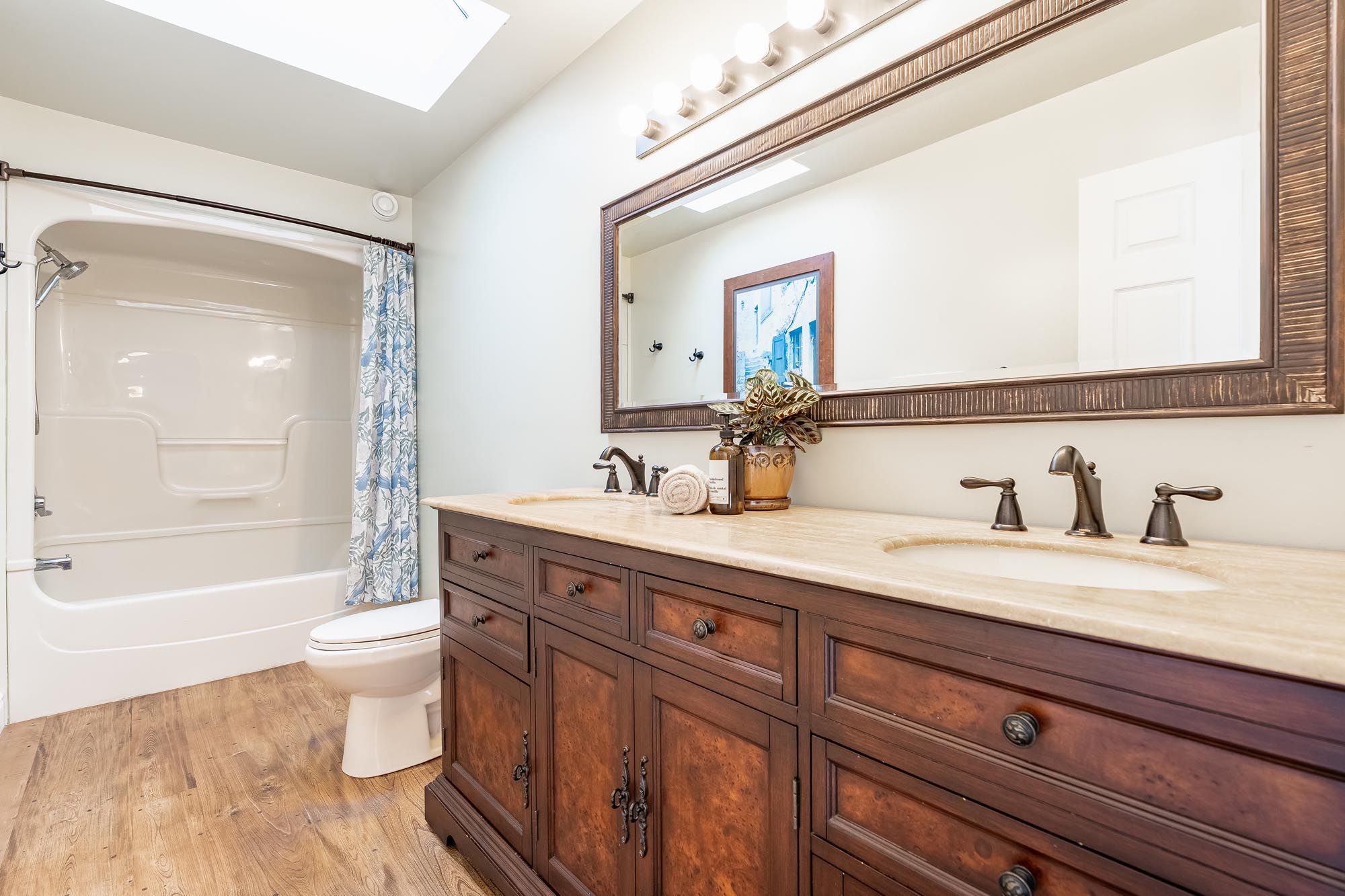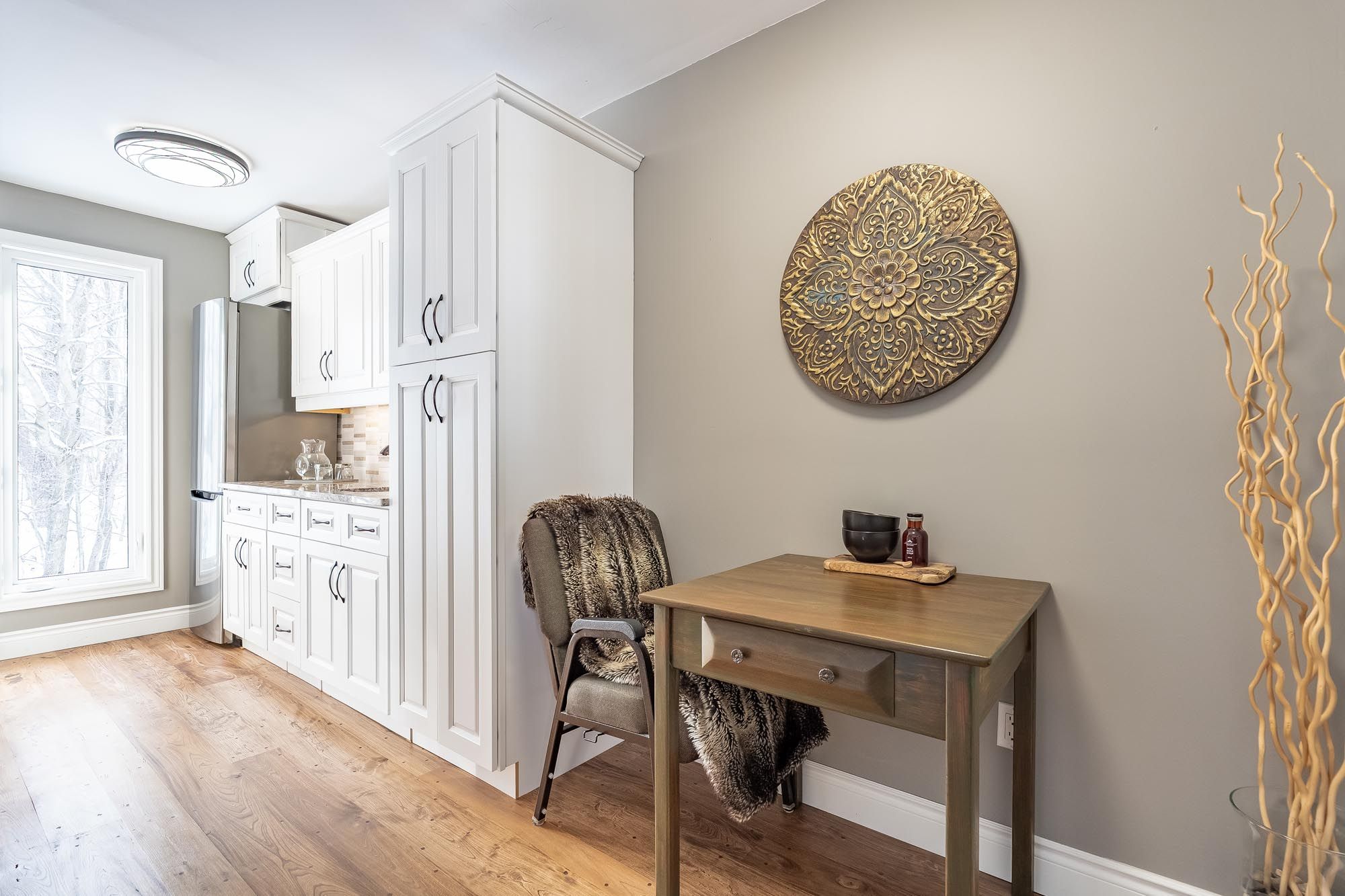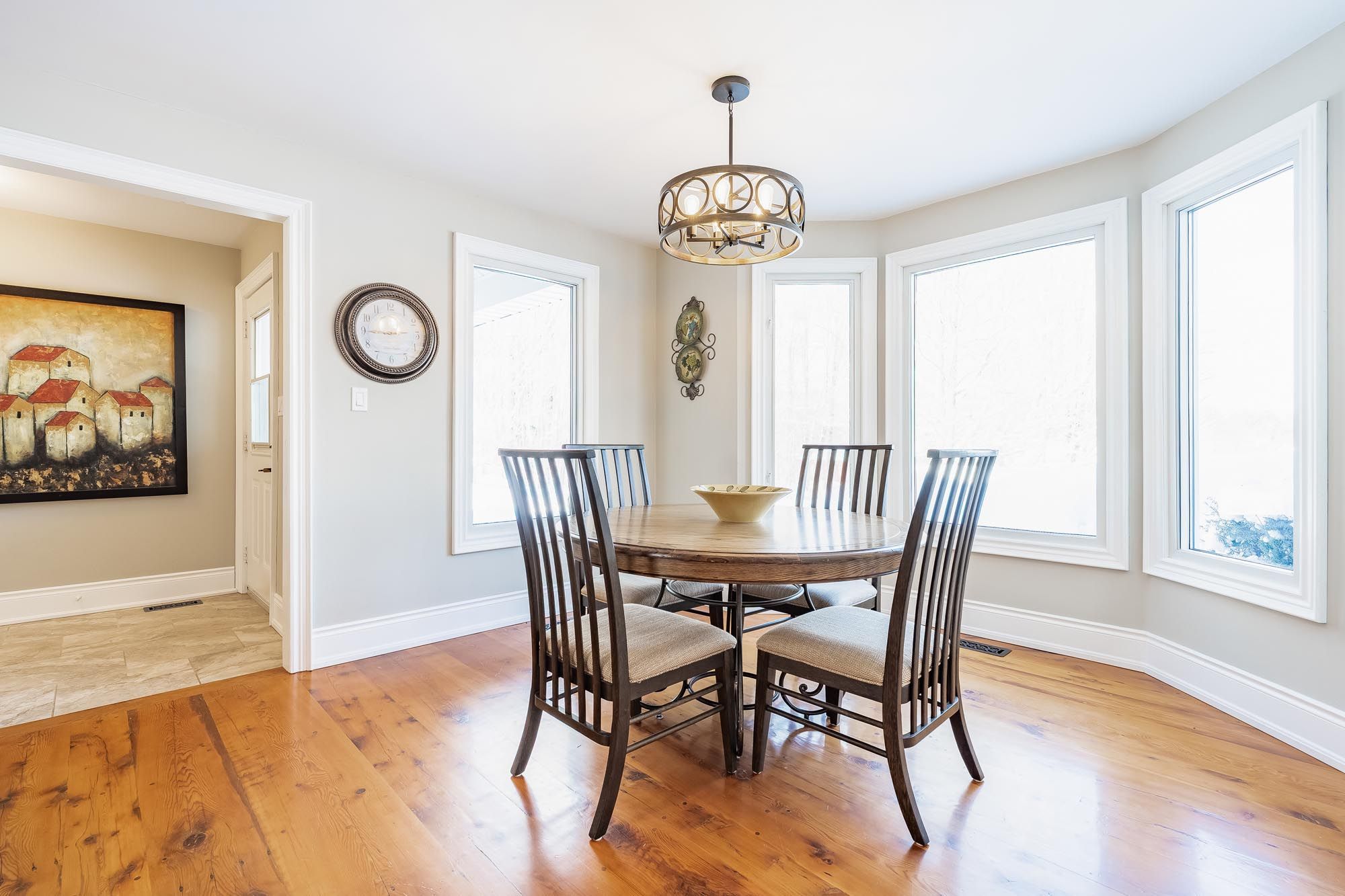 • Antique hardwood floors and a bright kitchen with granite countertops.