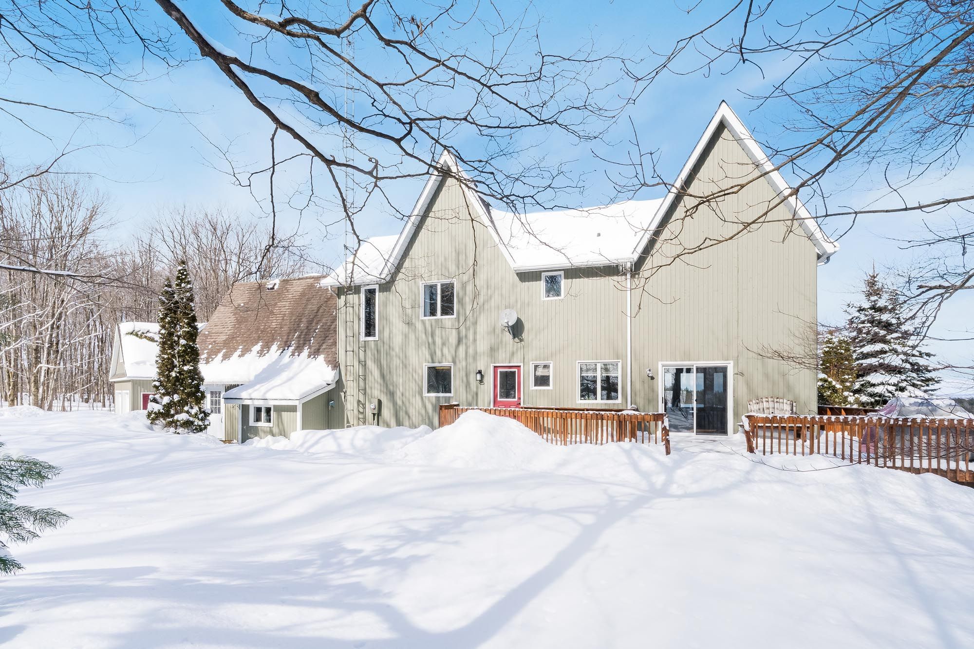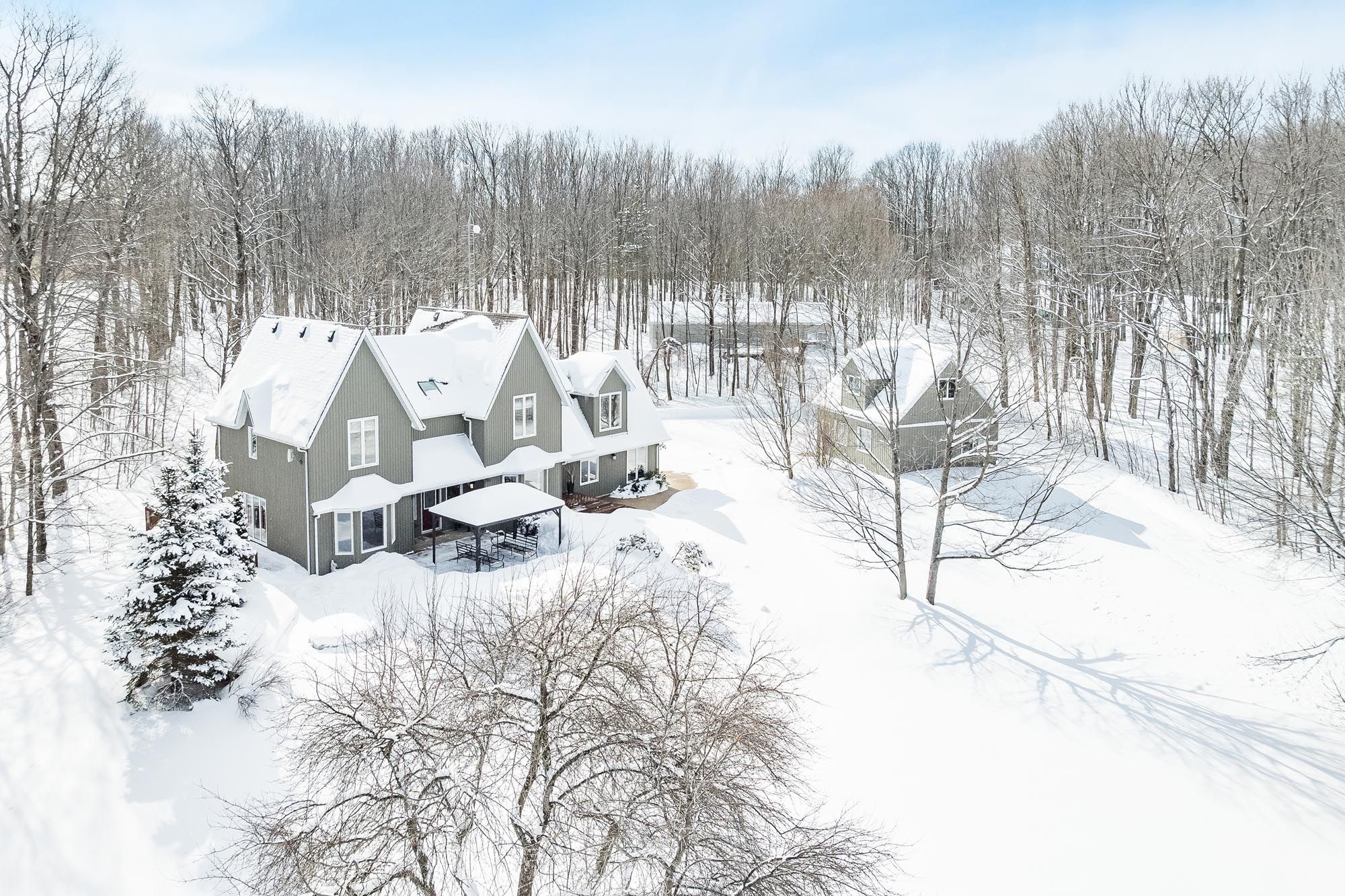 Top 5 reasons you will love this home: 1) set on over 18 rolling acres just outside flesherton, this picturesque estate unfolds with a winding driveway through mature trees, opening to panoramic views across beaver valley toward old baldy and kimberley, offering privacy and country living 2) spacious 3,815 square feet designed for multi-generational living, offering four bedrooms and five bathrooms, ideal for large families, extended family living, or those who love hosting, with a thoughtful layout providing open gathering areas and private retreats 3) character, warmth, and timeless finishes define this residence, where antique hardwood floors crafted from reclaimed barn wood flow throughout, while the main level unfolds with a spacious kitchen with granite countertops, pantry, and abundant wood cabinetry, a bright dining area with large windows, an expansive living room with walkout to back deck, a private office or den, and a convenient powder room 4) flexible living spaces with a separate apartment enhance the home's versatility, with an upper level primary suite offering panoramic views, a walk-in closet, and 5-piece ensuite with skylight, while the opposite wing features potential private quarters with a bedroom, semi-ensuite bathroom, living room, and kitchenette, perfect for in-laws, plus a finished basement with an extra bedroom and full bathroom, and a fully self-contained apartment with separate entrance to the main level living space, with spiral staircase leading to the bedroom and bathroom 5) exceptional outbuildings and a four-season lifestyle set this property apart, featuring a detached double car garage with unfinished loft along with three impressive outbuildings, while front and back decks capture sweeping views and provide the perfect place to unwind, while remaining just a short drive to lake eugenia, waterfalls, hiking trails, ski hills, collingwood, and blue mountain. 2,825 above grade sq. Ft. Plus a finished basement.