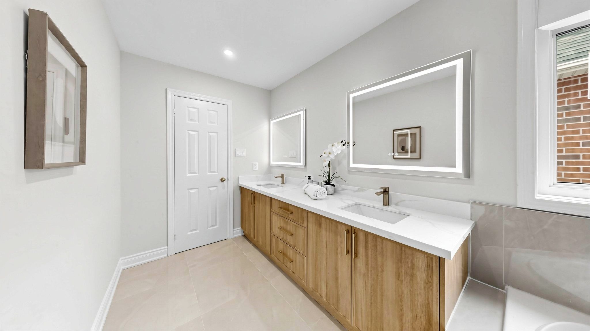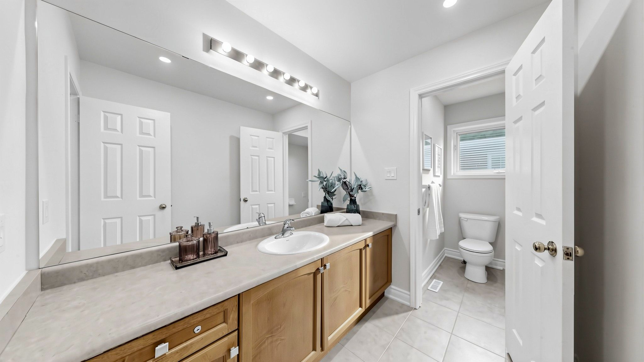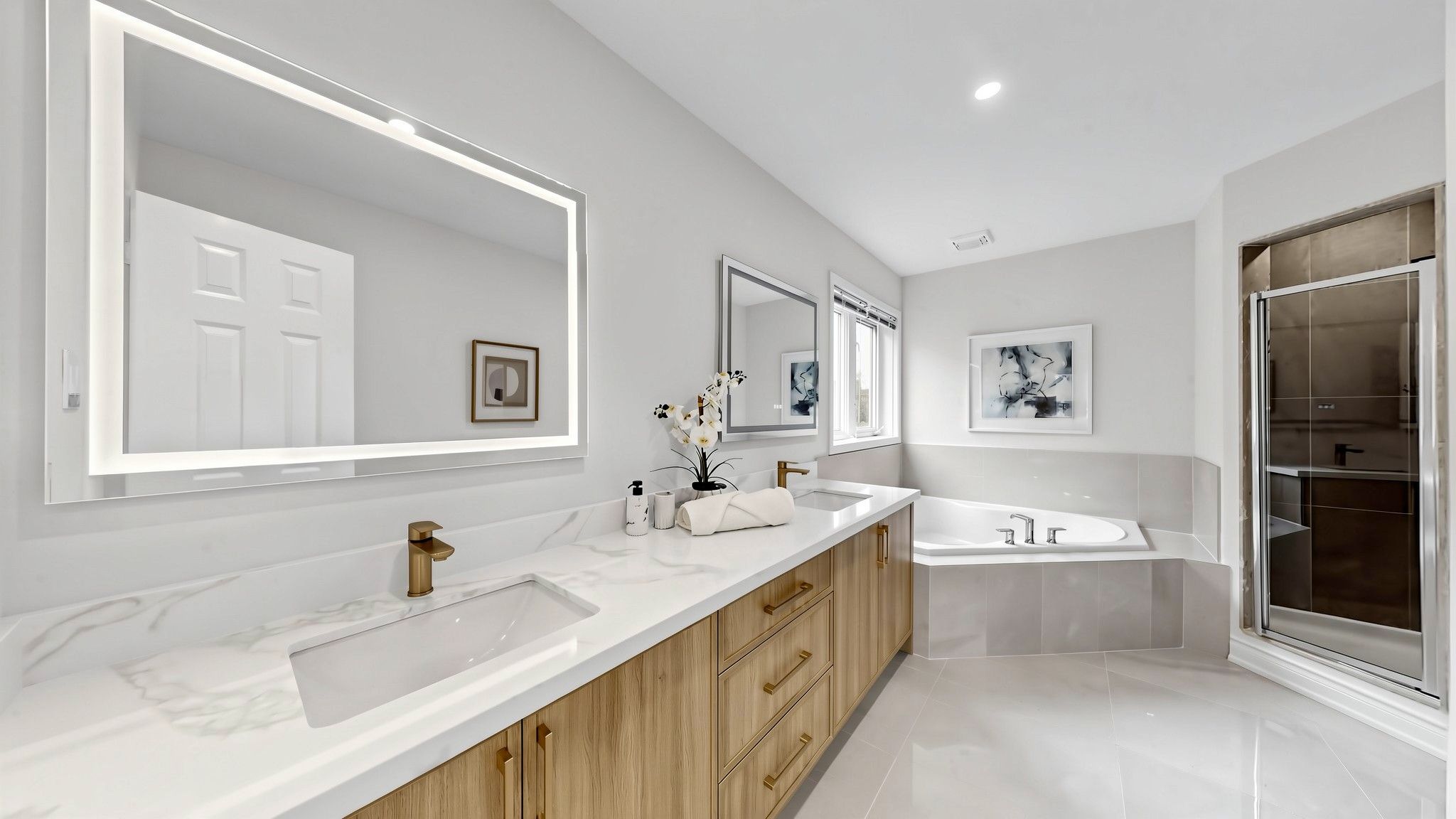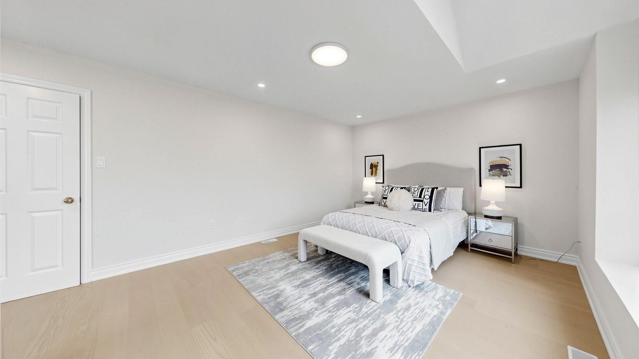 • Upgraded primary bedroom includes a walk-in closet and modern vanity.