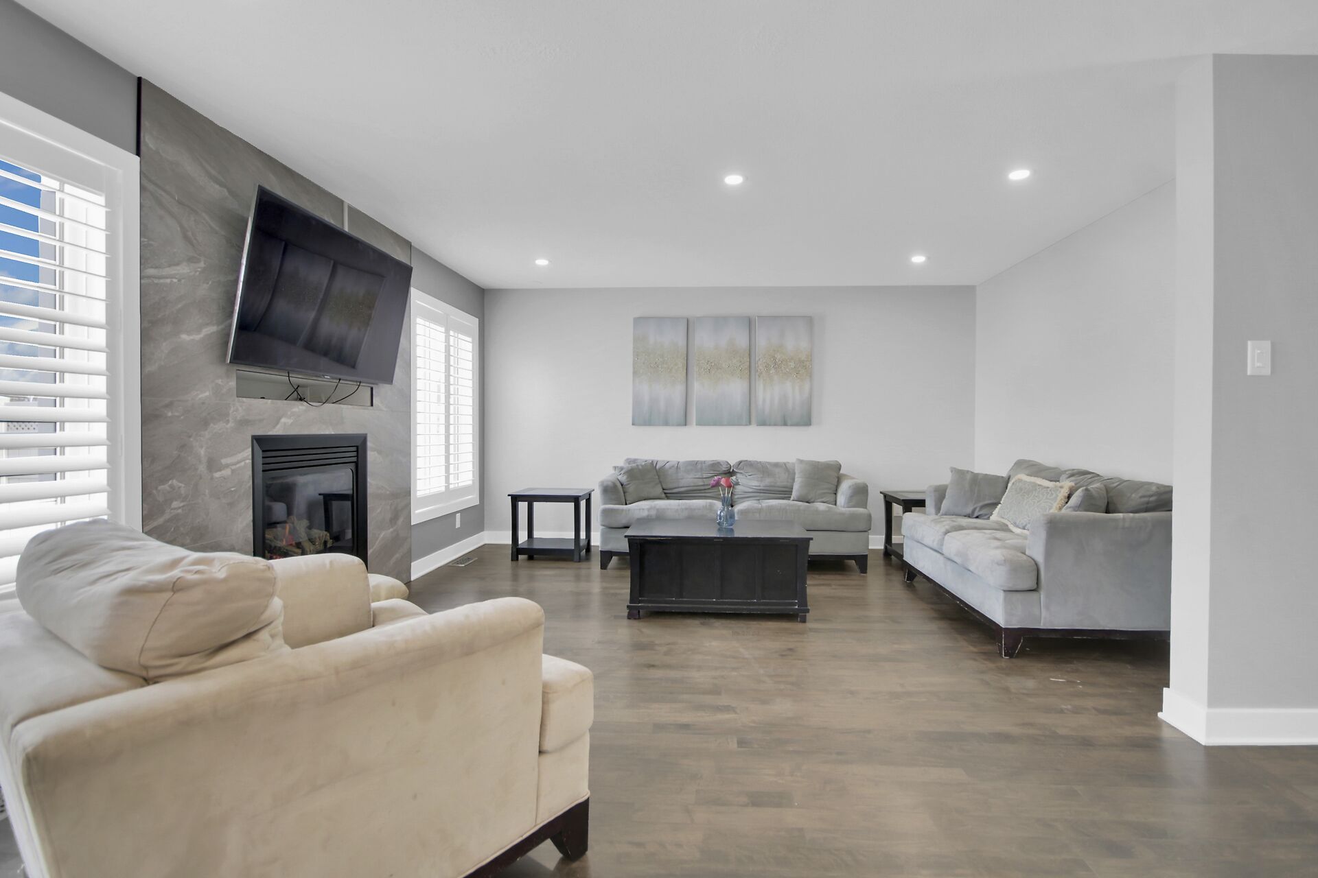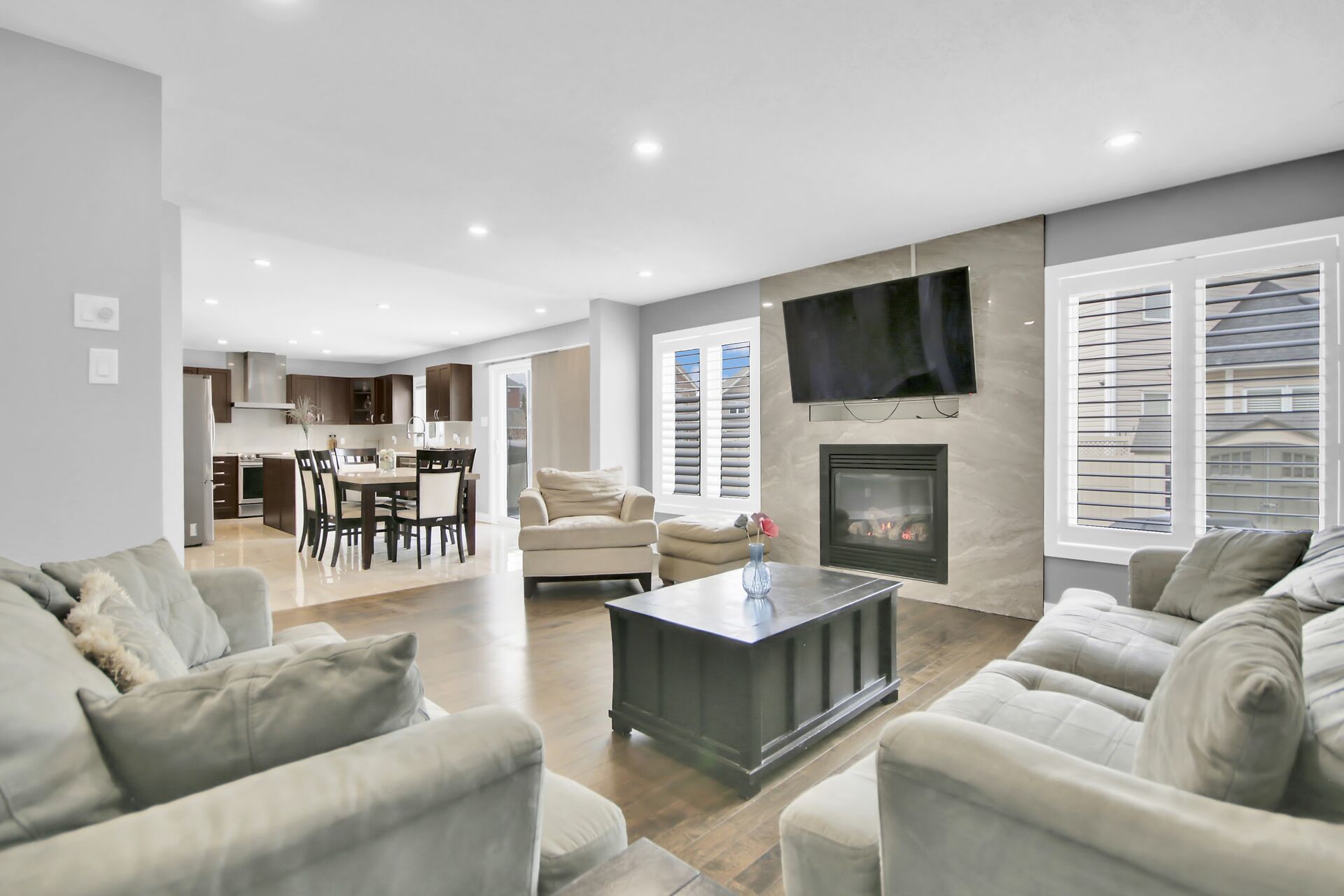 • Generous family room with a cozy gas fireplace for gatherings.
