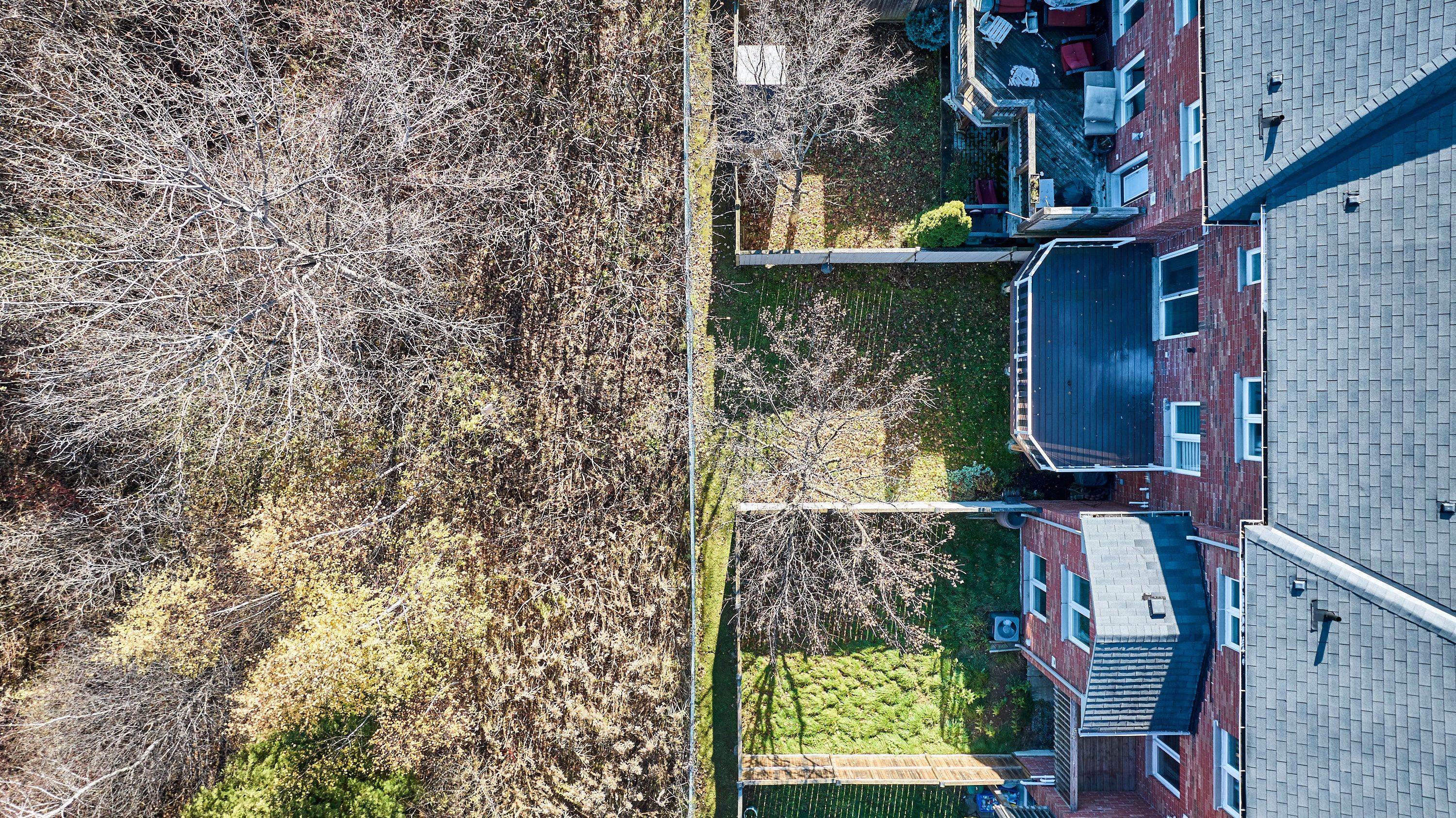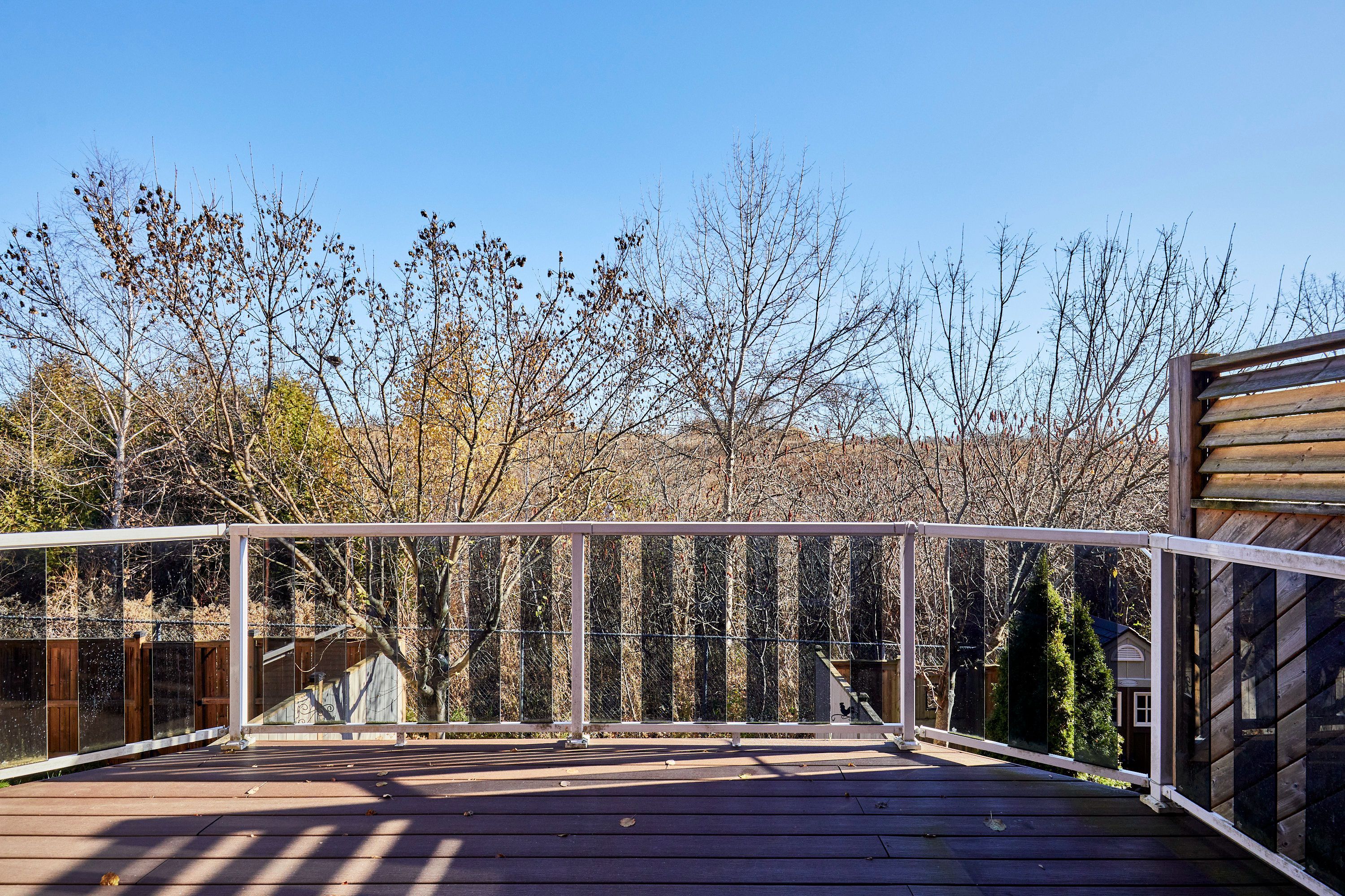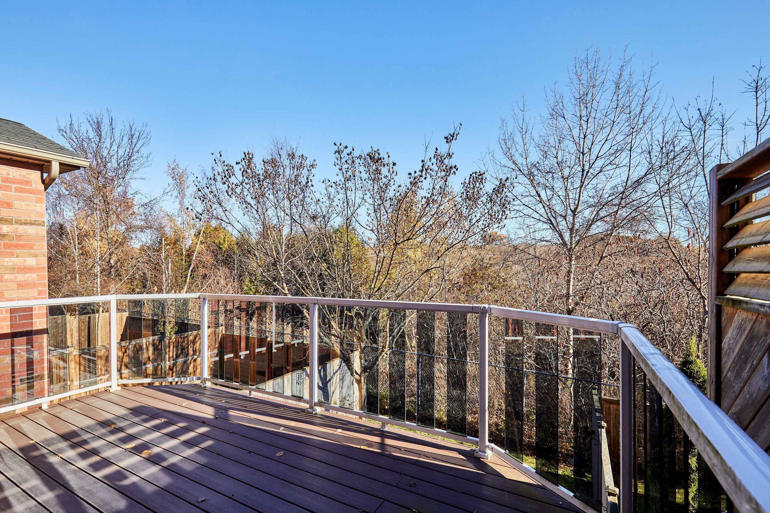 • Composite deck with glass railings overlooking the ravine for relaxing outdoors.