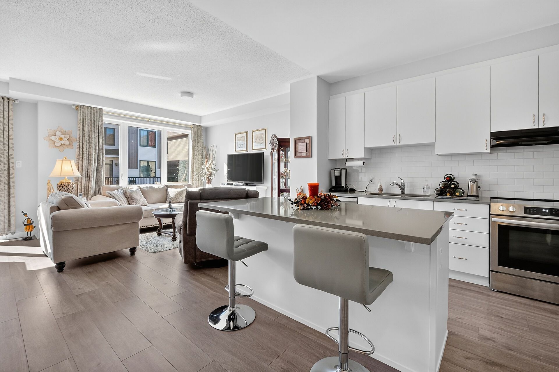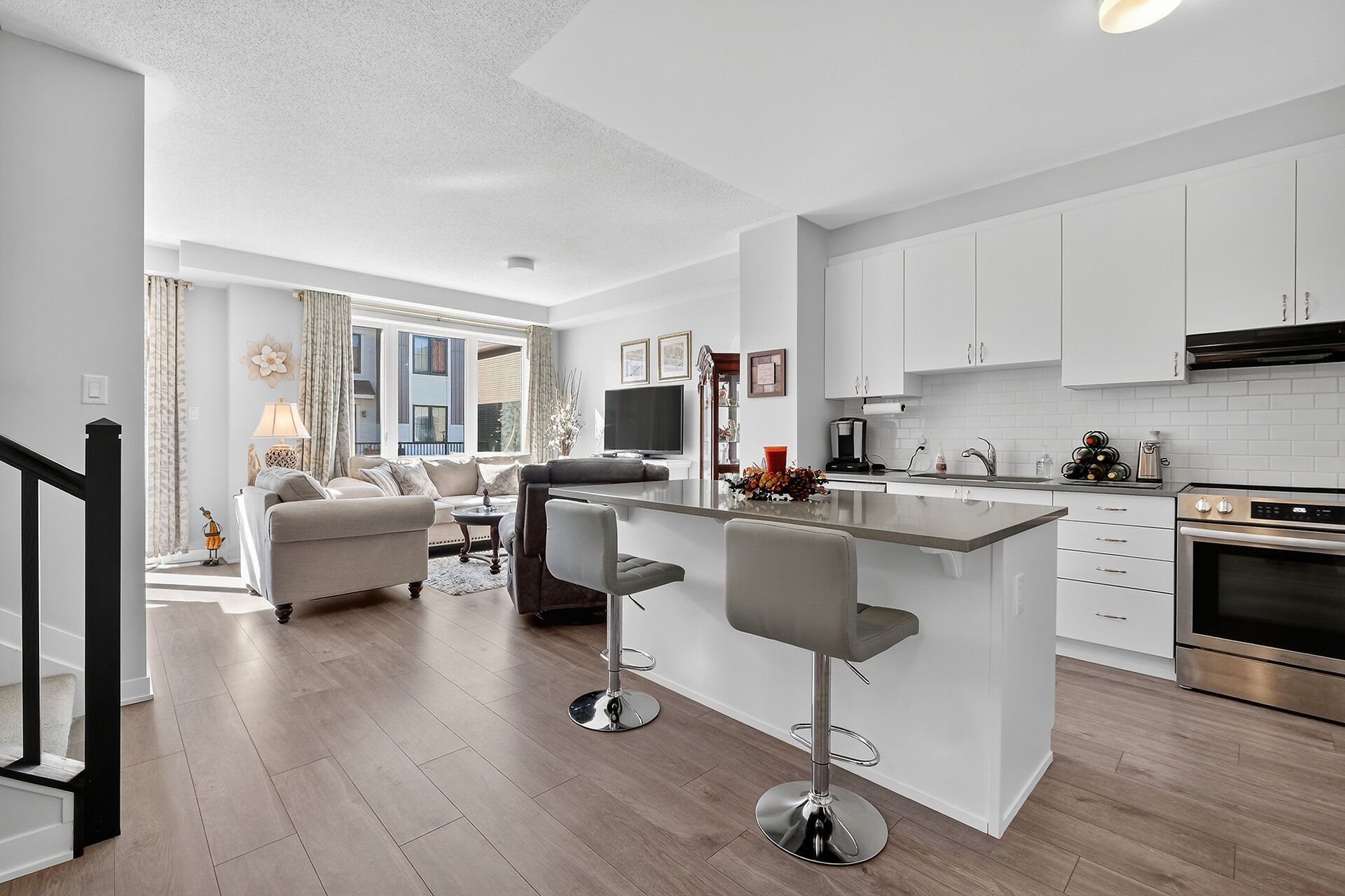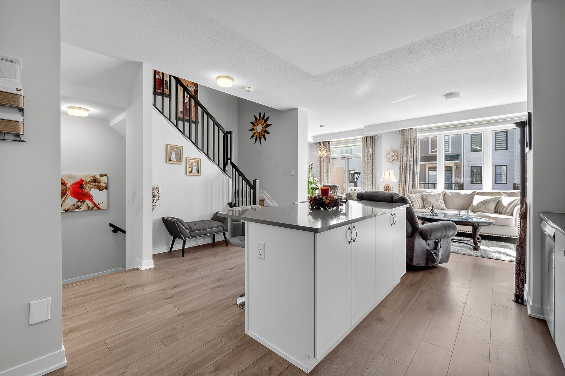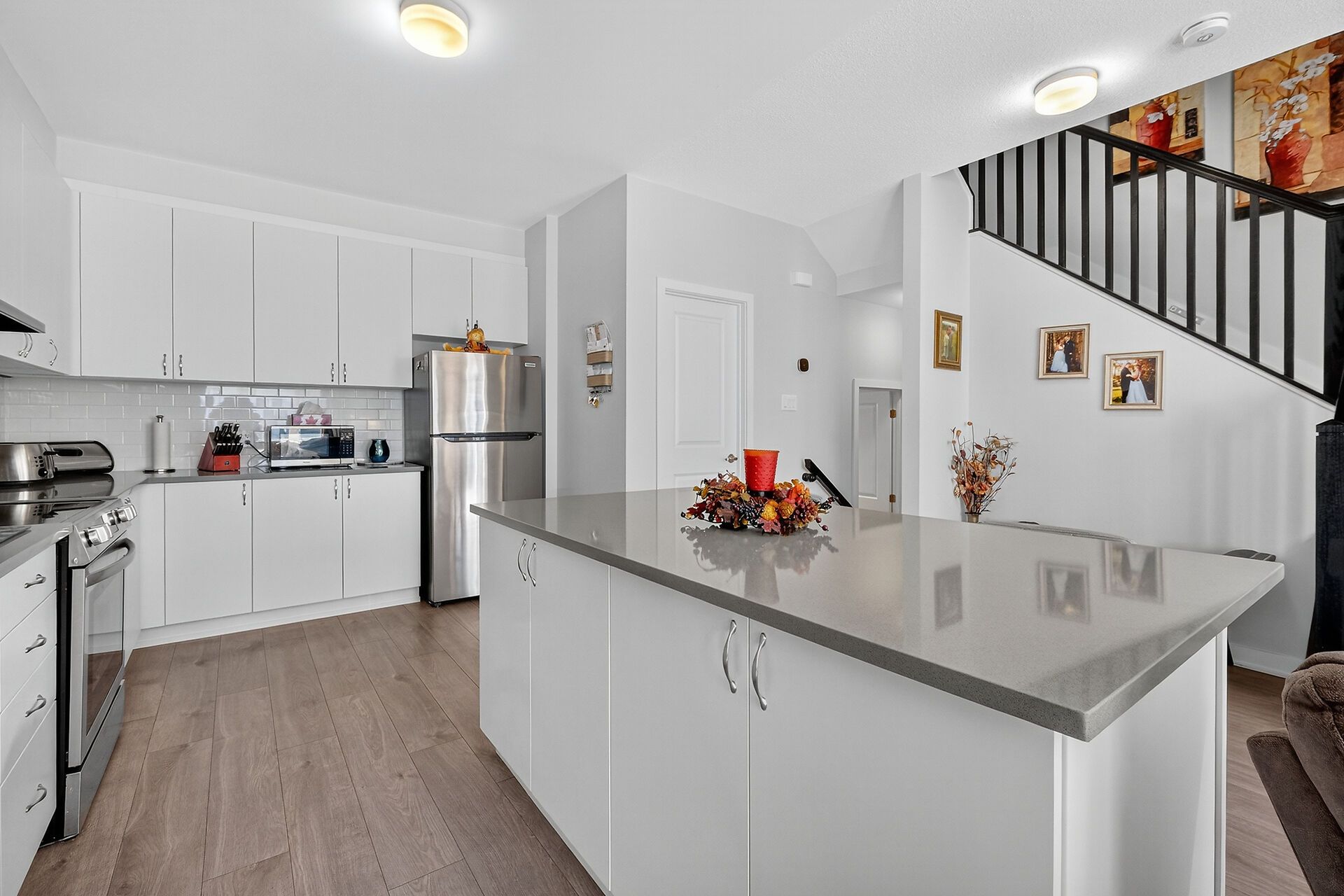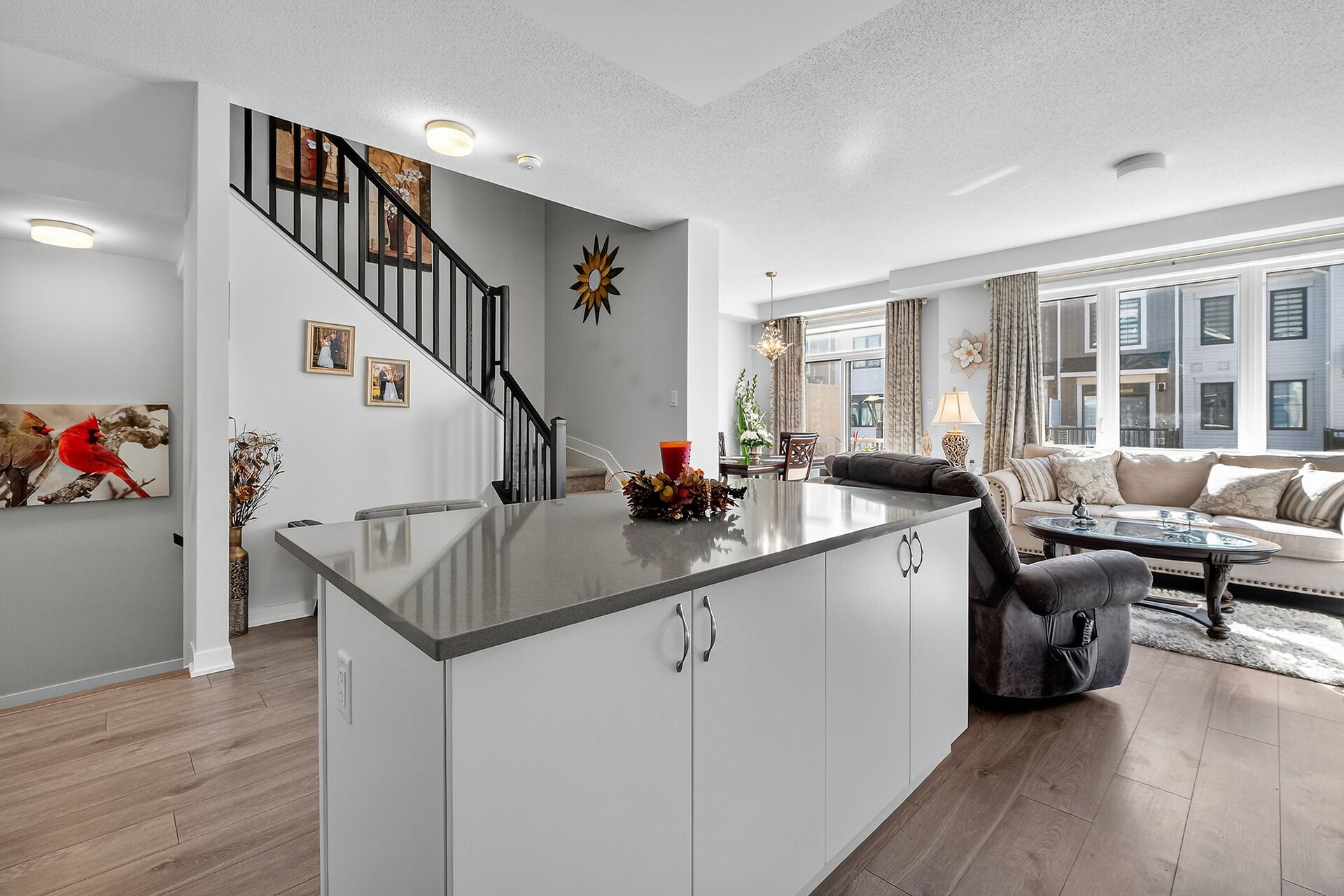 • Open concept kitchen with a large island and walk-in pantry for plenty of storage.