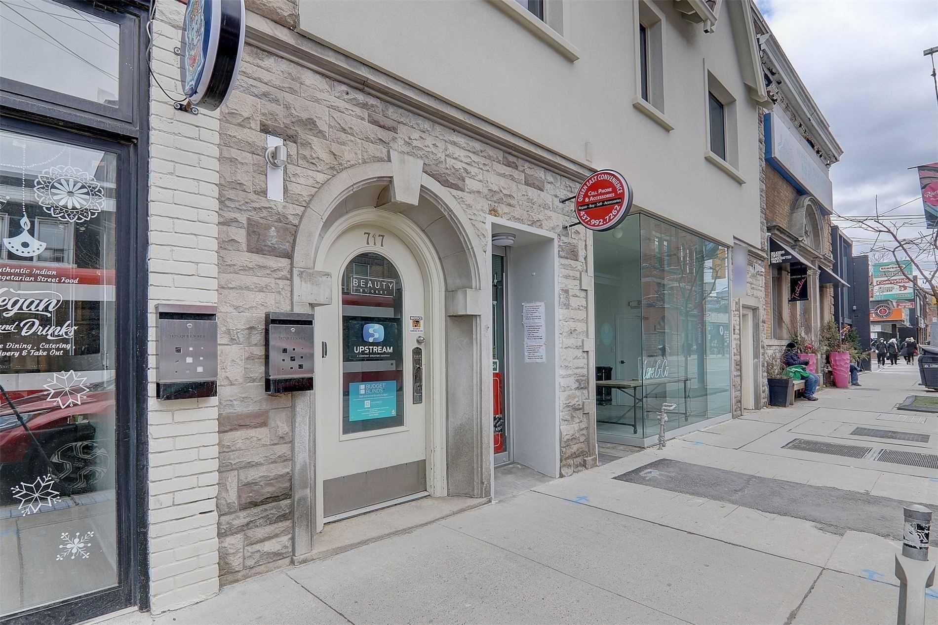 For lease - unit 104a1, 715 queen street east, torontomain-floor commercial unit of approximately 400 sq. Ft. Featuring an open-concept layout with 10 ft. Ceilings. Located toward the rear of the building with convenient access to a drop-off and pick-up area, ideal for operational efficiency. Unit features:open layout with 10 ft. Ceilingslarge window providing natural lightin-unit sinkrear access for deliveries and day-to-day use building features:shared kitchenette hvac system with ultraviolet air purification intercom entry and security camera system professionally maintained common areas fully renovated approximately 2 years ago located in toronto's leslieville neighbourhood, surrounded by established shops, cafés, and services, with convenient ttc access. Suitable for a variety of commercial uses including personal care, medical-related services, office, or studio uses, subject to zoning and landlord approval