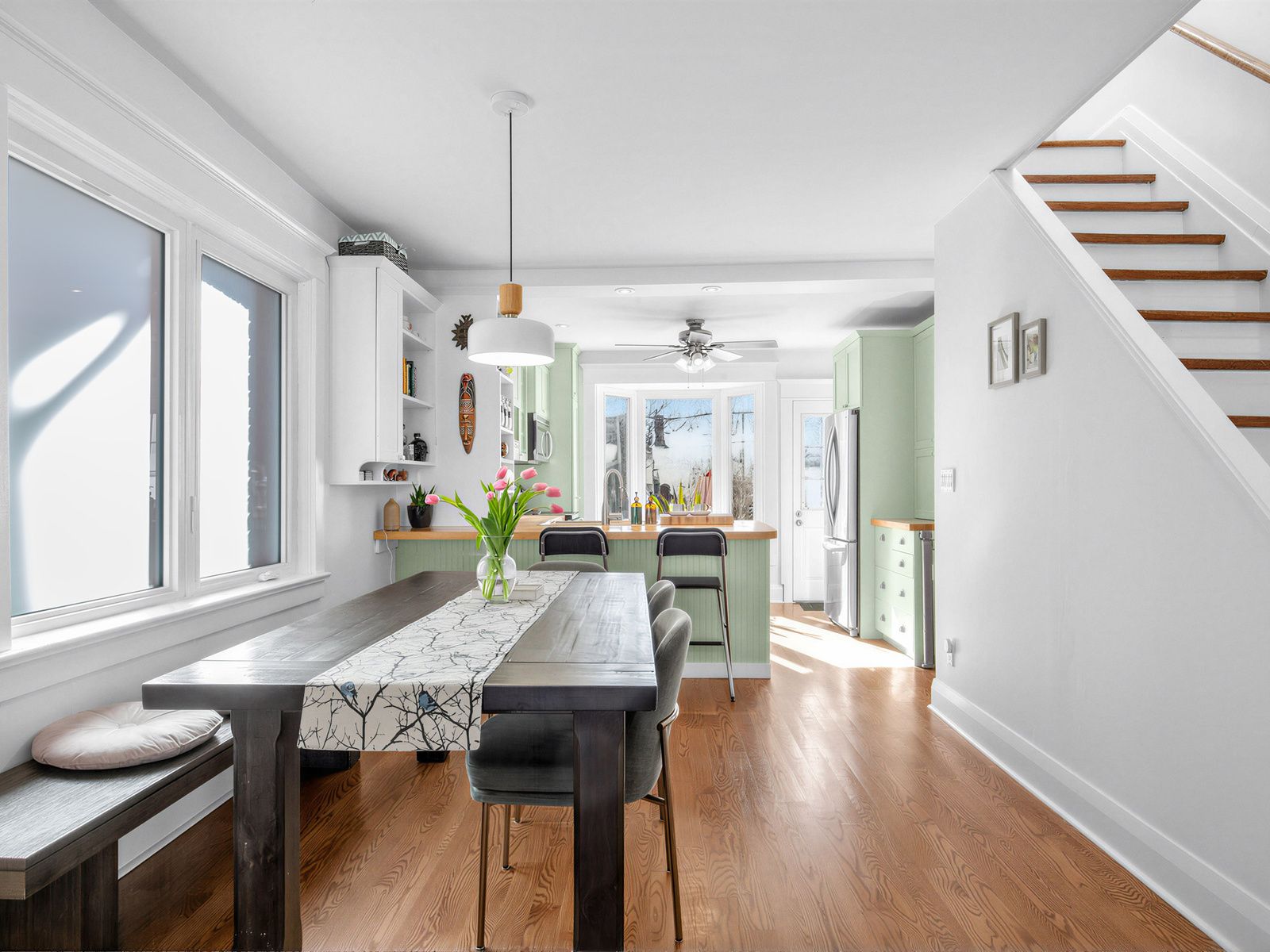This is the one you've been waiting for. Move-in ready. Perfectly situated in a welcoming, family-friendly neighbourhood and within walking distance to the subway (7 minutes), schools, hospital, recreation, dining, and everyday conveniences - this home truly checks every box. Step inside to a bright, open-concept main floor featuring original stained glass windows, a charming country-style kitchen, and an inviting layout that's perfect for hosting family gatherings or cozy nights in. Natural light pours in throughout the day from a beautiful skylight above the staircase that fills the home with warmth and sunshine. Upstairs, you'll find three generously sized bedrooms, including one with a built-in murphy bed - a versatile space that easily transforms into a home office or guest room. The family bath delights with a classic clawfoot tub and rainfall shower. The lower level continues the open-concept feel, offering plenty of room for entertaining, a kids' play space, and additional work-from-home flexibility. A 3-piece bath and laundry room complete this functional and adaptable level. Step outside from the kitchen to your newly updated deck and patio, overlooking a beautifully refreshed backyard completed last year. With new private fencing and a large storage shed, this outdoor space is ready for summer bbqs and relaxed evenings under the stars. Thoughtful upgrades include: freshly-painted kitchen cabinets, windows and front door with electronic keypad, front siding , heat pump with ecobee thermostat, furnace humidifier, and a backyard renovation - all completed within the last year. The roof shingles replaced 2017 and flat portion 2020. Oh and did we mention? There's even a legal parking spot! Comfort, style, smart upgrades, and an unbeatable location all come together here. Come see why this home is truly semi supreme.