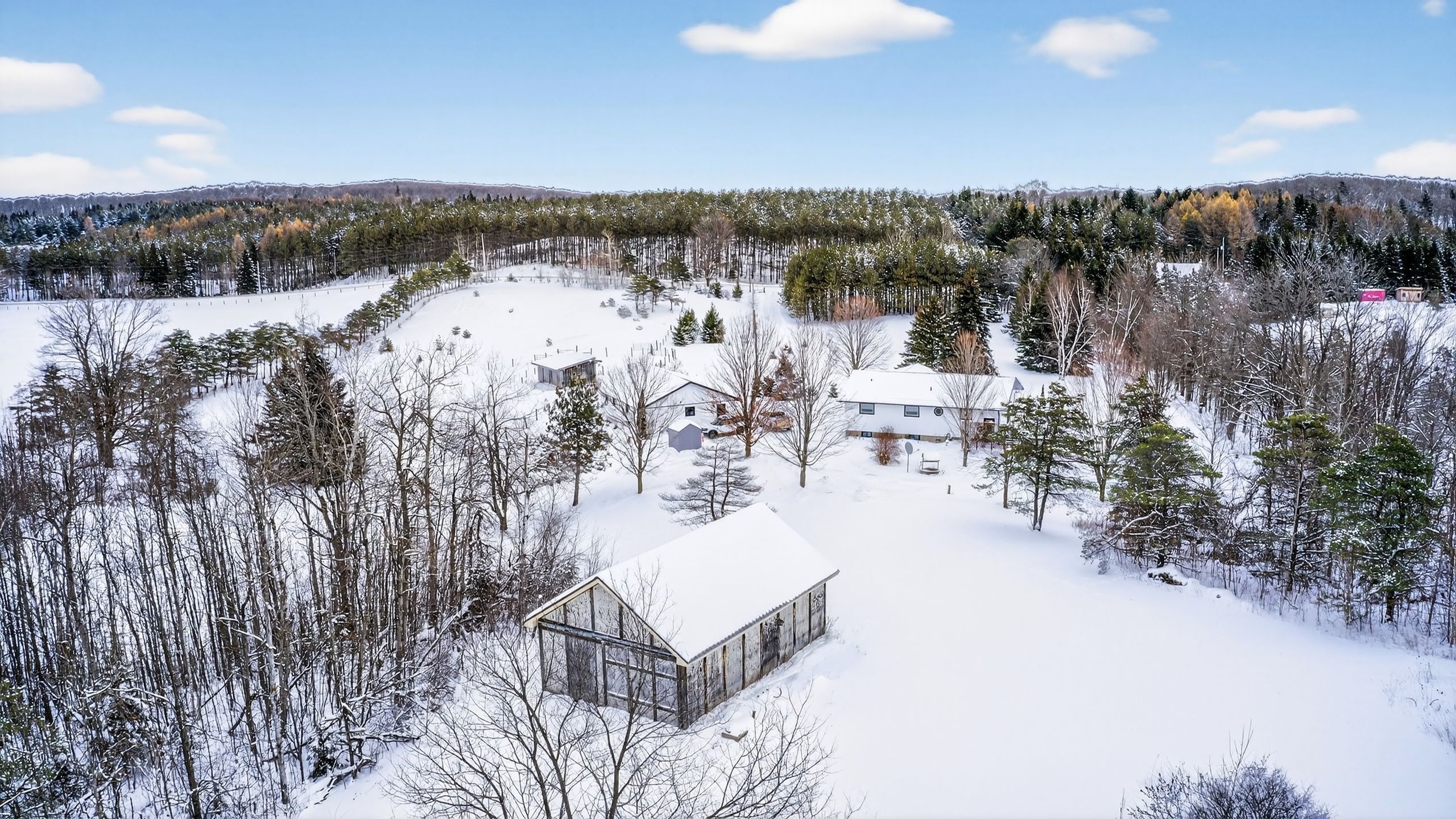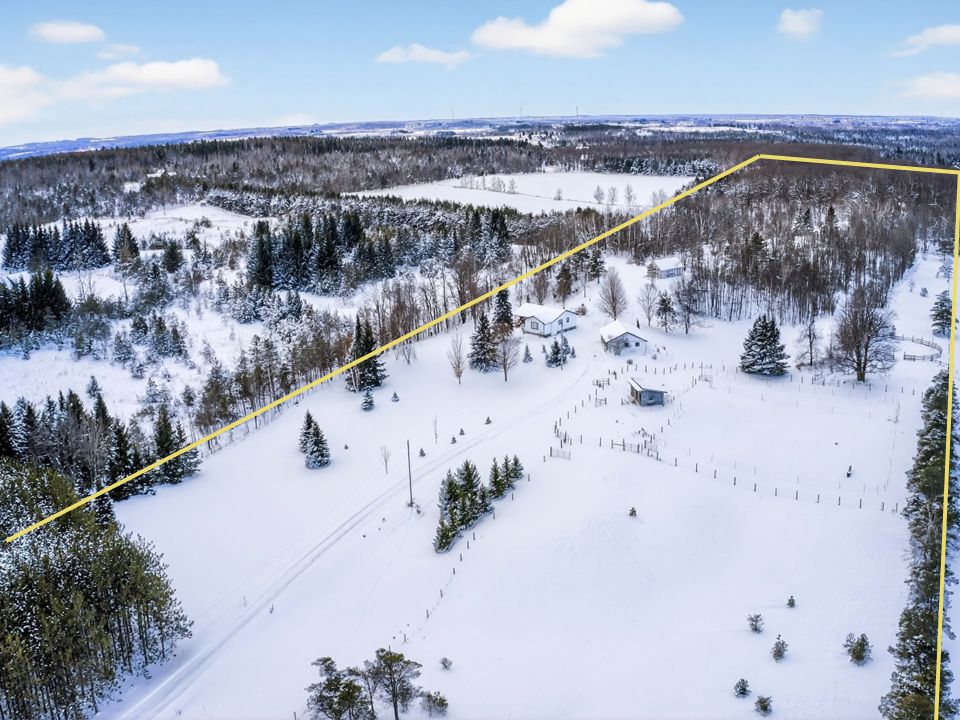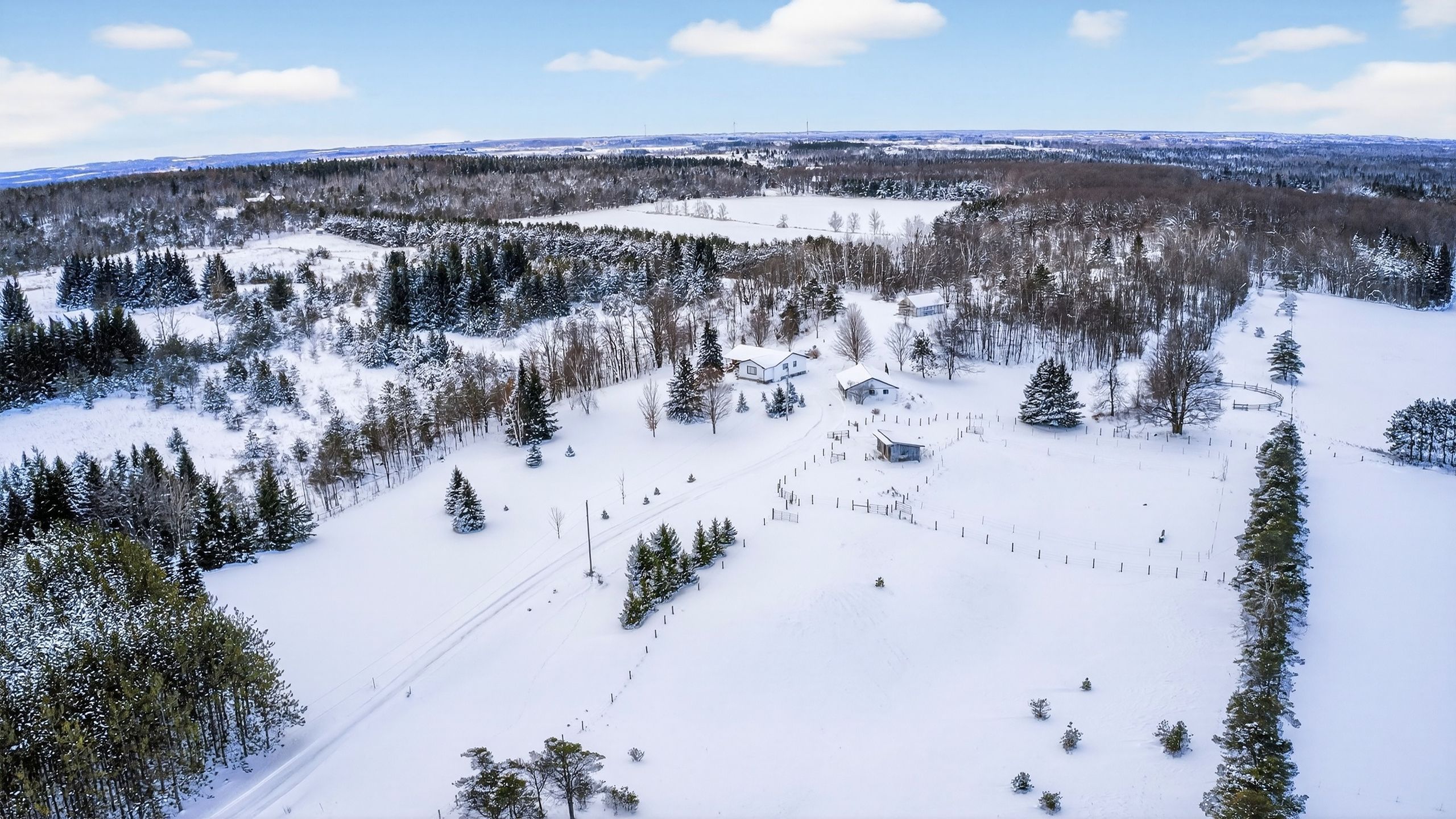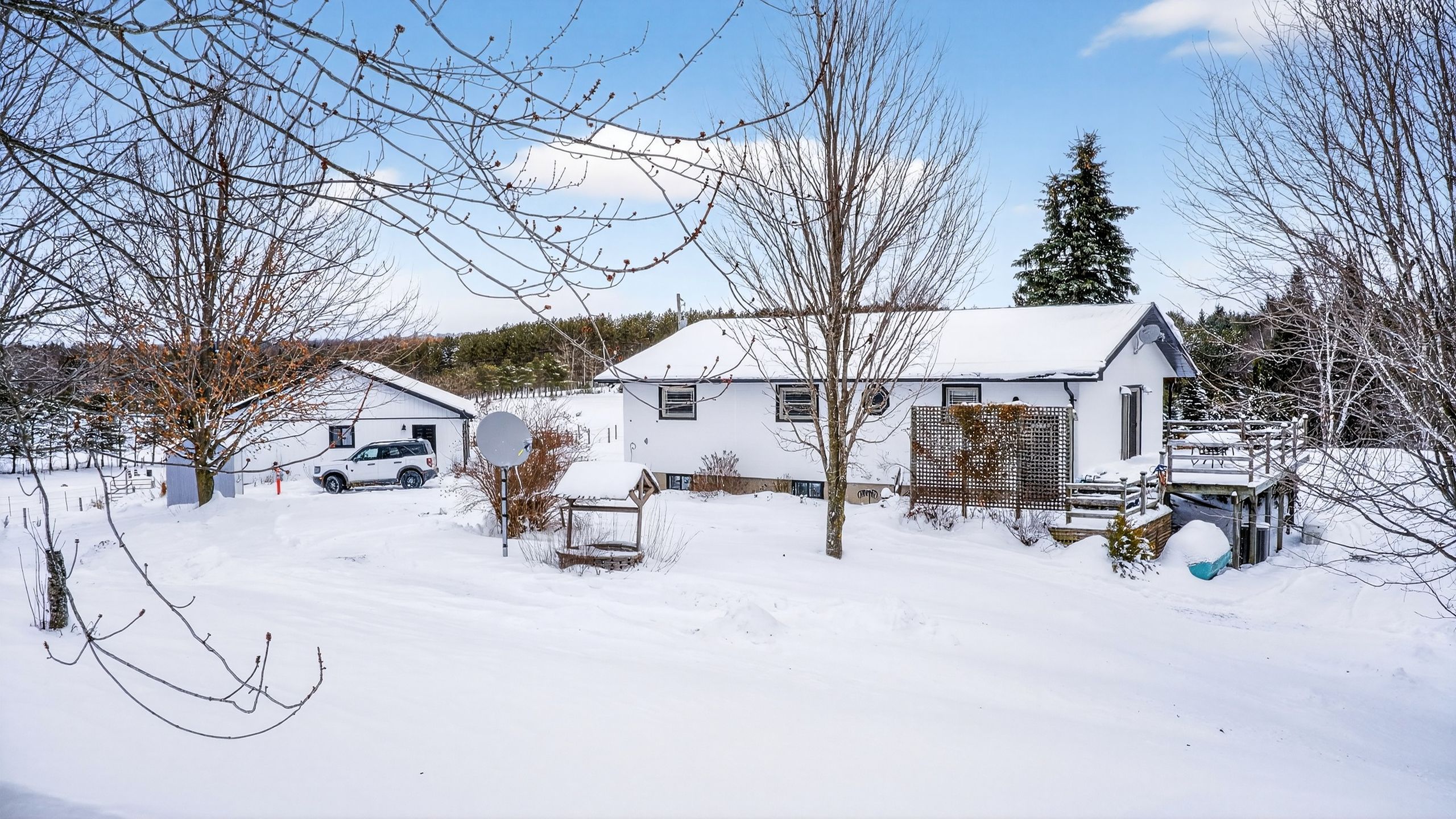 See the morning sun rise as you look to the east and admire the rolling & treed quiet terrain of this 22 acre mono property (442 feet x 2184 feet). Located on a municipally maintained " no exit" road. The privacy & scenery are supreme and the bruce trail & the mono cliffs provincial park are just down the road!! The long meandering driveway leads to a comfortable and very well maintained bungalow with a lovely front covered porch, wrap around deck & a walk-out basement. The main floor of this charming bungalow is approximately 1200 sq. Feet +/- m/l & includes a eat-in kitchen with garden doors to a deck, separate dining area and a large front living room. There are 3 bedrooms & 2 bathrooms. Practical luxury vinyl plank flooring throughout the main floor. The rear stairs lead to a convenient laundry area, back door to deck and stairwell to the basement. The lower level offers tremendous potential for extra living space and is partially finished with 2 large rooms 19 feet x 39 feet & 19 feet x 14 feet with a walk-out & garden doors . The utility room houses the propane furnace, hot water tank & well pressure tank plus room for extra storage. The cold room is 21 feet long. All outbuildings and the house have metal roofing. The exterior vinyl siding on the house including the 4 bay garage is a vinyl double wall product called "sagiper" siding. The land is scenic, rolling, treed and offers some fenced in areas including a round riding pen, walking trails at the back of the property through the forest!! The outbuildings include a 20 x 32 storage building and there is a run-in shed and a small garden shed. This property is a very private country sanctuary with a beautiful setting, with many lovely trees, perennial gardens, welcoming sunrises & sunsets!! Ideal for a homestead beginning and perhaps a few horses too!!