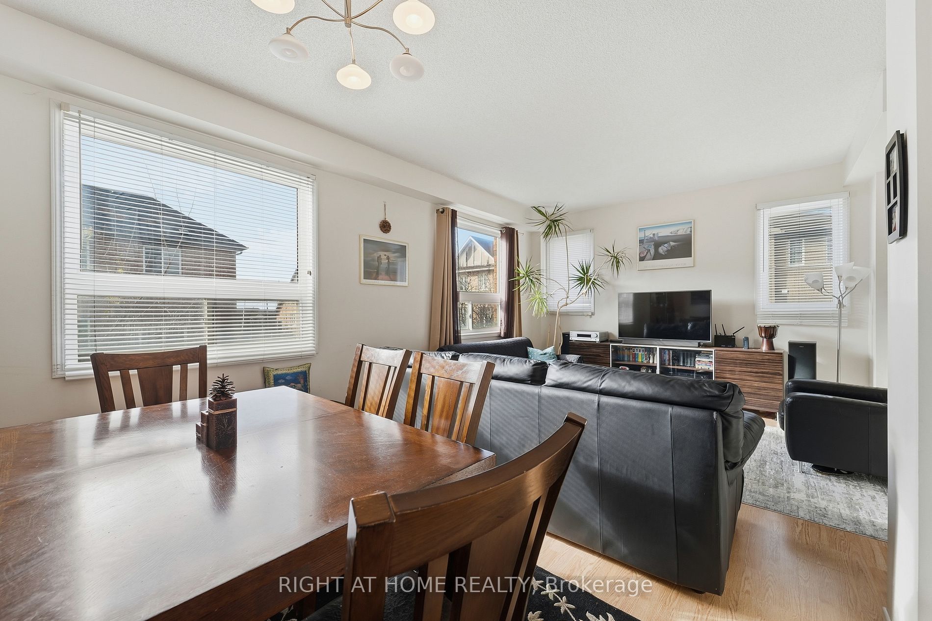 • Open concept living and dining area with 9 ft ceilings and hardwood floors.