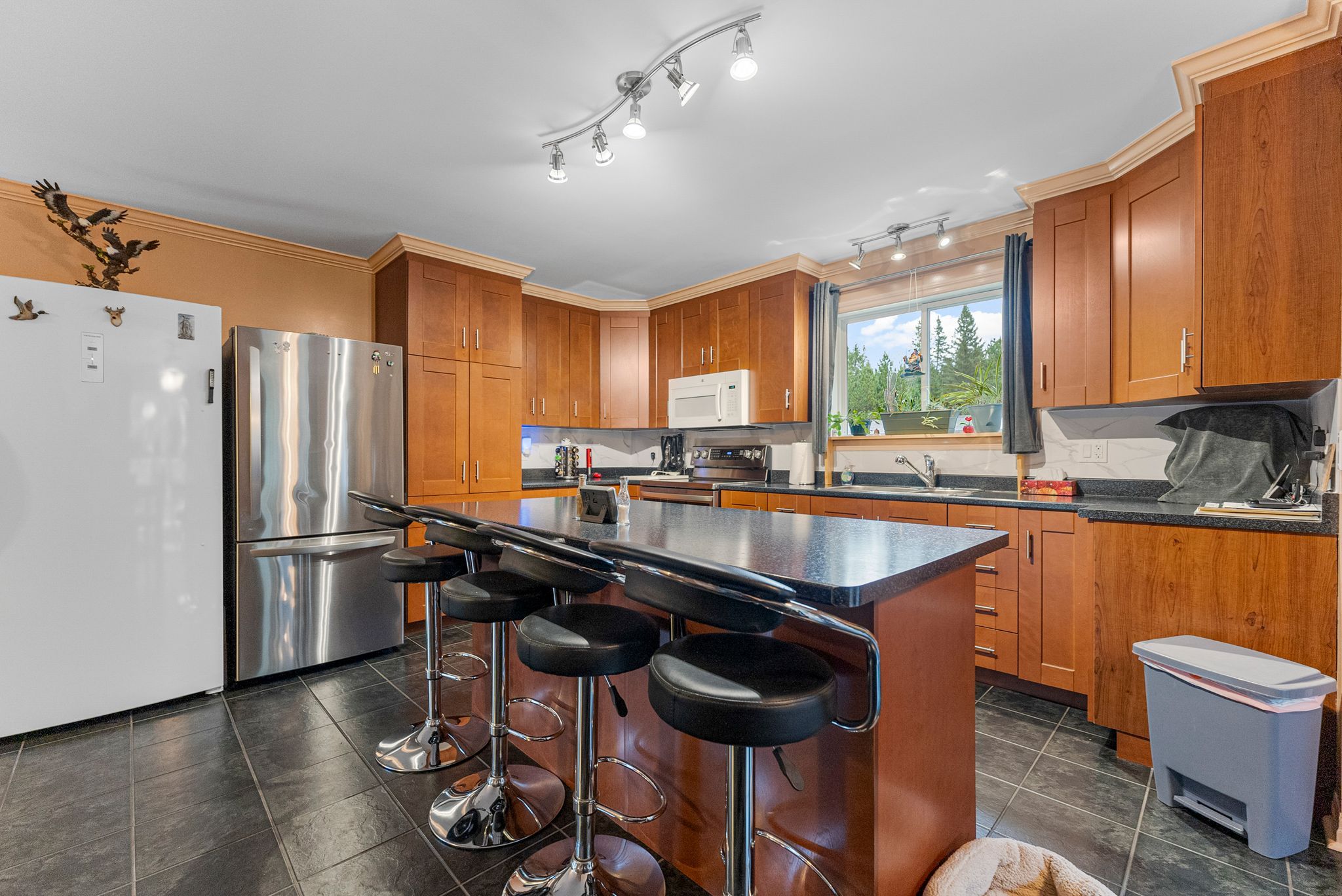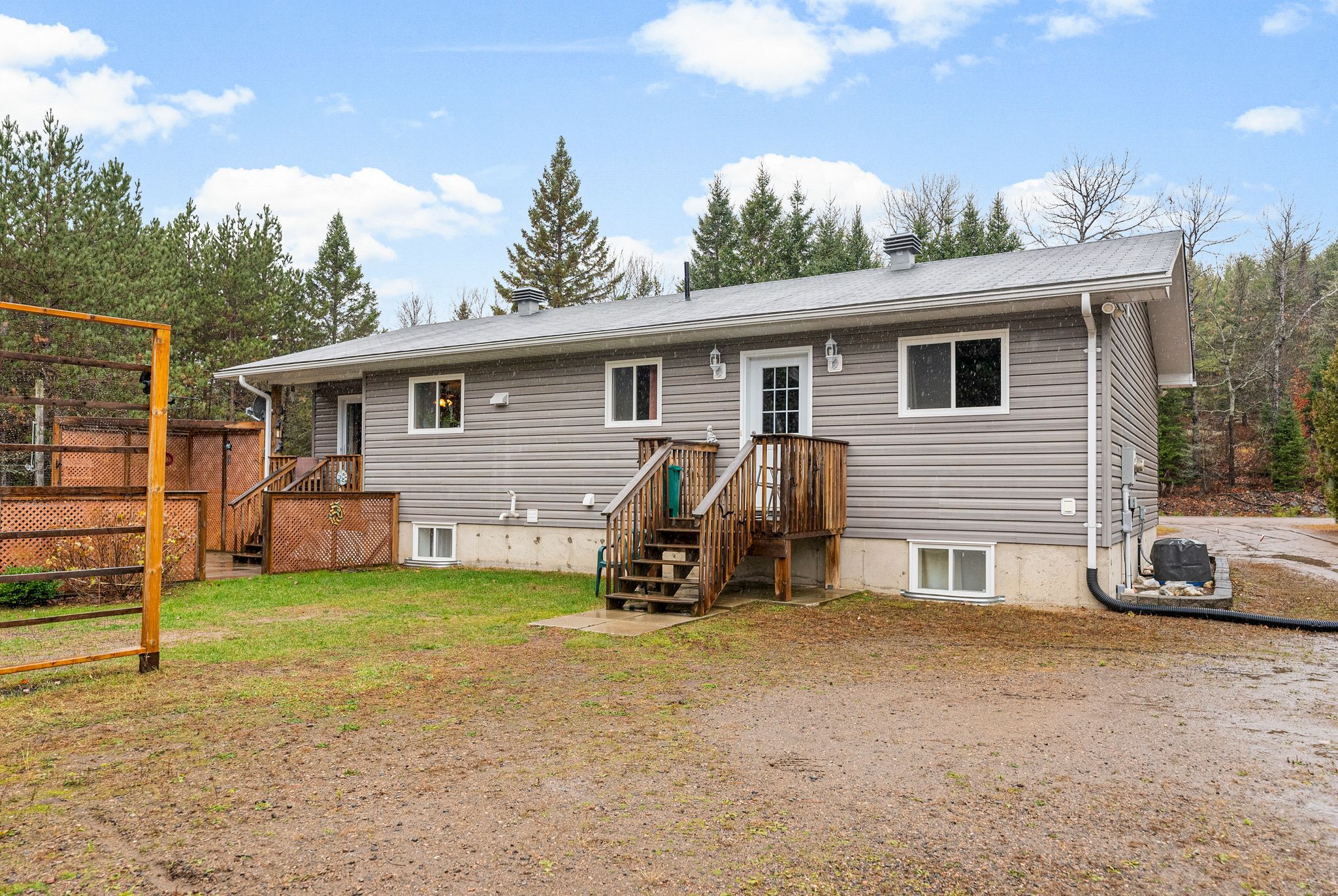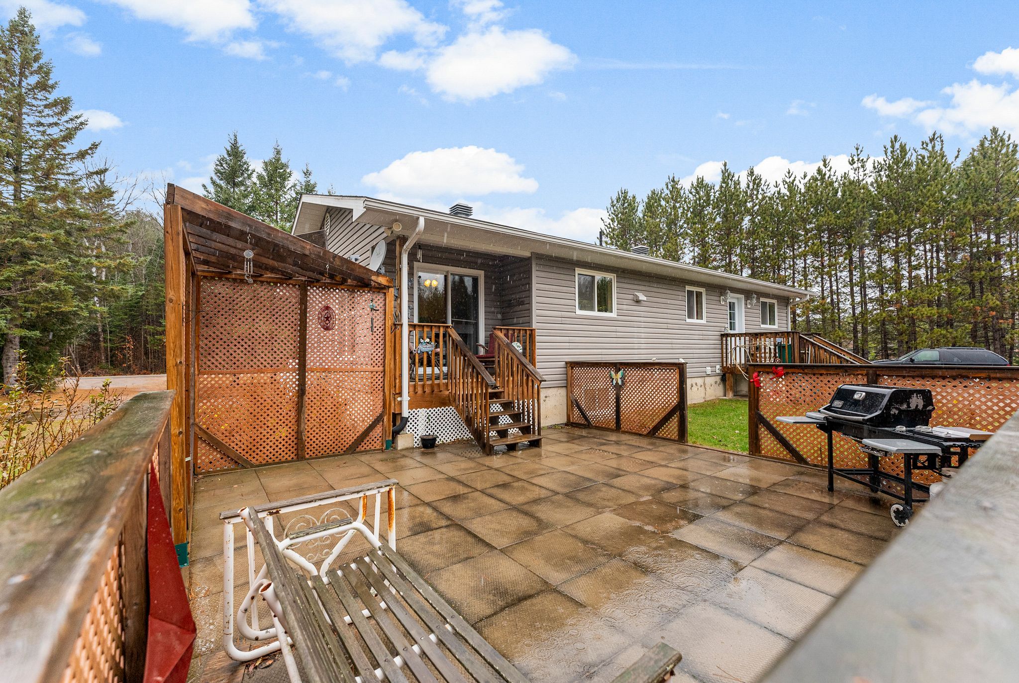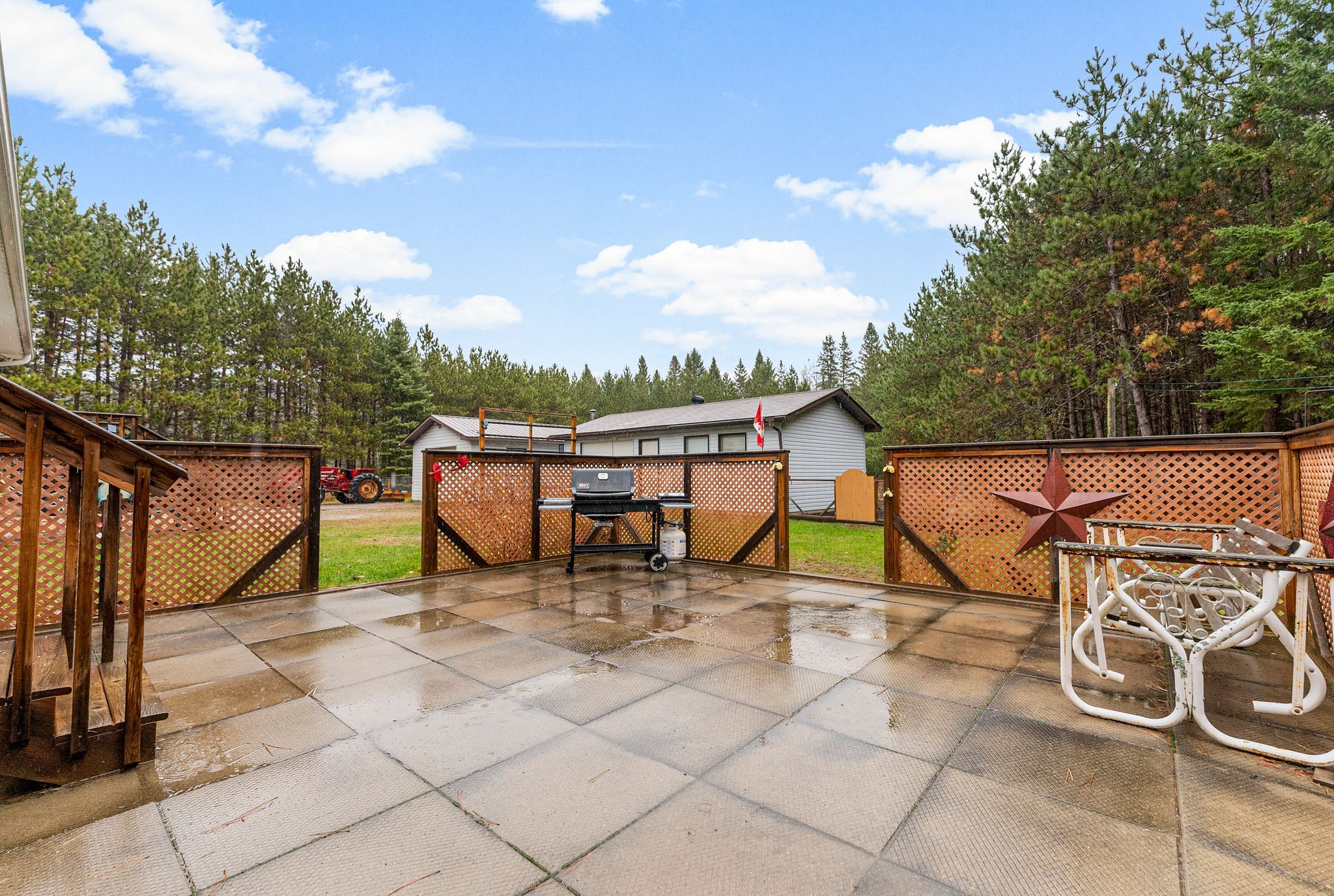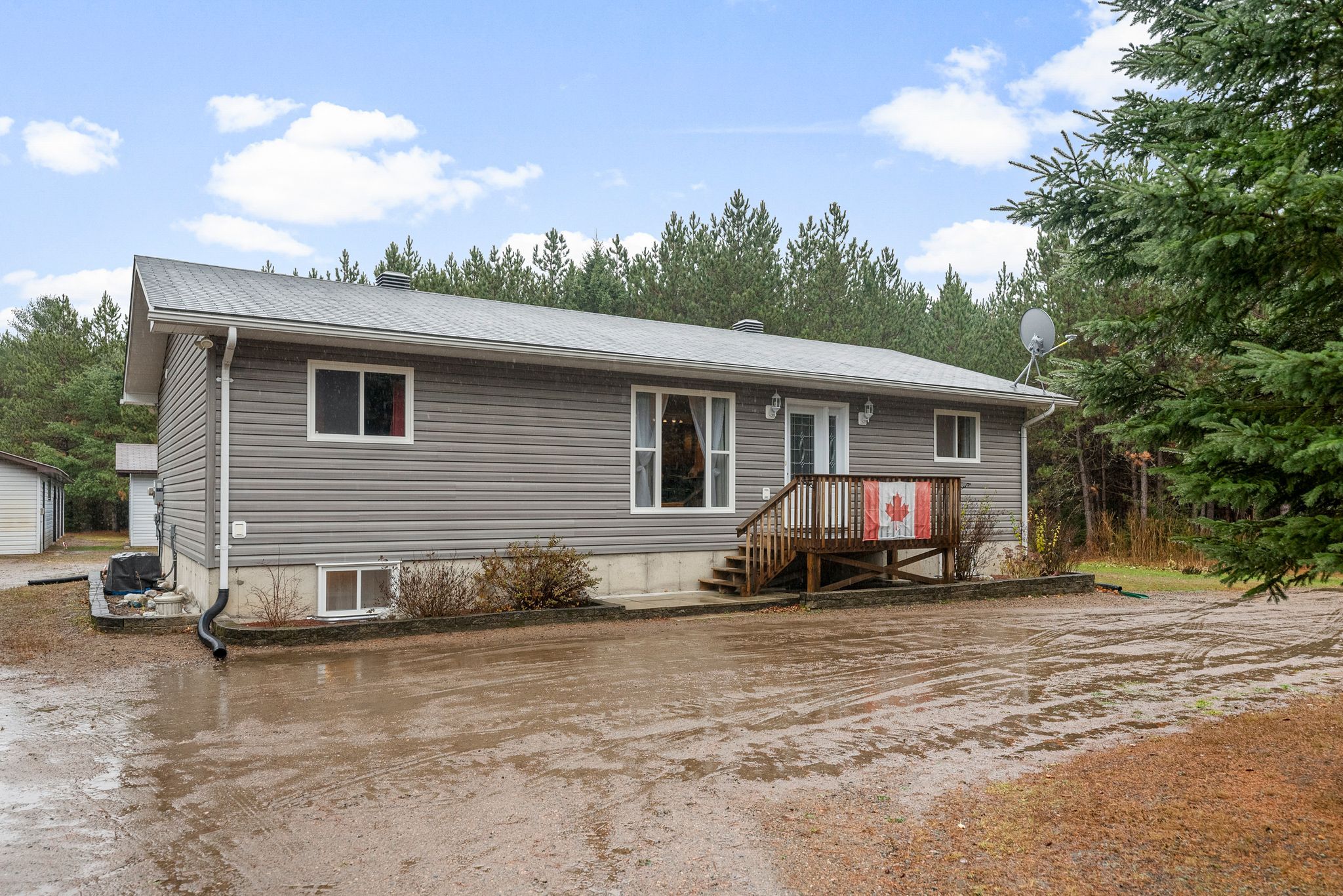 Discover this beautifully maintained 3-bedroom home offering the perfect blend of modern comfort and country charm. Built in 2015, this inviting property is nestled among towering pines and mature spruce hedges, providing exceptional privacy and a tranquil setting where moose and deer are known to wander. The wrap-around driveway leads to a well-cared-for home featuring tile and hardwood floors throughout. The main level offers convenience with a spacious primary bedroom, full bathroom, and laundry area. A cozy electric fireplace with elegant shelving creates a warm, welcoming atmosphere in the living area. The kitchen is designed for both functionality and entertaining, complete with birch cabinets, tile flooring, ample storage, and a central island. Step directly from the kitchen onto a covered deck and expansive 20x20 patio - the perfect space to entertain guests or simply enjoy the peaceful beauty of the surrounding landscape. The partially finished basement offers plenty of potential, with a large rec room, utility area, and generous storage spaces throughout. Outside, the landscaped yard includes fenced gardens and a variety of berry bushes - raspberry, honeyberry, strawberry, and blackberry - ideal for those who enjoy gardening and self-sustainability. A highlight of the property is the large insulated 16' x 57' 4-bay garage with electrical hookup, perfect for vehicles, hobbies, or additional storage. There's also a 16' x 32' insulated outbuilding with power and a large utility bench - an excellent space for a workshop or studio. Additional features include a new hotwater tank & pump, propane furnace, well with uv system, and central vacuum. This peaceful property offers a wonderful lifestyle surrounded by nature - yet with all the modern comforts of home.
