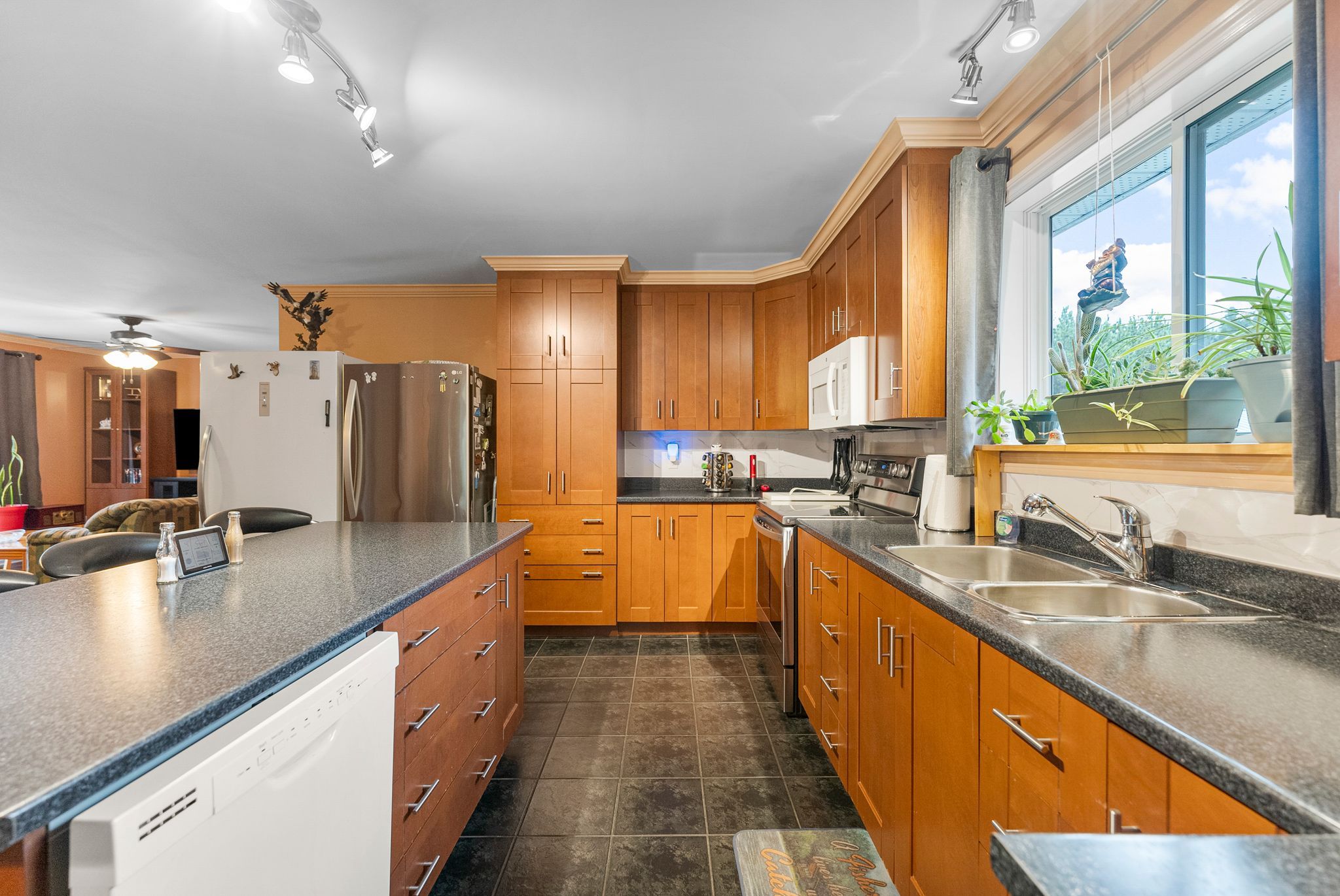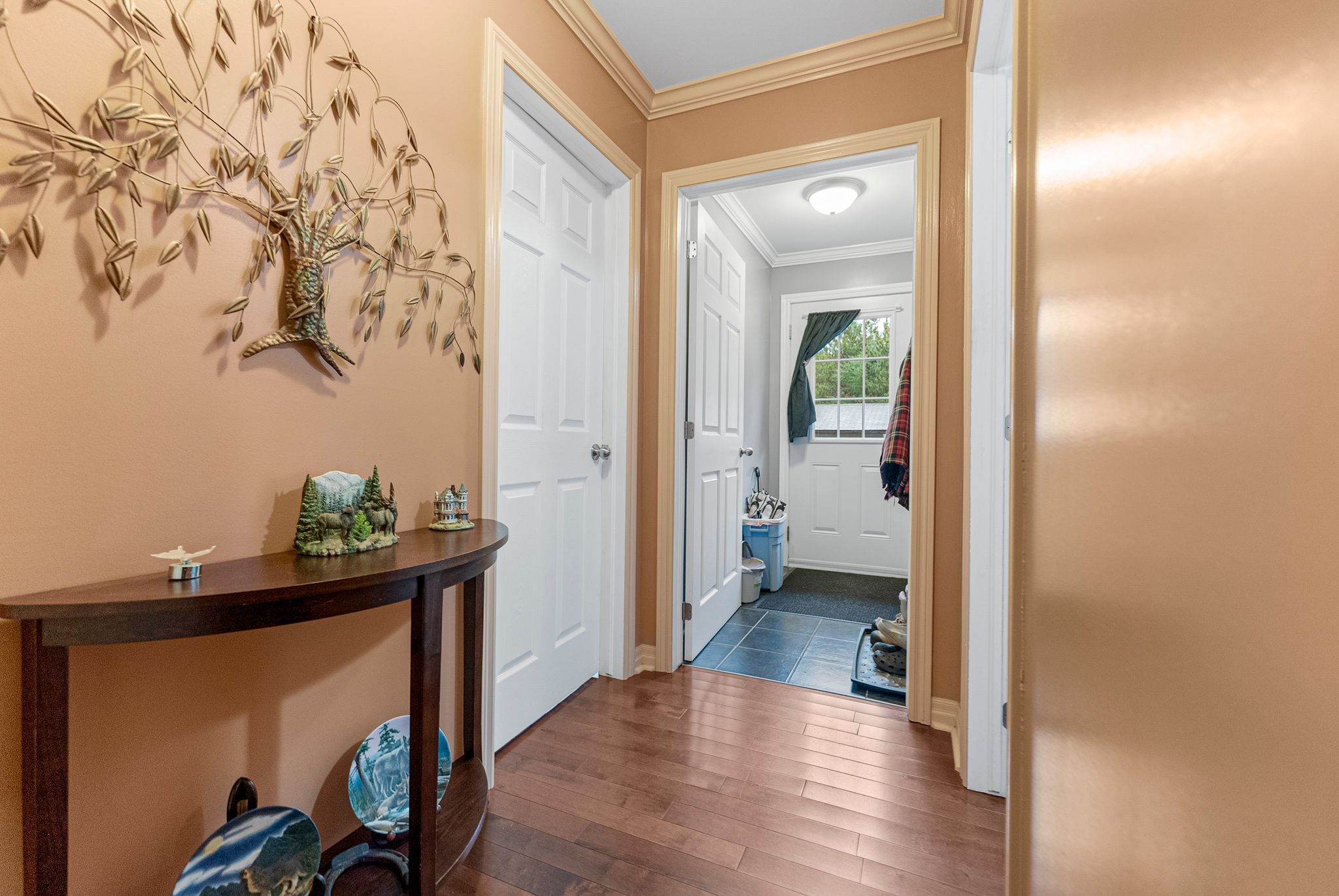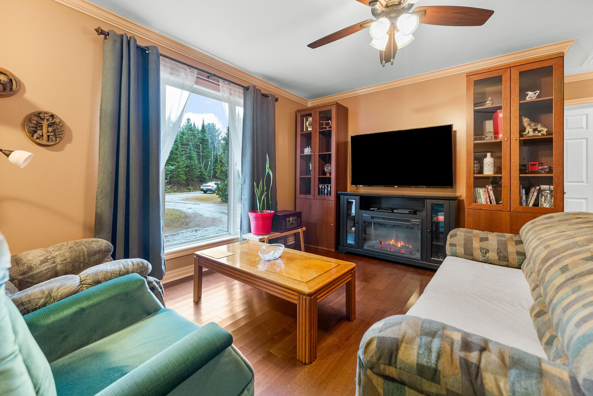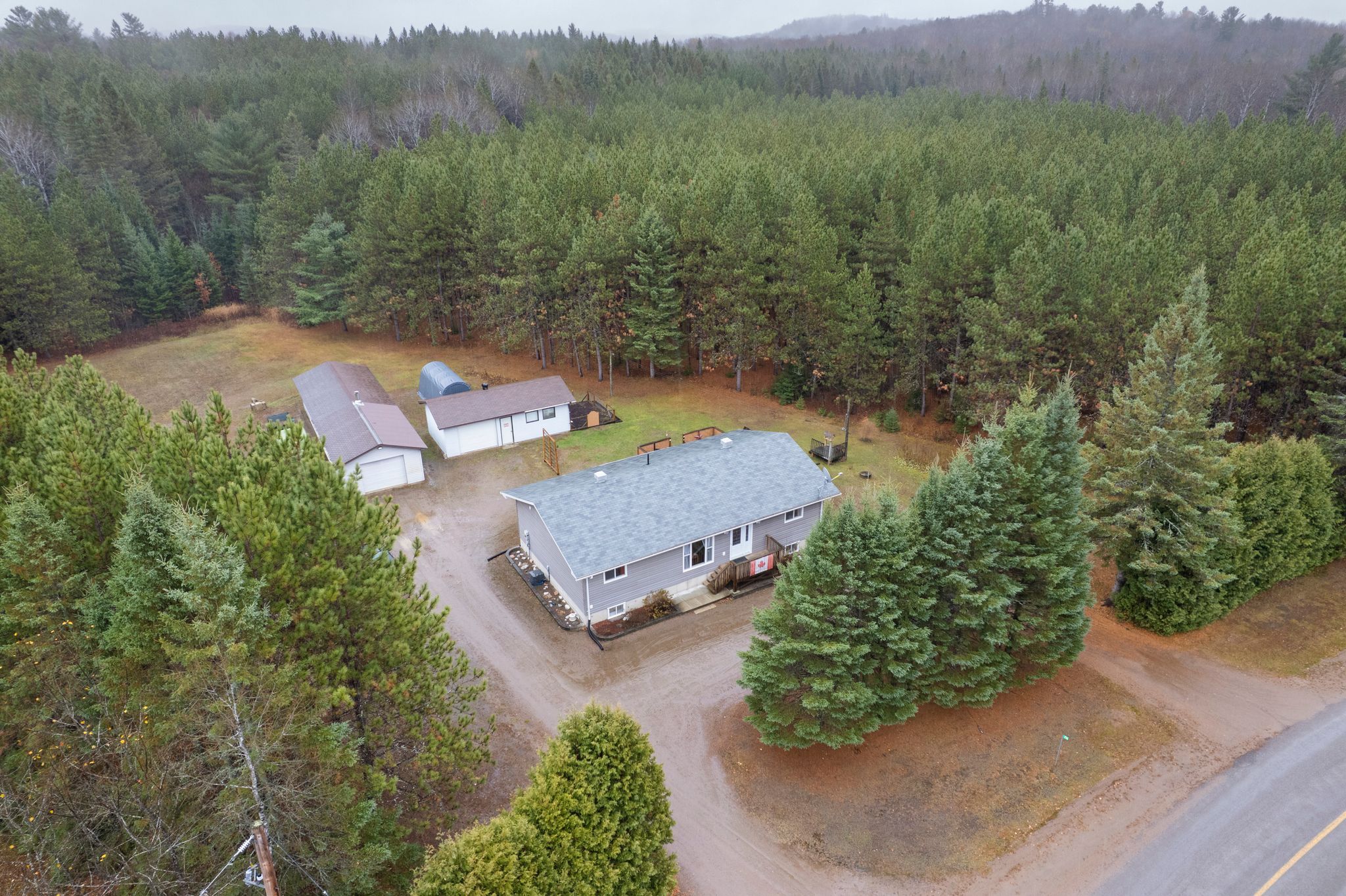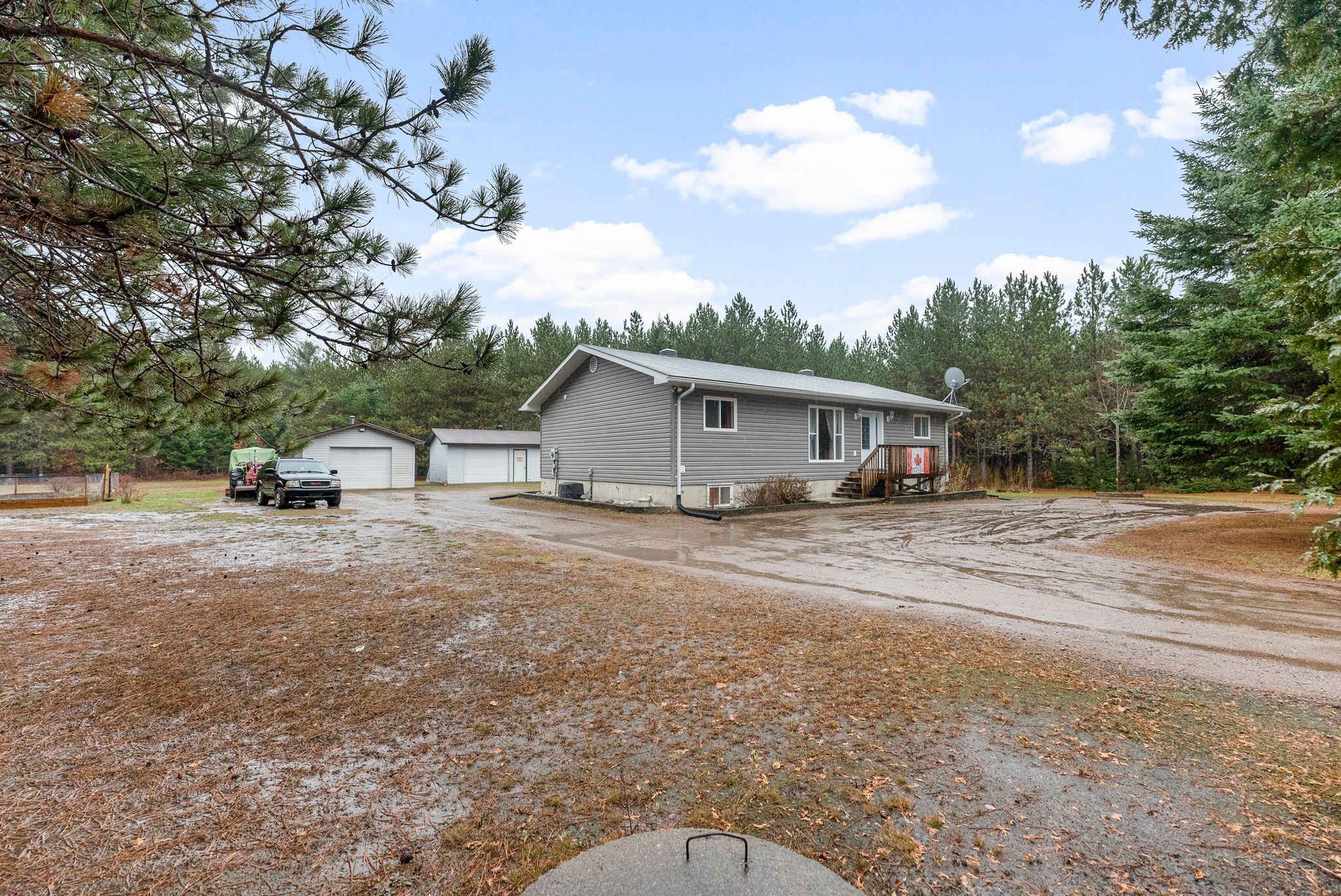 Discover this beautifully maintained 3-bedroom home offering the perfect blend of modern comfort and country charm. Built in 2015, this inviting property is nestled among towering pines and mature spruce hedges, providing exceptional privacy and a tranquil setting where moose and deer are known to wander. The wrap-around driveway leads to a well-cared-for home featuring tile and hardwood floors throughout. The main level offers convenience with a spacious primary bedroom, full bathroom, and laundry area. A cozy electric fireplace with elegant shelving creates a warm, welcoming atmosphere in the living area. The kitchen is designed for both functionality and entertaining, complete with birch cabinets, tile flooring, ample storage, and a central island. Step directly from the kitchen onto a covered deck and expansive 20x20 patio - the perfect space to entertain guests or simply enjoy the peaceful beauty of the surrounding landscape. The partially finished basement offers plenty of potential, with a large rec room, utility area, and generous storage spaces throughout. Outside, the landscaped yard includes fenced gardens and a variety of berry bushes - raspberry, honeyberry, strawberry, and blackberry - ideal for those who enjoy gardening and self-sustainability. A highlight of the property is the large insulated 16' x 57' 4-bay garage with electrical hookup, perfect for vehicles, hobbies, or additional storage. There's also a 16' x 32' insulated outbuilding with power and a large utility bench - an excellent space for a workshop or studio. Additional features include a new hotwater tank & pump, propane furnace, well with uv system, and central vacuum. This peaceful property offers a wonderful lifestyle surrounded by nature - yet with all the modern comforts of home.