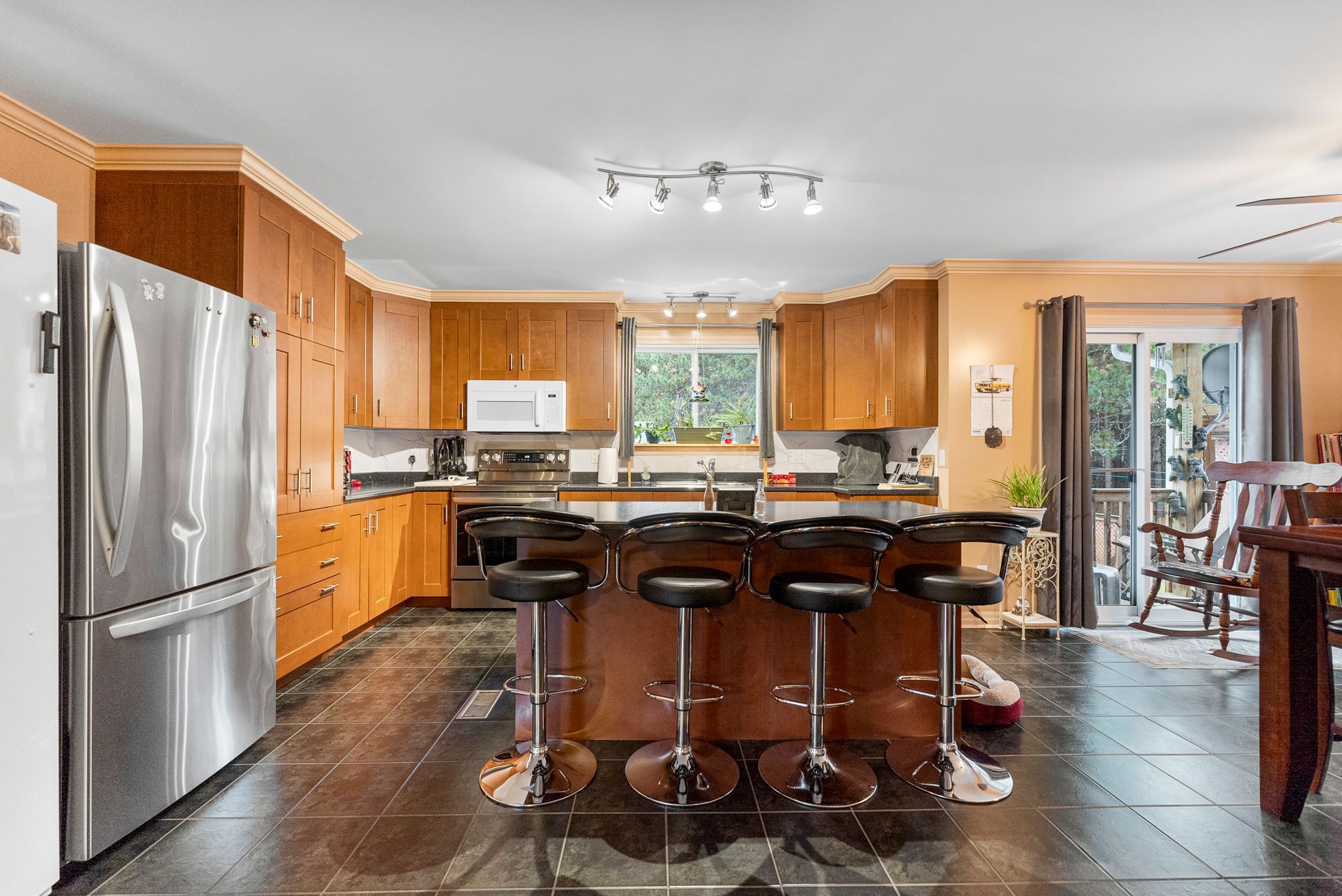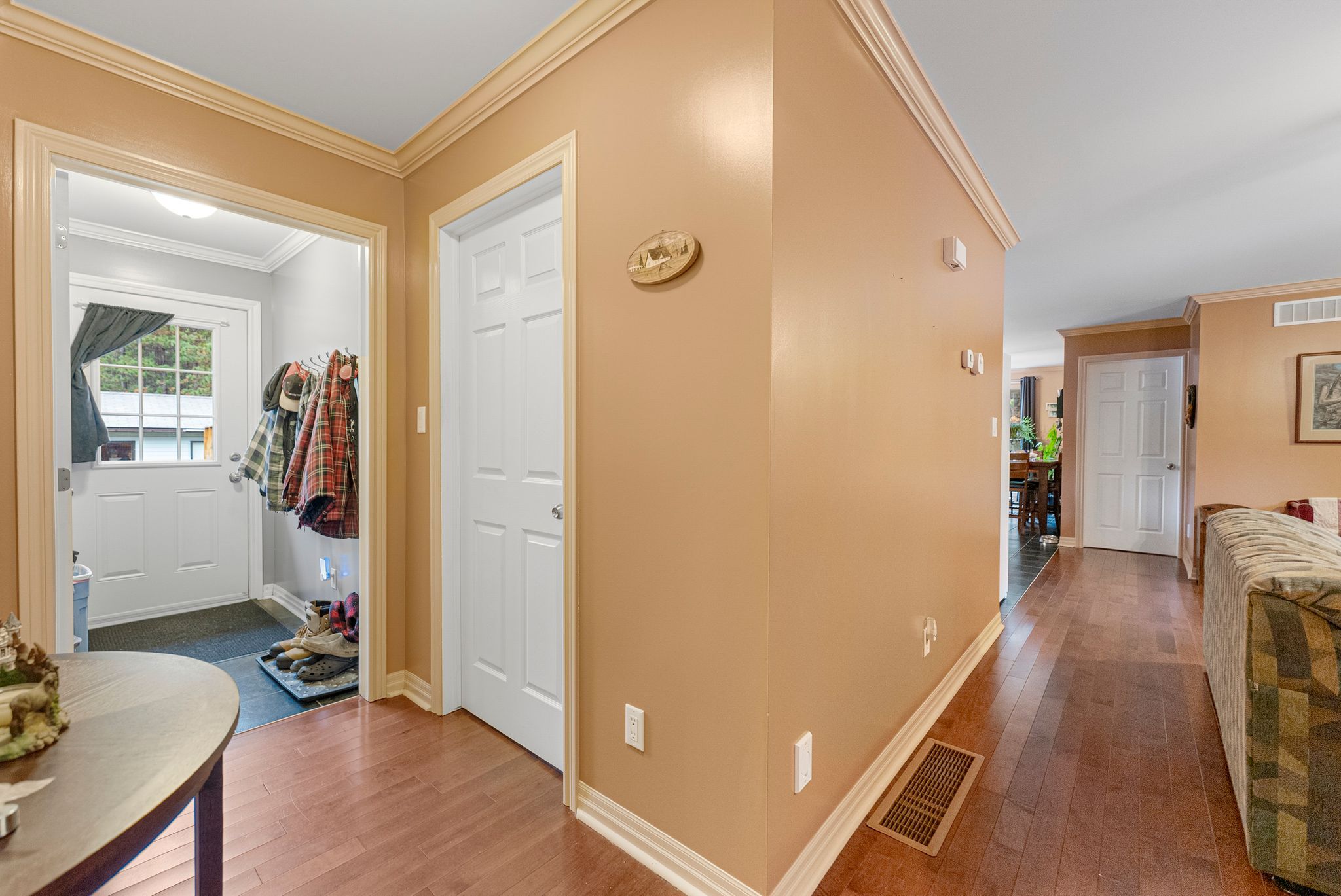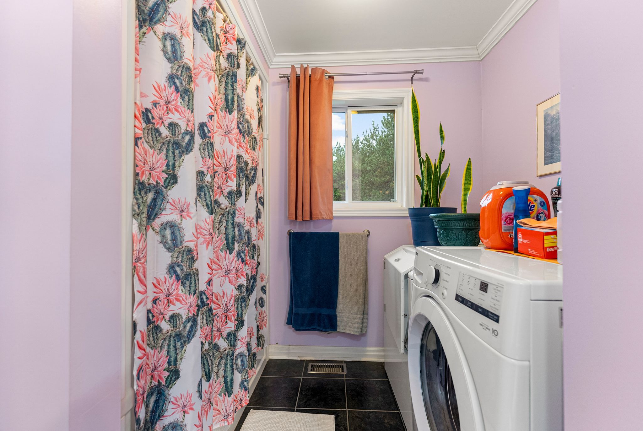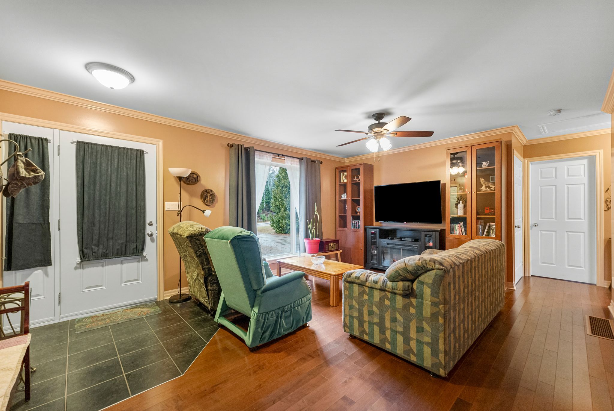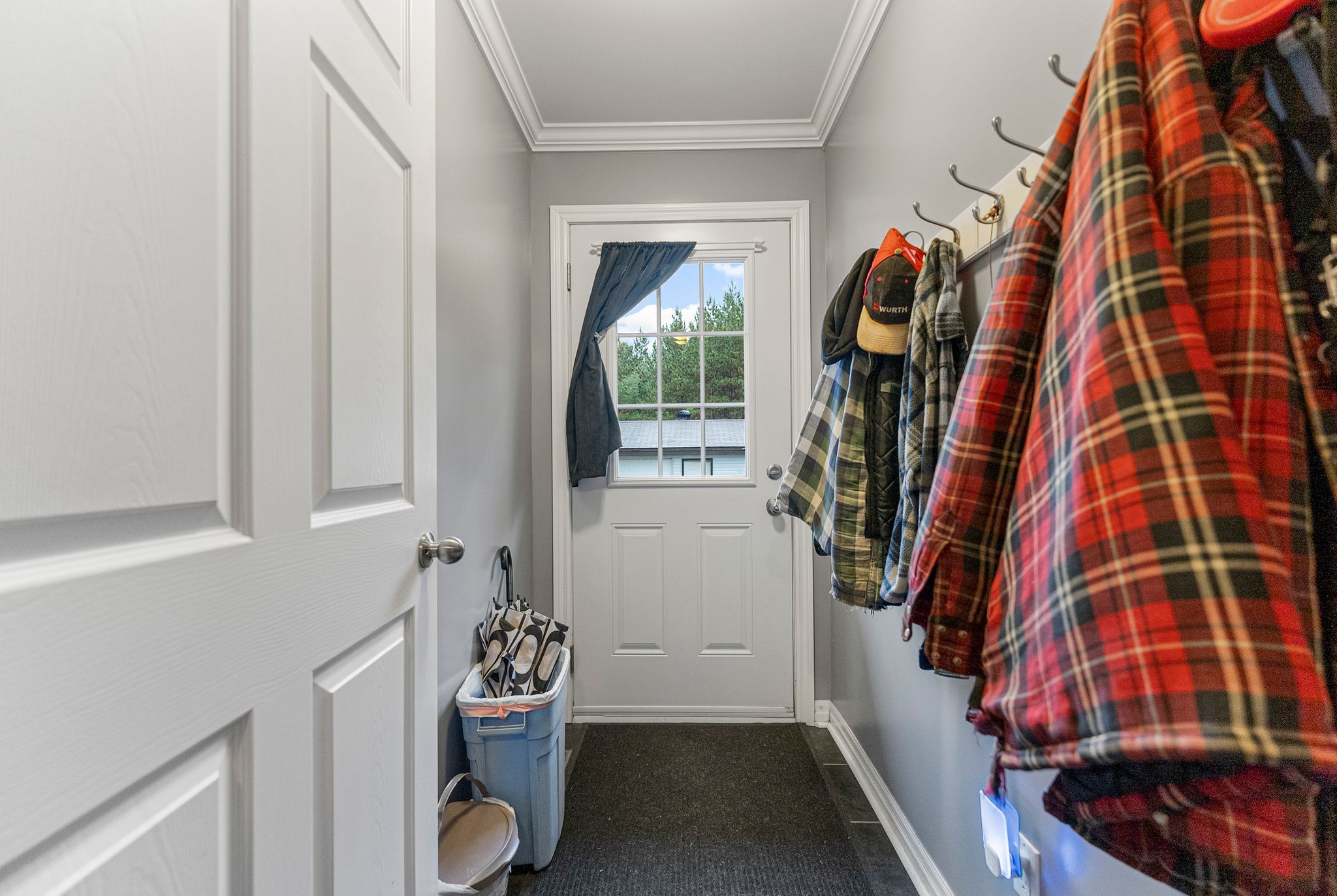 Discover this beautifully maintained 3-bedroom home offering the perfect blend of modern comfort and country charm. Built in 2015, this inviting property is nestled among towering pines and mature spruce hedges, providing exceptional privacy and a tranquil setting where moose and deer are known to wander. The wrap-around driveway leads to a well-cared-for home featuring tile and hardwood floors throughout. The main level offers convenience with a spacious primary bedroom, full bathroom, and laundry area. A cozy electric fireplace with elegant shelving creates a warm, welcoming atmosphere in the living area. The kitchen is designed for both functionality and entertaining, complete with birch cabinets, tile flooring, ample storage, and a central island. Step directly from the kitchen onto a covered deck and expansive 20x20 patio - the perfect space to entertain guests or simply enjoy the peaceful beauty of the surrounding landscape. The partially finished basement offers plenty of potential, with a large rec room, utility area, and generous storage spaces throughout. Outside, the landscaped yard includes fenced gardens and a variety of berry bushes - raspberry, honeyberry, strawberry, and blackberry - ideal for those who enjoy gardening and self-sustainability. A highlight of the property is the large insulated 16' x 57' 4-bay garage with electrical hookup, perfect for vehicles, hobbies, or additional storage. There's also a 16' x 32' insulated outbuilding with power and a large utility bench - an excellent space for a workshop or studio. Additional features include a new hotwater tank & pump, propane furnace, well with uv system, and central vacuum. This peaceful property offers a wonderful lifestyle surrounded by nature - yet with all the modern comforts of home.