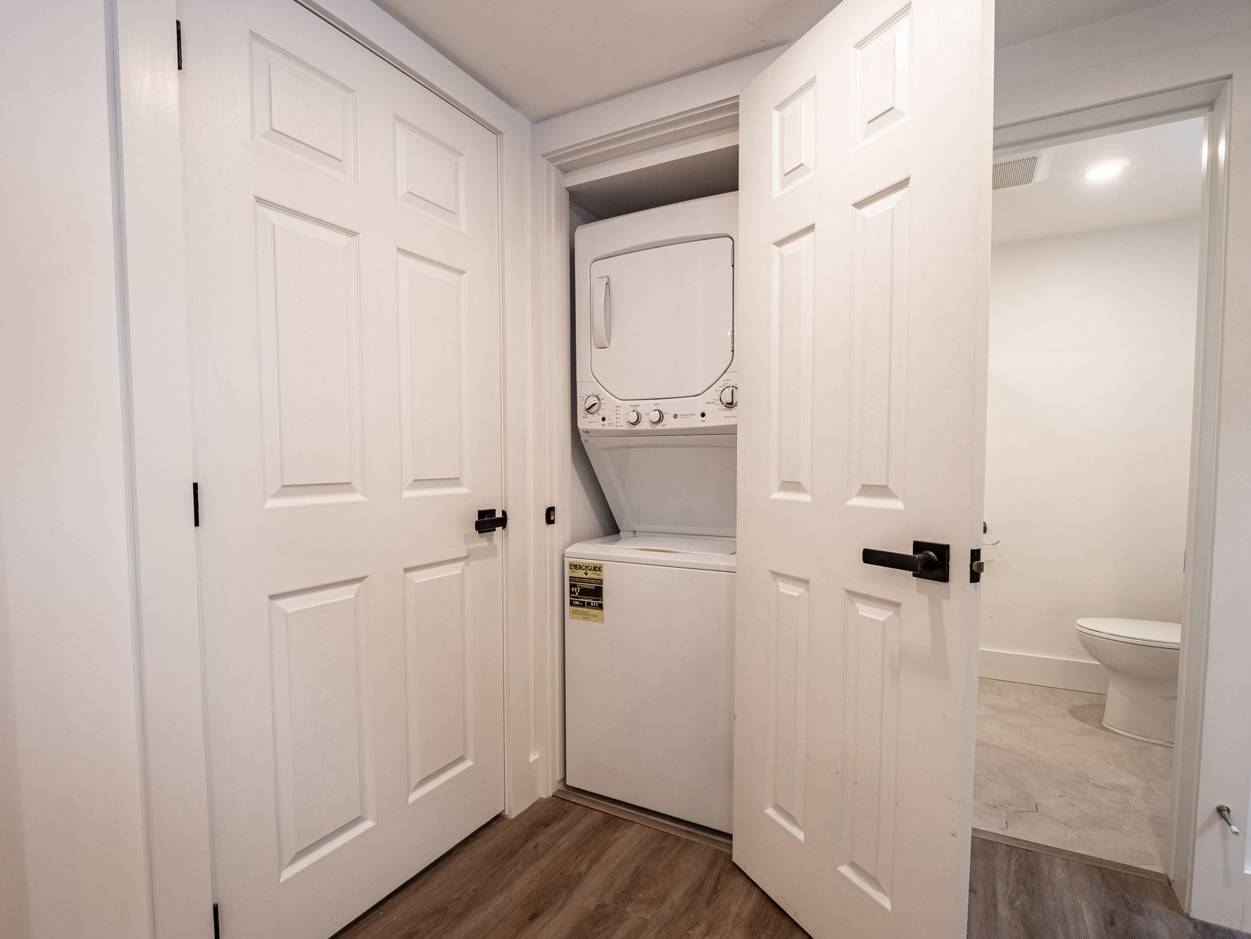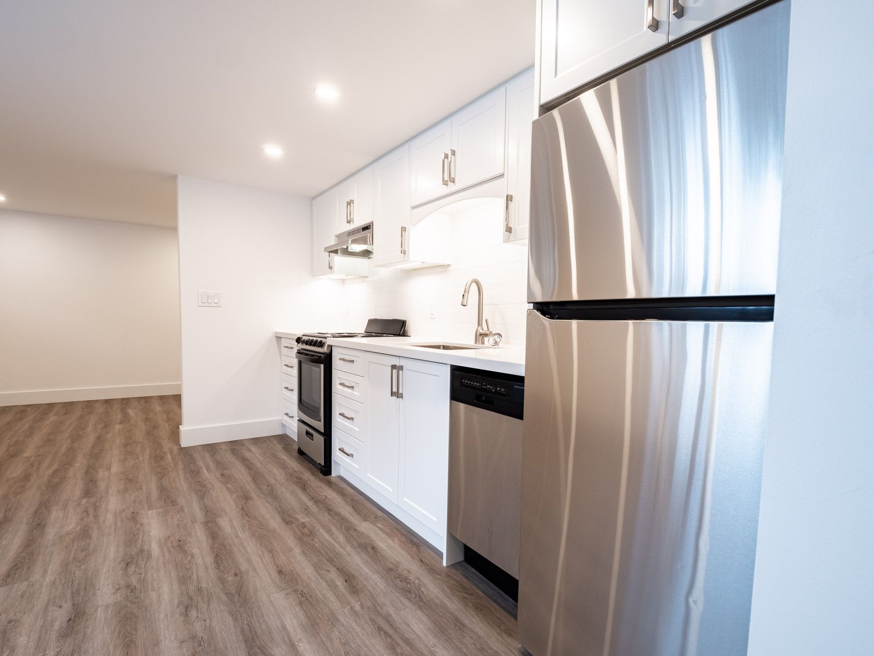Affordable, no maintenance, bachelor apartment perfectly located near costco, grocery stores, qew, restaurants and so much more. This stunning unit features a bright and open living space with large window's, high ceilings, pot light's, in-unit laundry and all premium finishes. Available may 1st