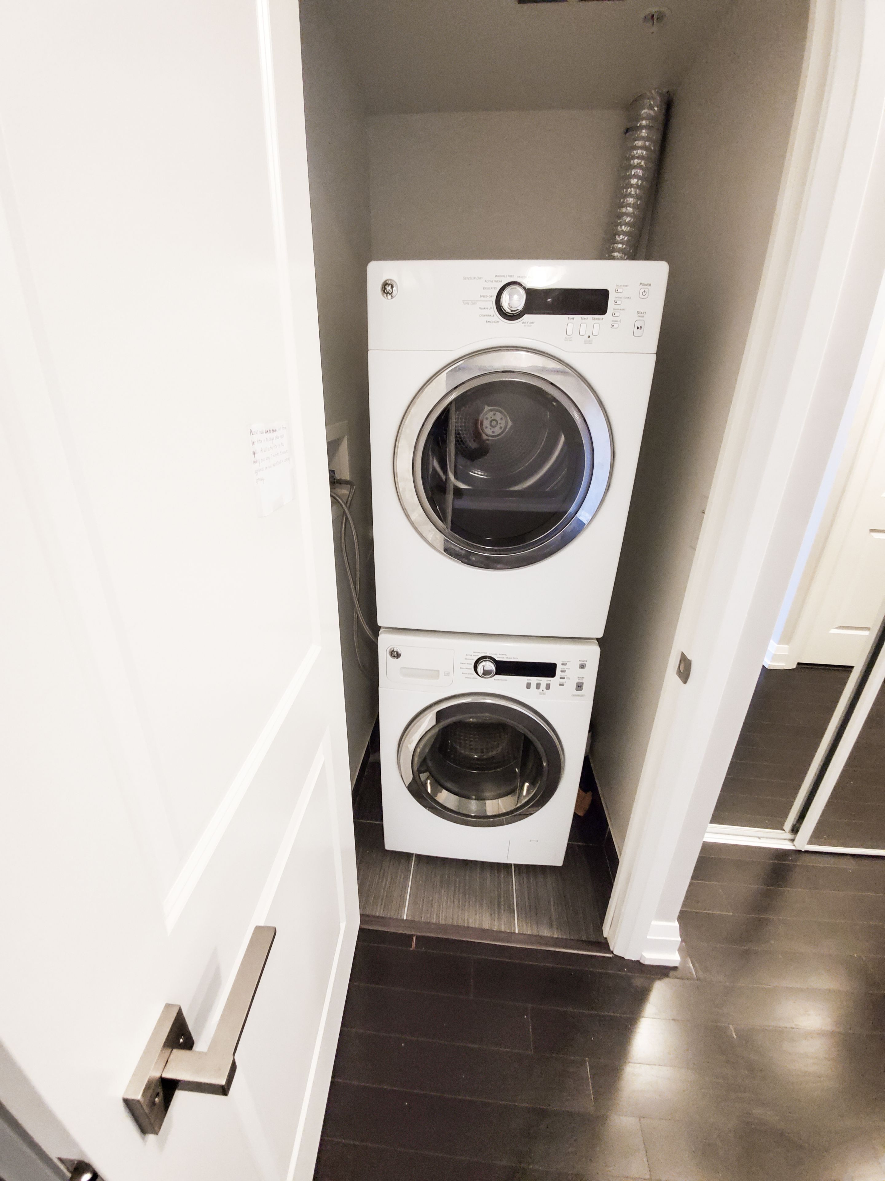 Beautiful corner unit with spectacular views on high floor with 9 ft ceilings and bright master bedroom. Modern kitchen with granite countertops, ge washer/dryer, and dark espresso wood flooring throughout unit. A must see. Perfect for young professionals. Building is attached to world on yonge shopping center as well as a grocery store located in p1. Ample amount of parking available for guests. You'll never have to leave the building!