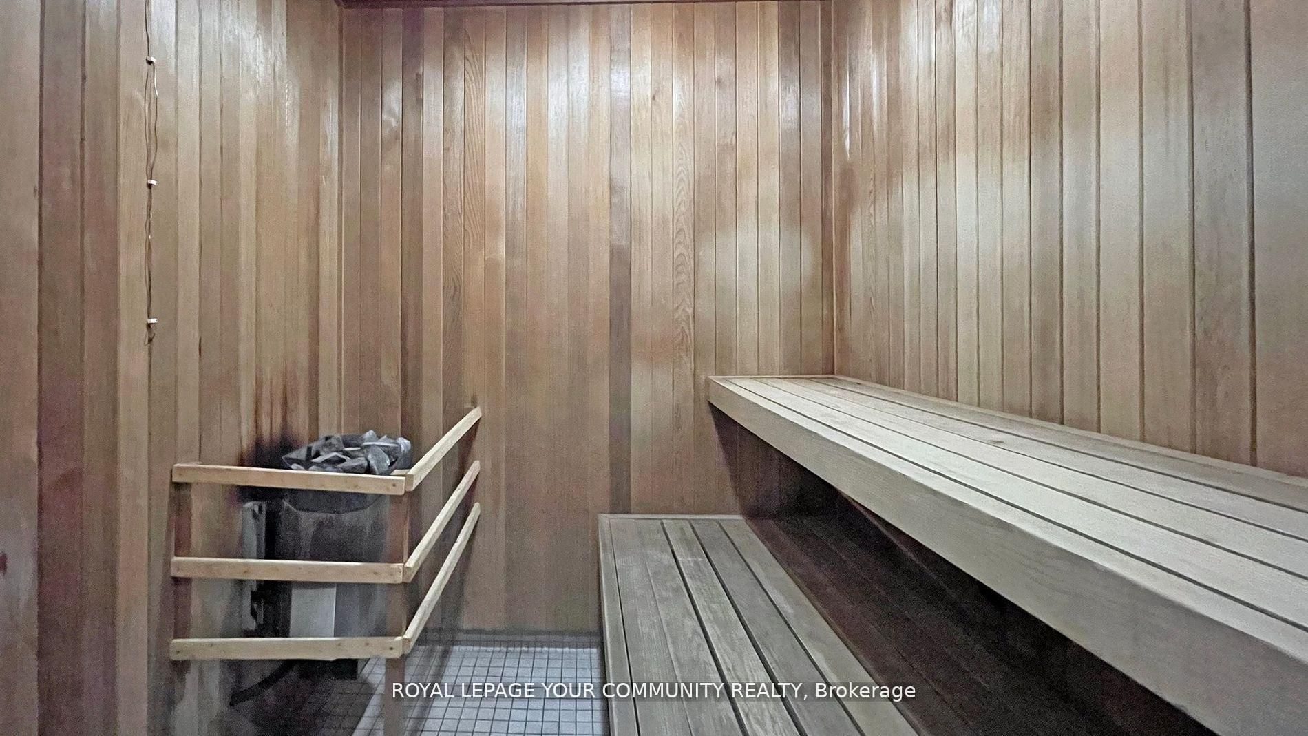 • Building offers 24-hour concierge, fitness center, and sauna.