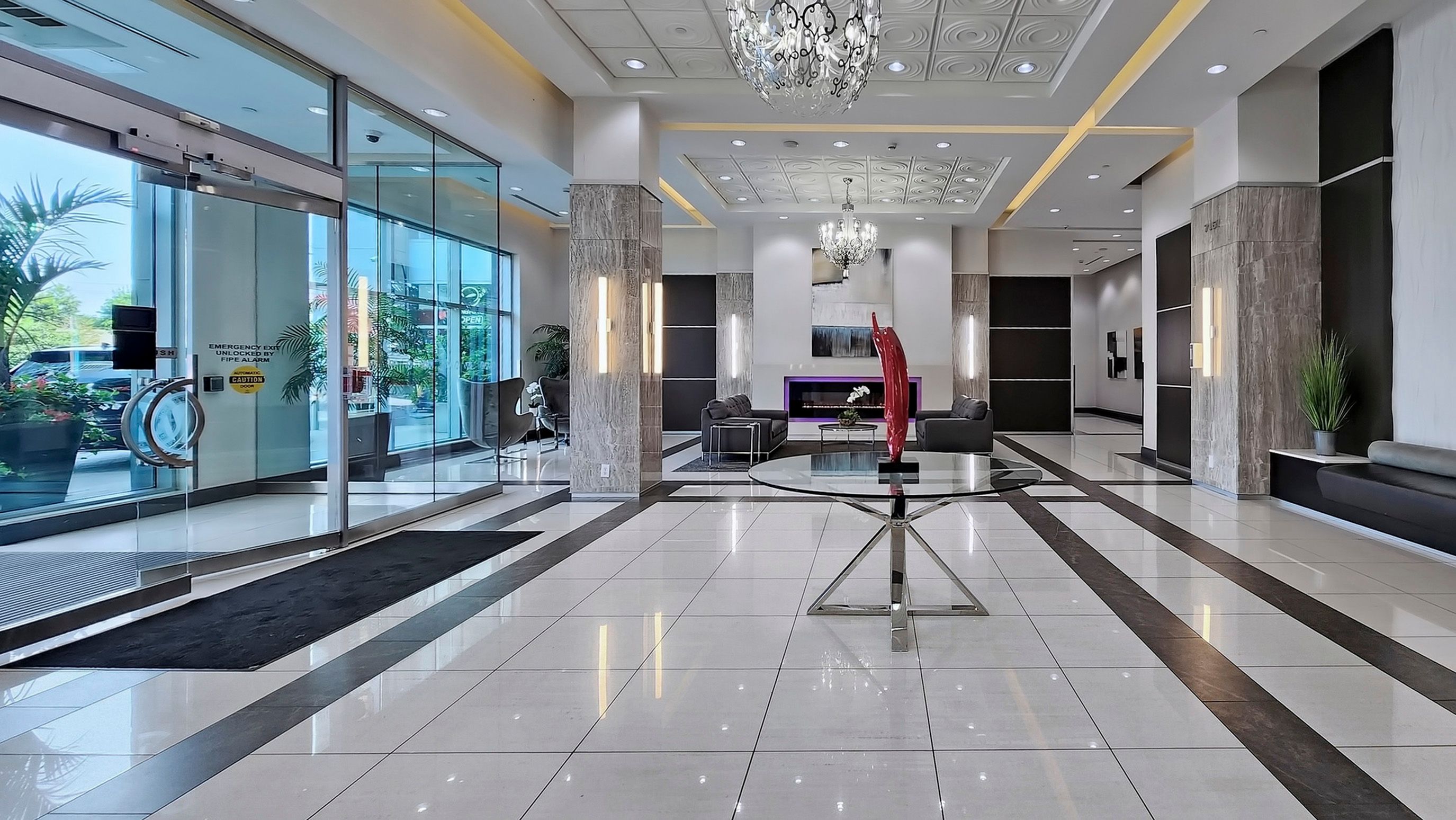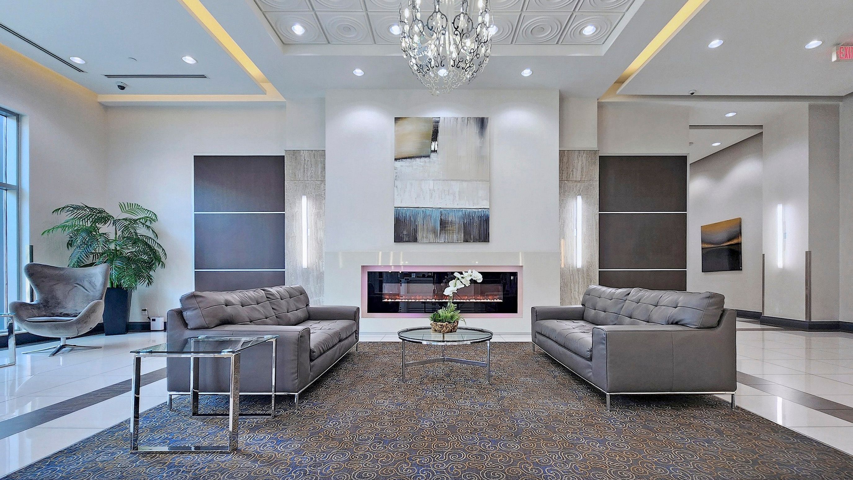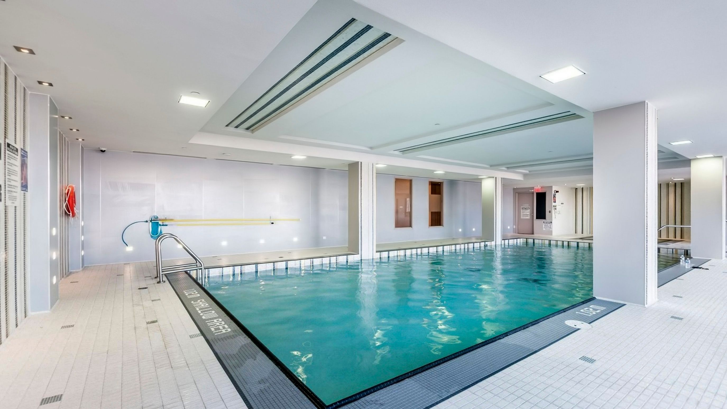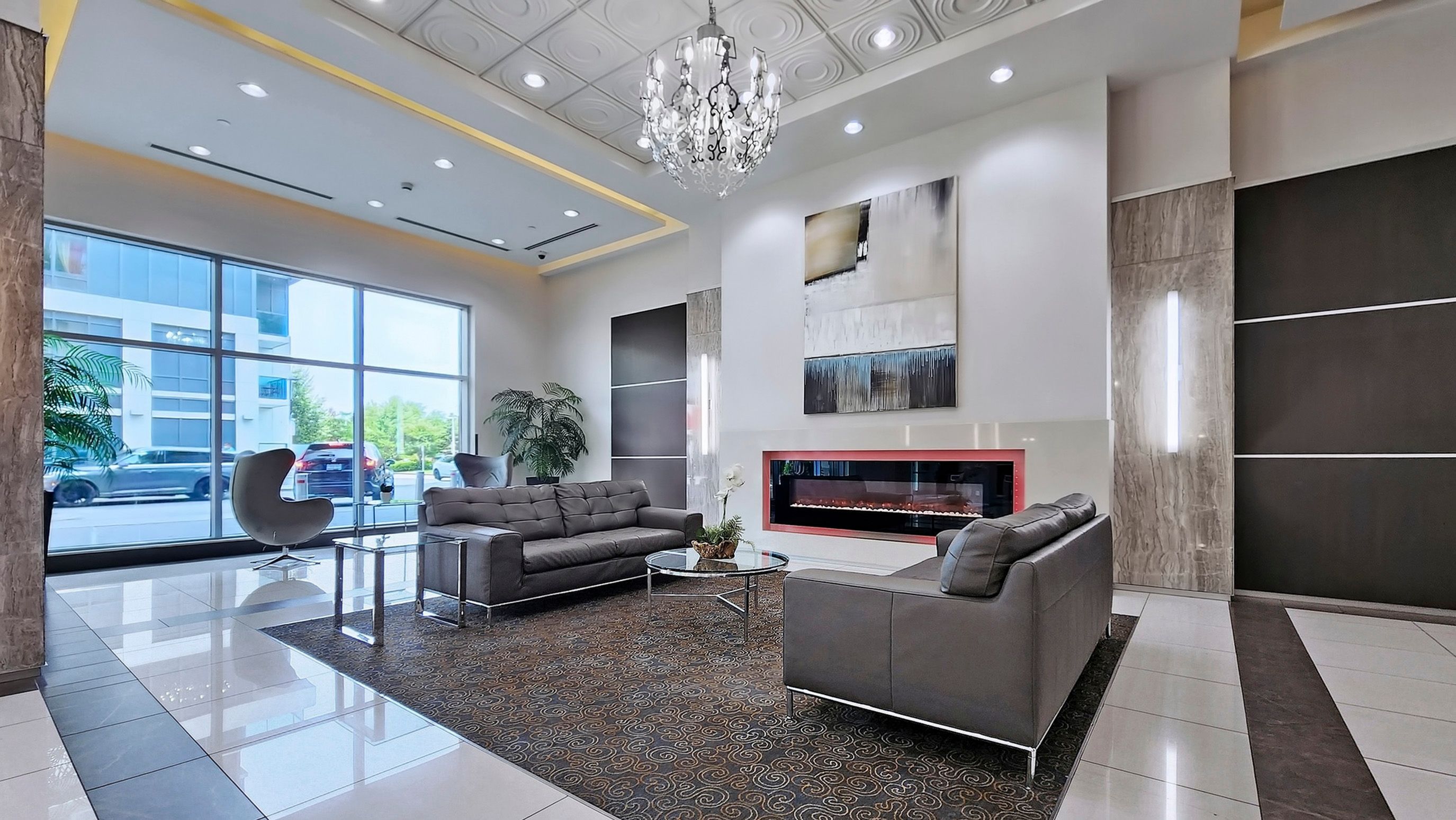• On-site amenities include pool, gym, and 24-hour concierge.