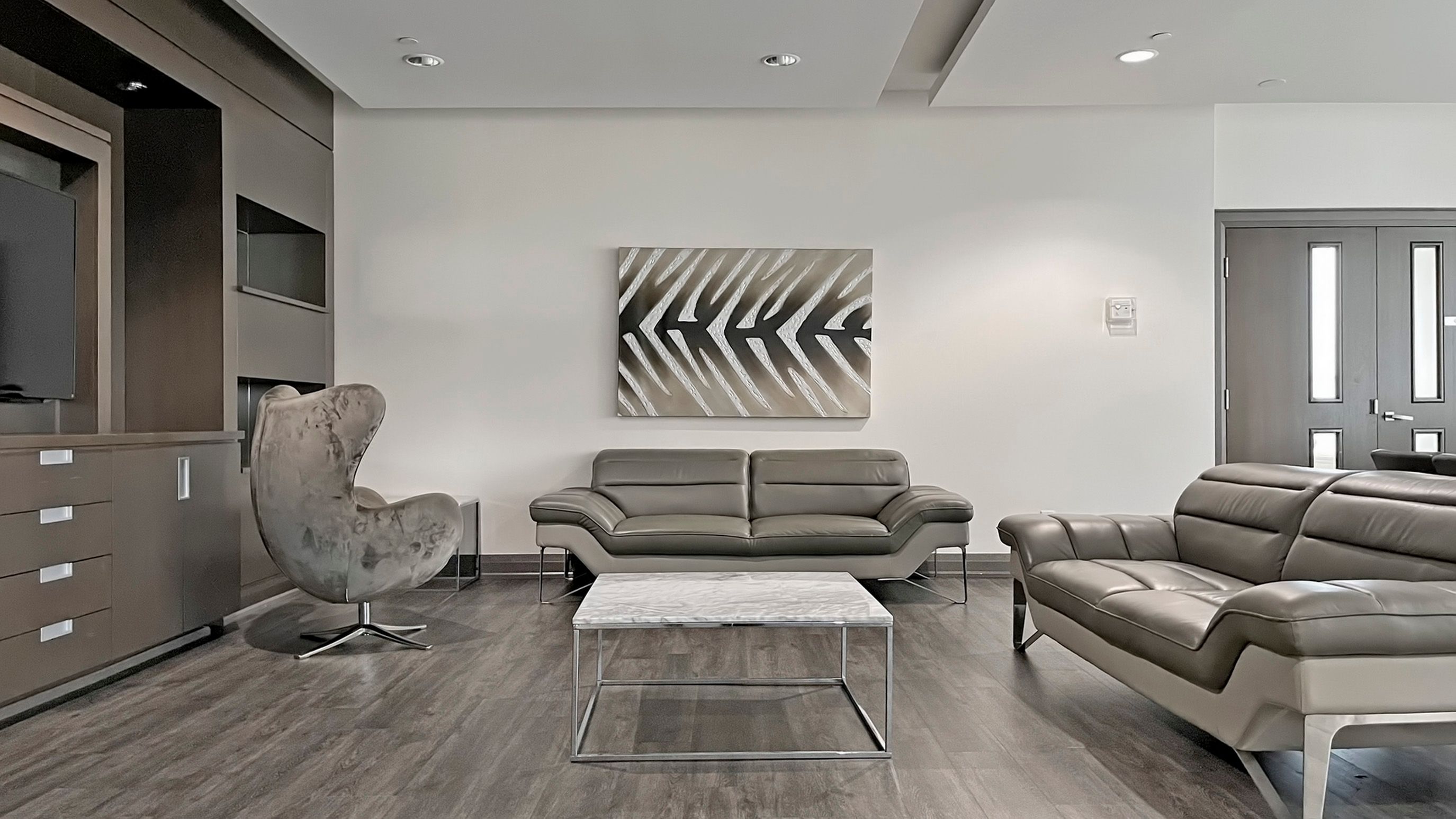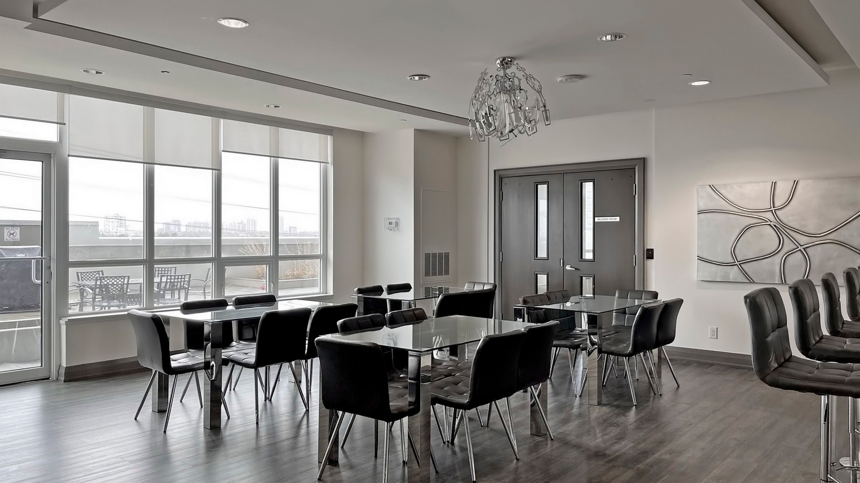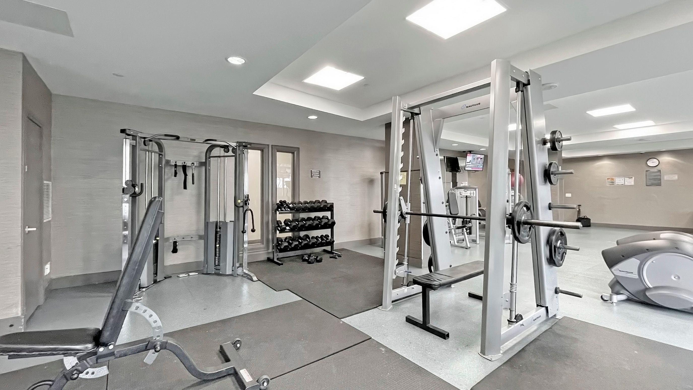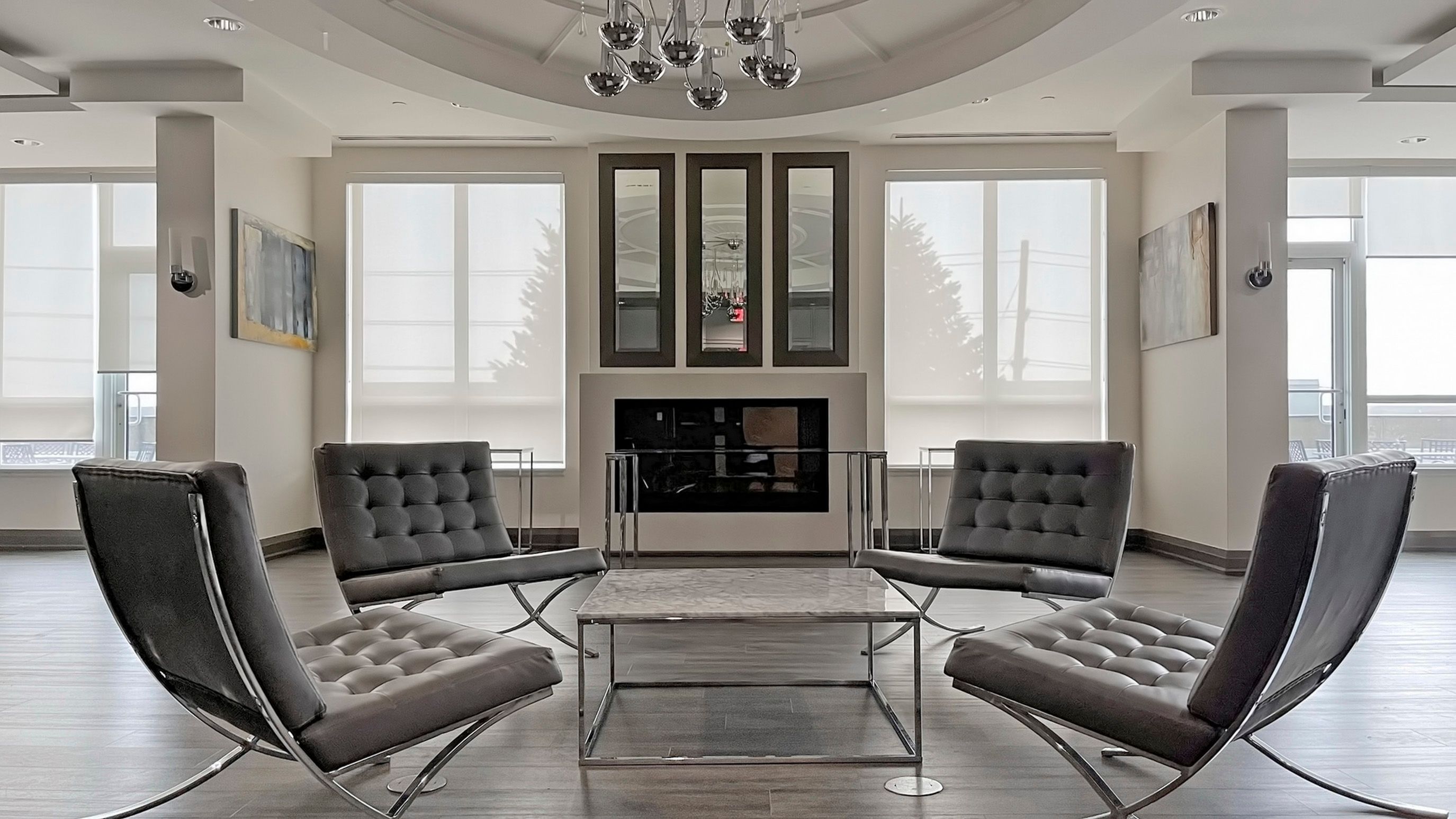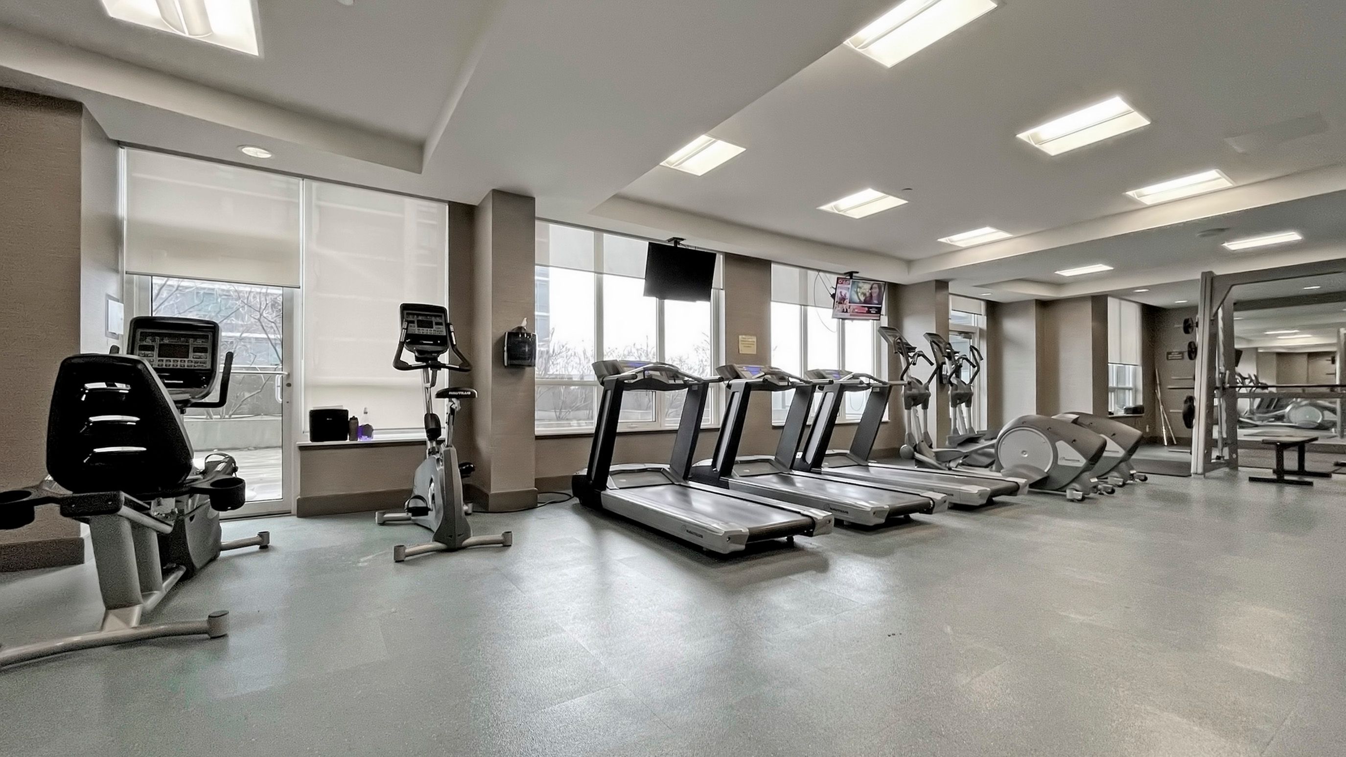 • On-site amenities include pool, gym, and 24-hour concierge.