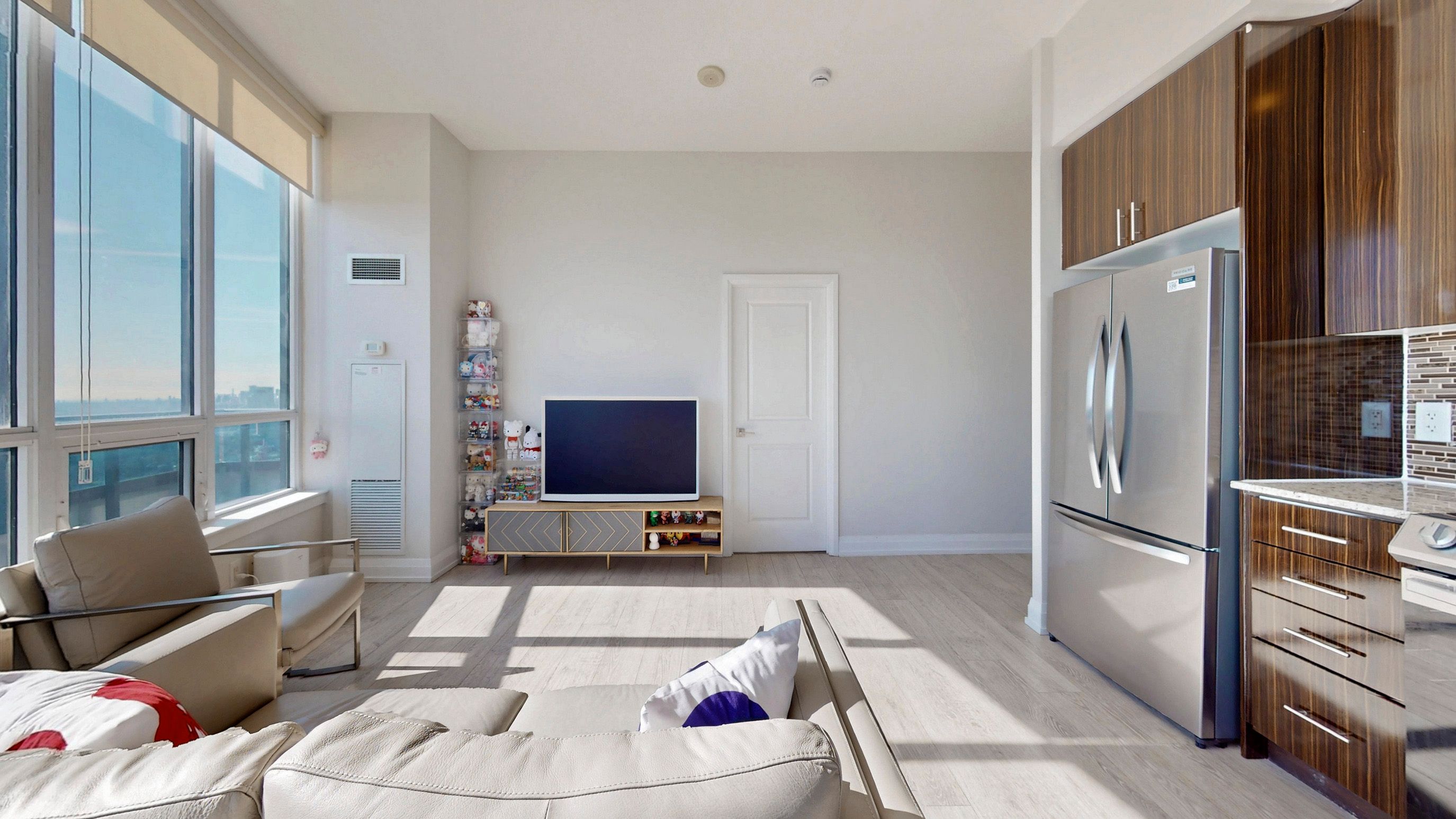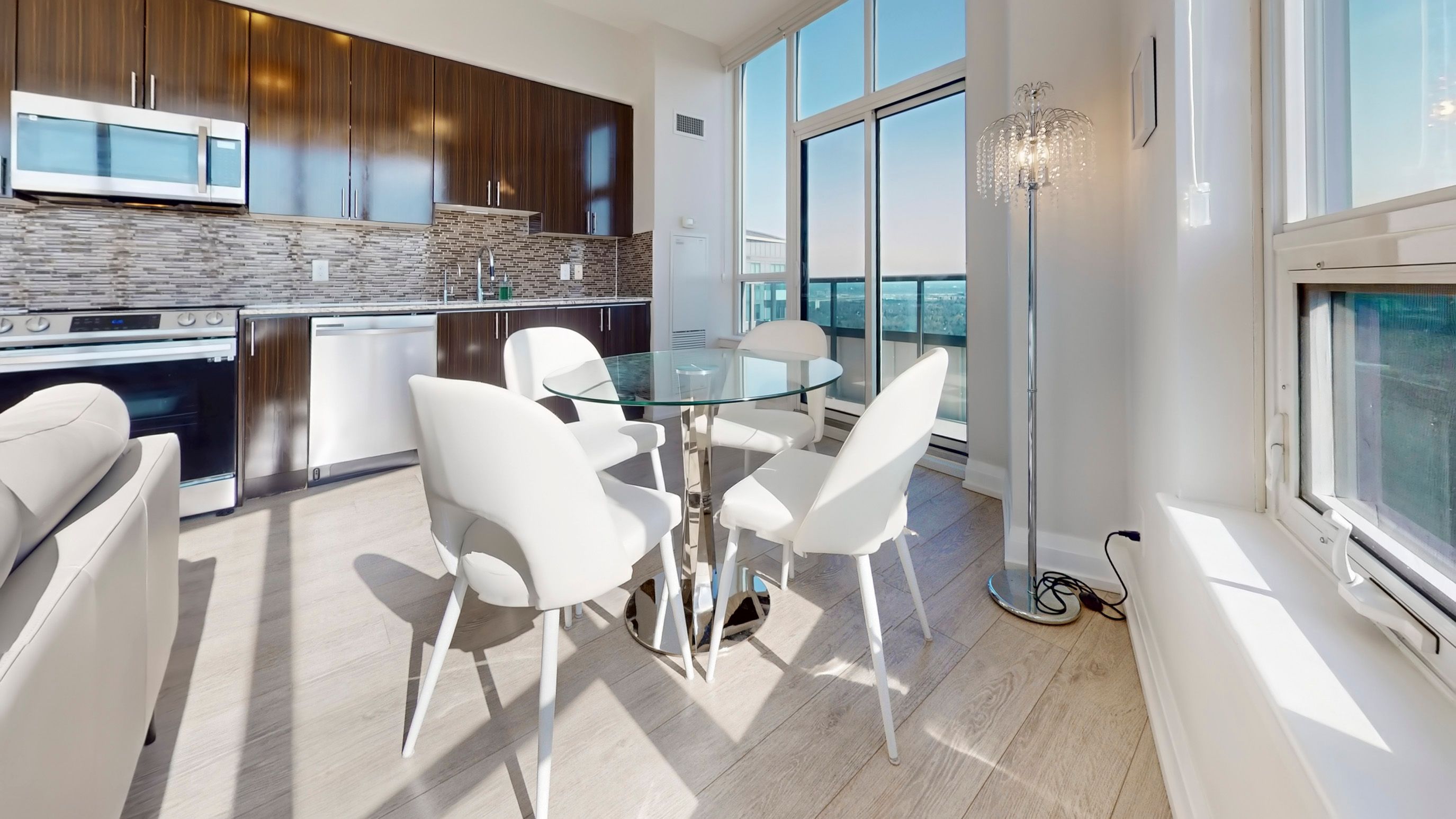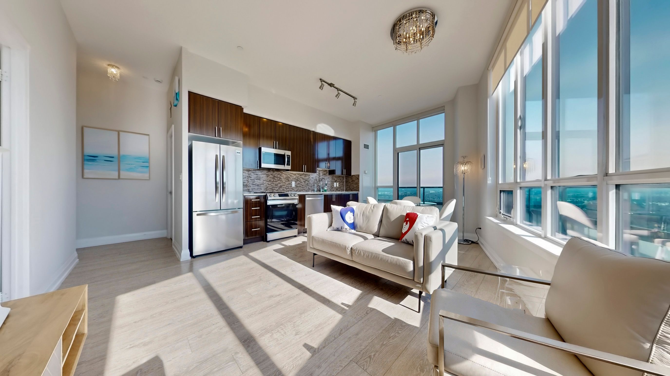 • Sun-drenched open-concept living with seamless laminate flooring.