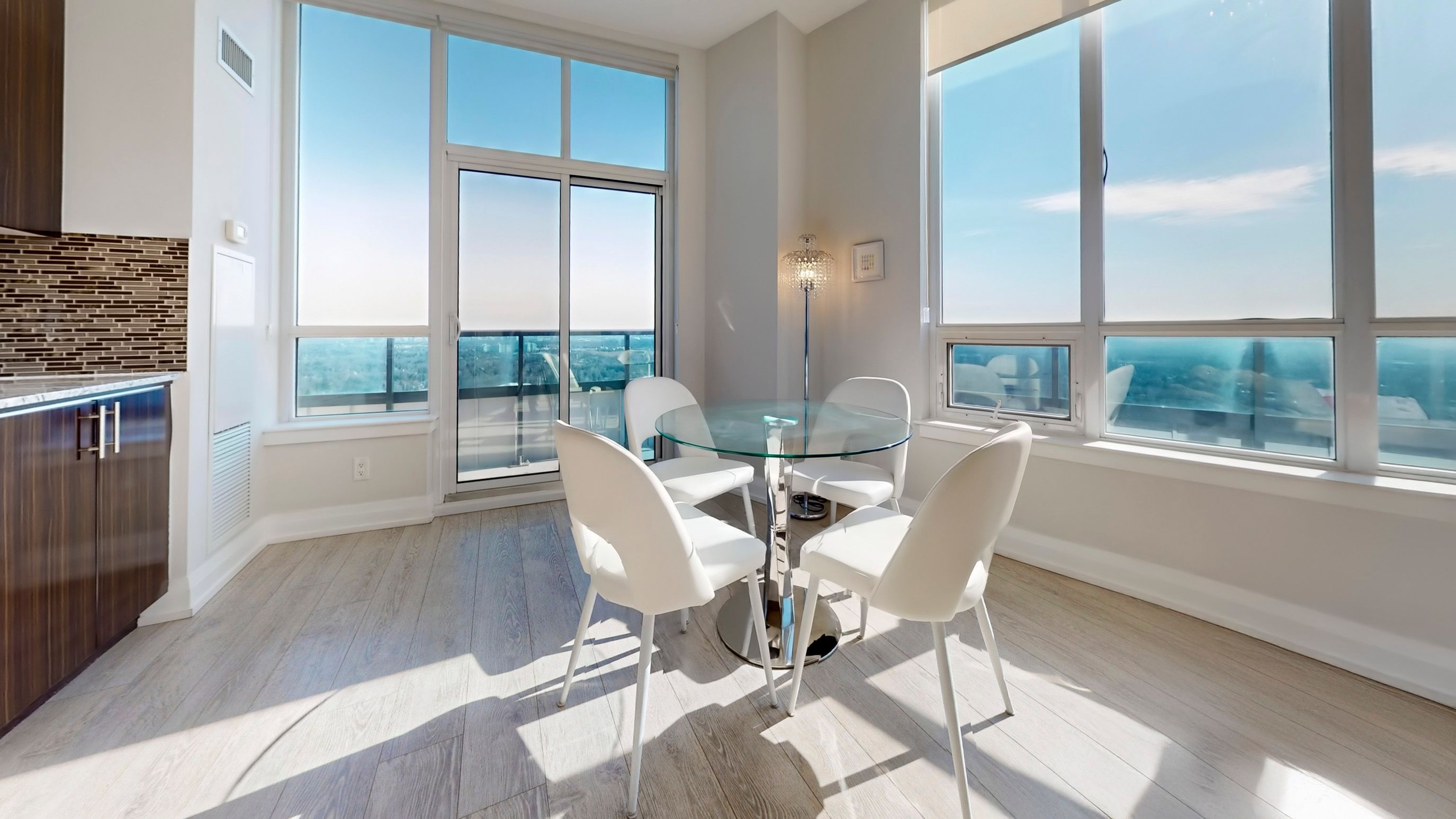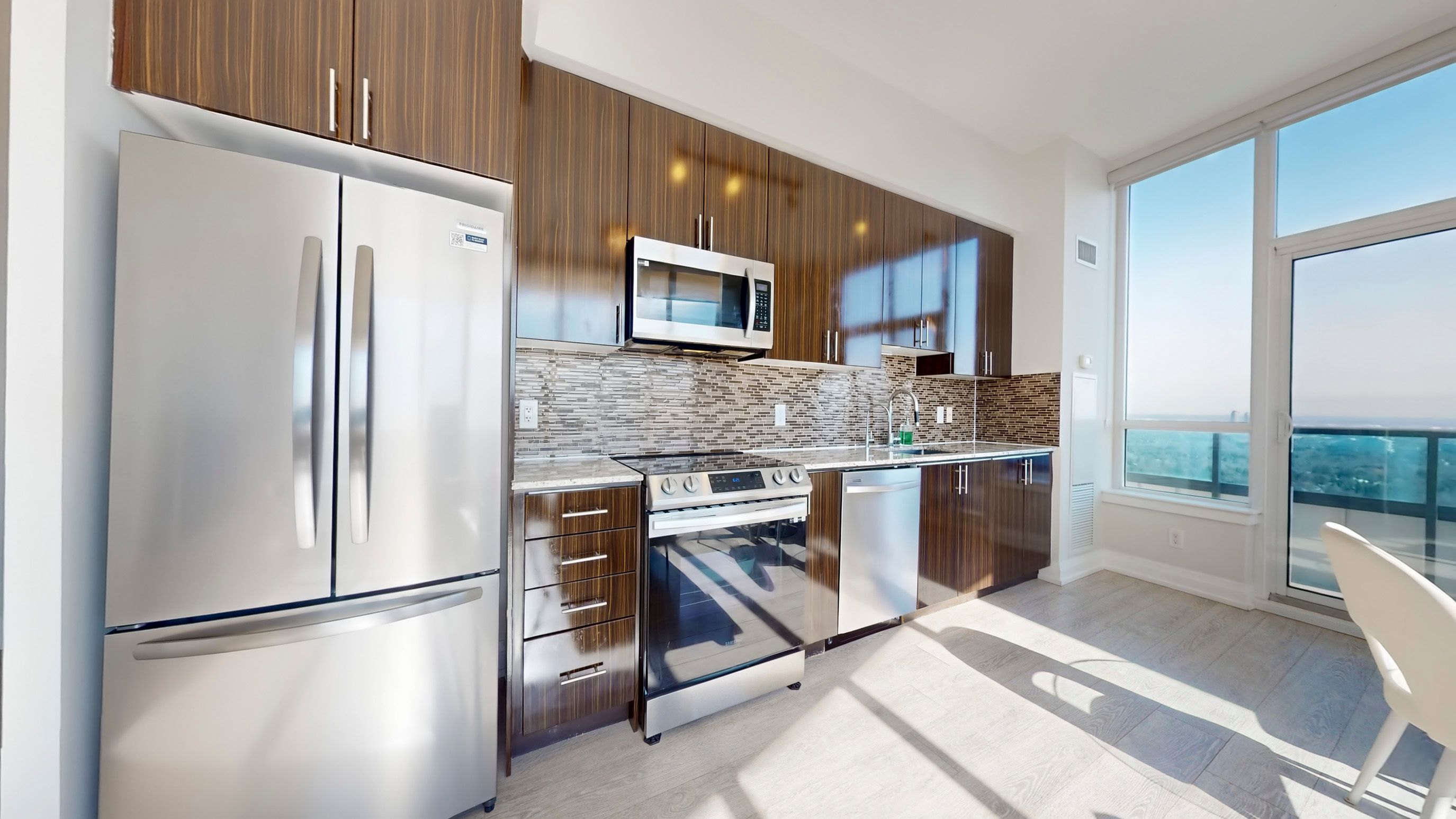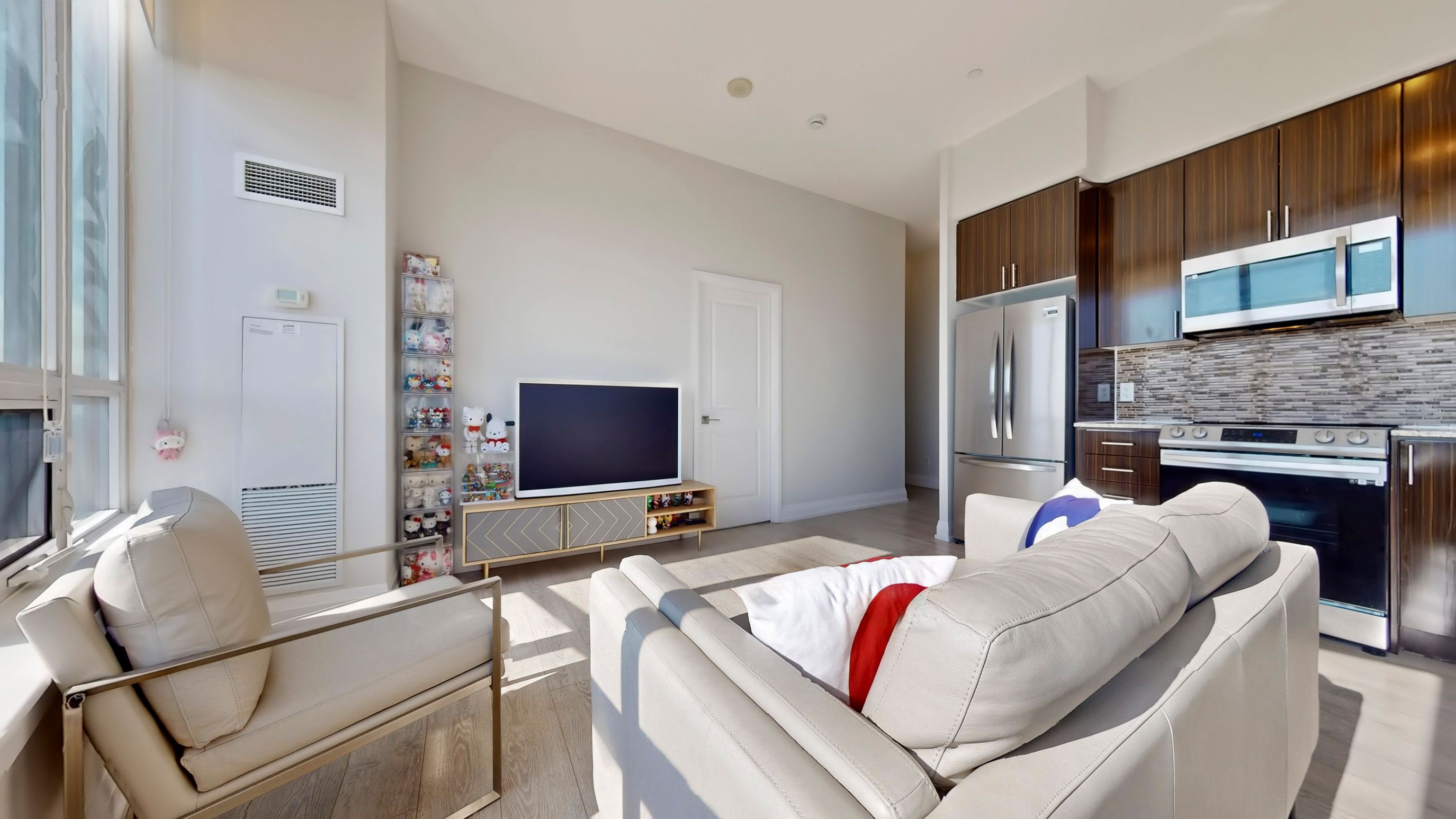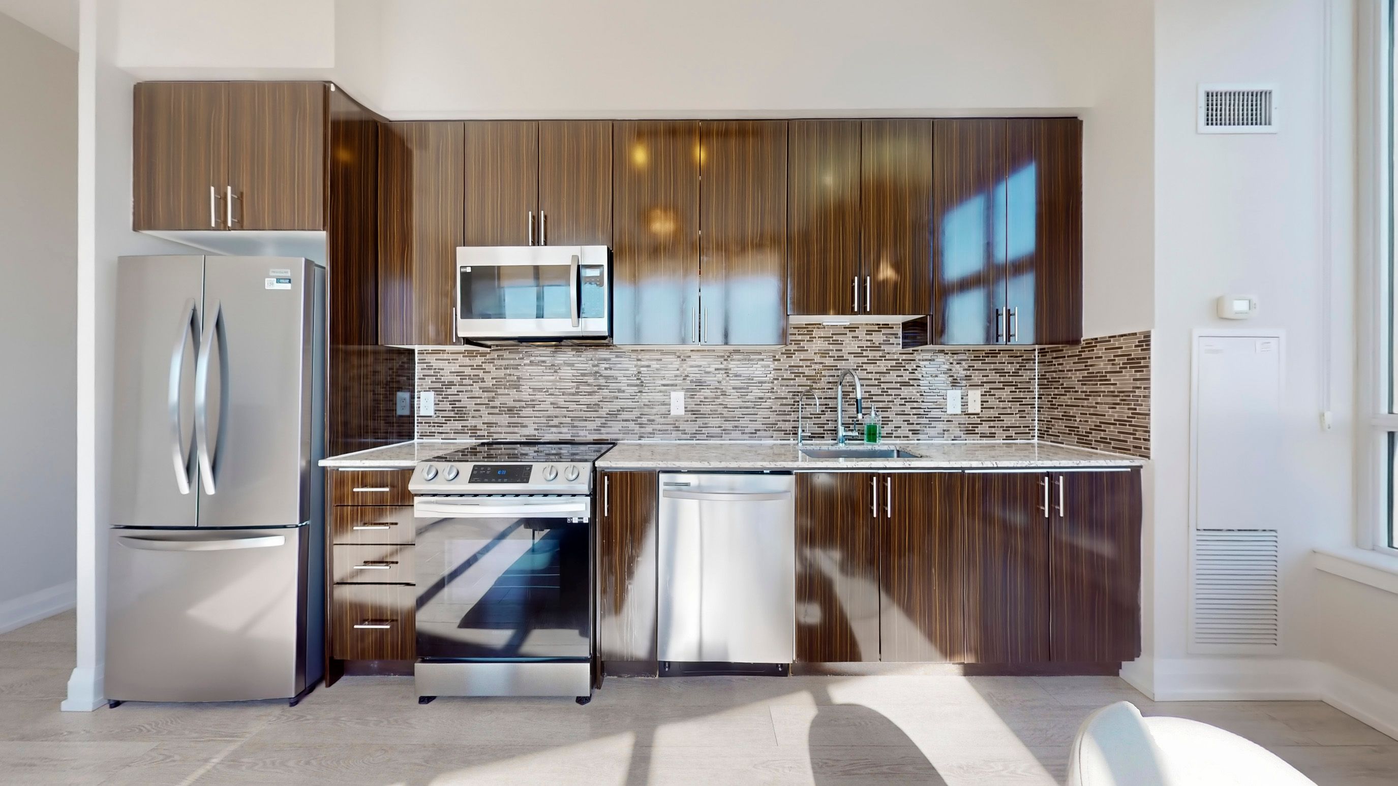 • Sun-drenched open-concept living with seamless laminate flooring.