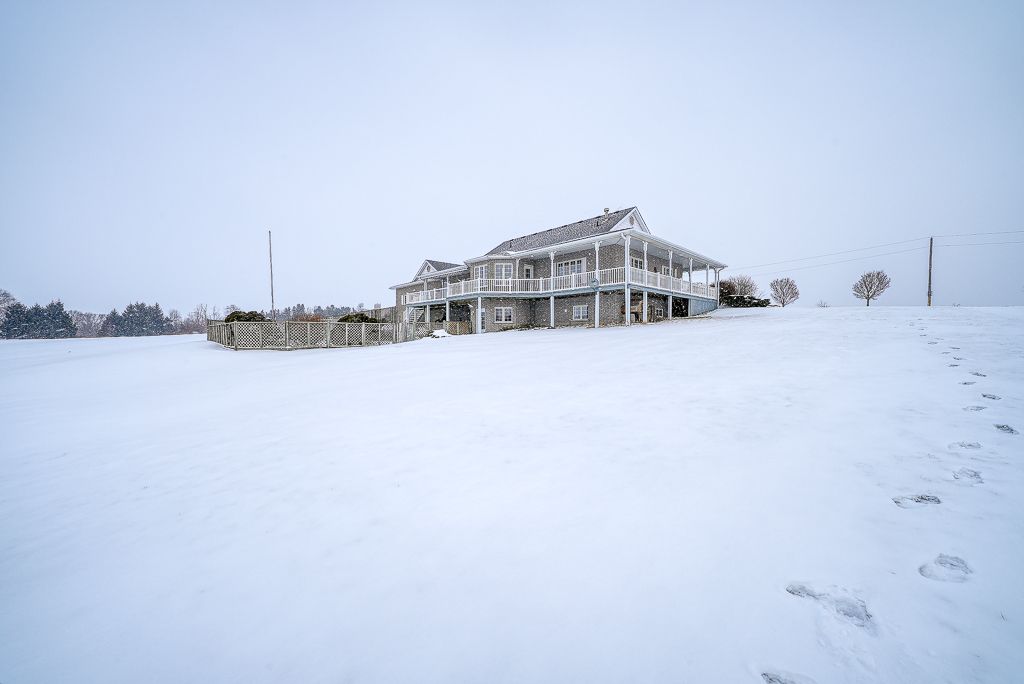 Sitting proudly on 15 acres, this one-owner brick ranch offers the ideal blend of country charm, privacy, and modern comfort. Approximately 10 workable acres surround the home, which is perfectly positioned on roughly 2 acres at the top of the property, capturing peaceful views over open farmland and river flats below. Step inside to a meticulously maintained home designed for easy main-floor living. Enter through the welcoming front foyer or directly from the double-car attached garage into the practical mudroom and laundry area. The bright, open-concept layout features hardwood flooring throughout most of the main level, a cozy gas fireplace anchoring the living room, and large windows that flood the space with natural light while framing the stunning countryside views. The kitchen is made for both cooking and conversation, complete with an island and breakfast nook that opens onto a wrap-around deck. It's the perfect spot for morning coffee, evening wine, or keeping an eye on poolside fun below. The primary bedroom offers a peaceful retreat with double closets and a unique 4-piece ensuite featuring a relaxing soaker tub. A second bedroom and 3-piece bath complete the main level. Downstairs, the full walk-out basement is built for family living and entertaining, boasting an impressive 25' x 35' rec room, two additional bedrooms with double closets (one currently used as a games room), a 3-piece bath, and generous storage. The home is also equipped with a central vacuum system, making day-to-day upkeep a breeze. Step outside to enjoy the 20' x 40' in-ground saltwater pool, sloping grounds ideal for winter tobogganing, and endless views of the surrounding farmland and river flats. With nearly 4,000 sq ft of finished living space and exceptional outdoor amenities, this property is perfectly suited for a hobby farm, family retreat, or private country escape. Properties like this are rare. Don't miss your opportunity to make it yours.