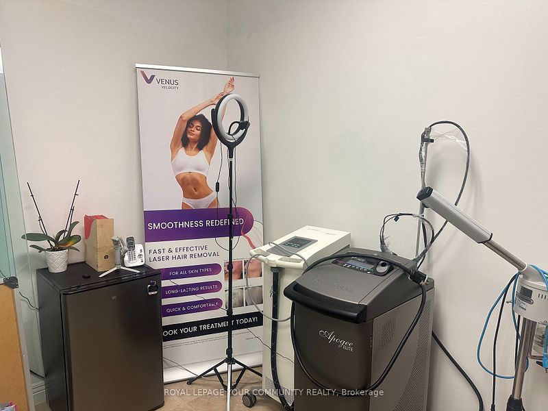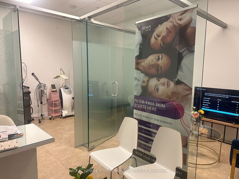 Location! Location! Commercial/retail/office space with 2 rooms & reception area with water inside unit and 2 vanities. Ideal for laser, body wax, hair salon, beauty salon, spa, nails, accounting, lawyer, engineering, etc... Lots of public parking spaces underground. Don't miss this opportunity for investors and end users.