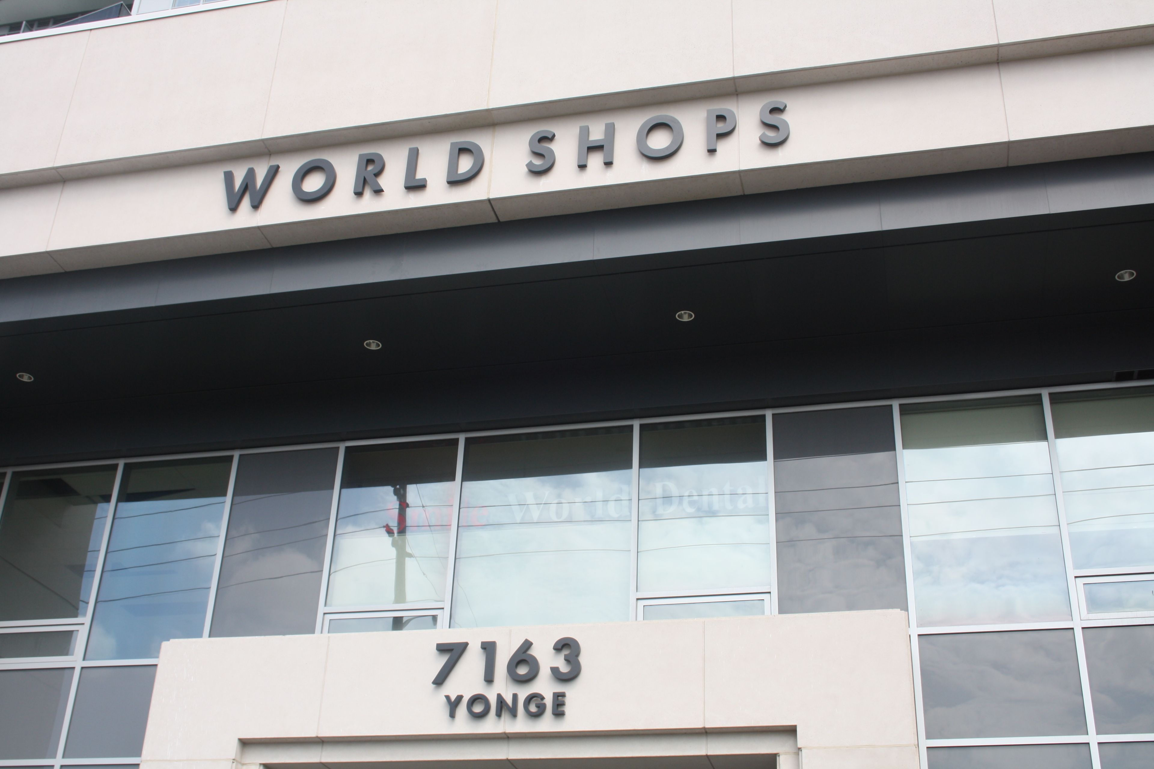 In world shops mall in world on yonge complex includes 4 residential towers, hotel, office building andlots of commercial units, royal bank, . This unit is a corner one with good exposure. Recently used as travel agency office.