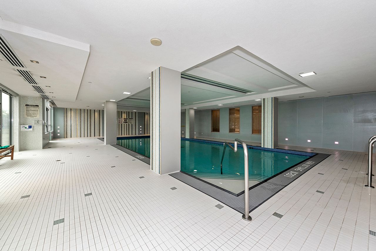 • Amenities include a gym, indoor pool, and rooftop garden.