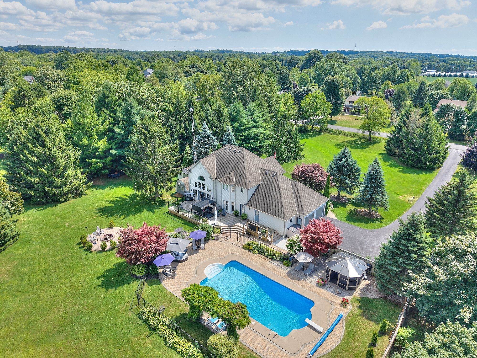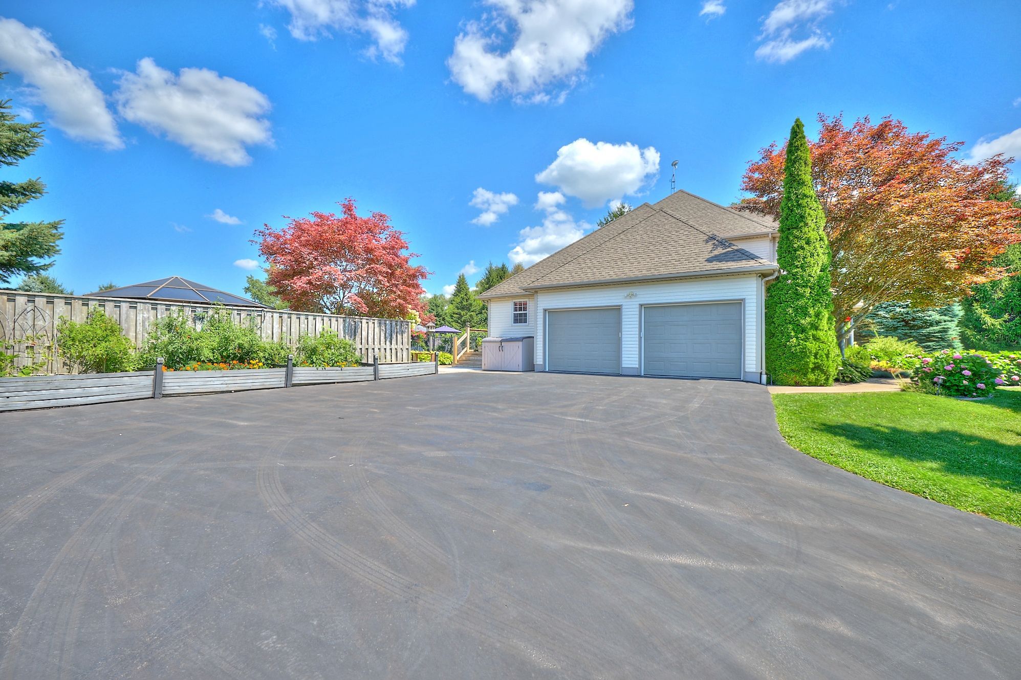 Approaching the enchanting driveway of 717 metler road, prepare to feel genuinely captivated. Framed by mature trees, colourful gardens and lush landscaping, this property makes an incredible first impression that will only build as the tour begins to unfold. Featuring panoramic views and unforgettable sunsets, this home is situated on nearly two-acres in one of the most spectacular areas of the region. Offering more privacy than you could ever desire, with a stunning inground saltwater pool, a deck that spans the rear of the home, along with ample green space surrounded by farmer's fields - this property is immaculate and the complete package. Beyond the coveted front porch, the interior of this carefully crafted home is a true pleasure to explore. To one side of the foyer, the formal dining room offers the perfect setting for larger family meals while, to the right, is the main floor family room or home office. At the back of the home, the showstopper awaits - a truly breathtaking living room with soaring ceilings, ample windows that fill the home with natural light as well as provide beautiful views of the property and a floor-to-ceiling stone fireplace that anchors the room with warmth and character. Flowing from this space, the custom kitchen is equally as impressive. Lined with cabinetry, a full walk-in pantry, high-end appliances and an expansive island, even the most discerning buyer will be inspired here. A dedicated laundry room and full bath complete the main level. Upstairs, you'll find three bedrooms, along with a 5-piece bath. The primary suite offers a large walk-in-closet and 3-piece ensuite. With areas that are open-to-below, this level is certainly intriguing. Equipped with a recreation room, wet bar, sauna, fourth full washroom, along with two additional bedrooms that are currently being used as an office/home gym and a walk-up to the garage, the finished basement is delightful. You're invited to have it all - seize this opportunity!